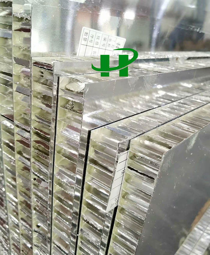 3、优越的平整度和刚性:铝蜂窝板由许多相互牵制的密集蜂窝构成,犹如许多小工字梁,可分散承受来自面板方向的压力,使板受力均匀,保证了其承受压力的强度和面板在较大面积时保持很高的平整度。