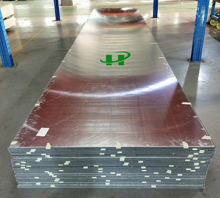 3、优越的平整度和刚性:铝蜂窝板由许多相互牵制的密集蜂窝构成,犹如许多小工字梁,可分散承受来自面板方向的压力,使板受力均匀,保证了其承受压力的强度和面板在较大面积时保持很高的平整度。
