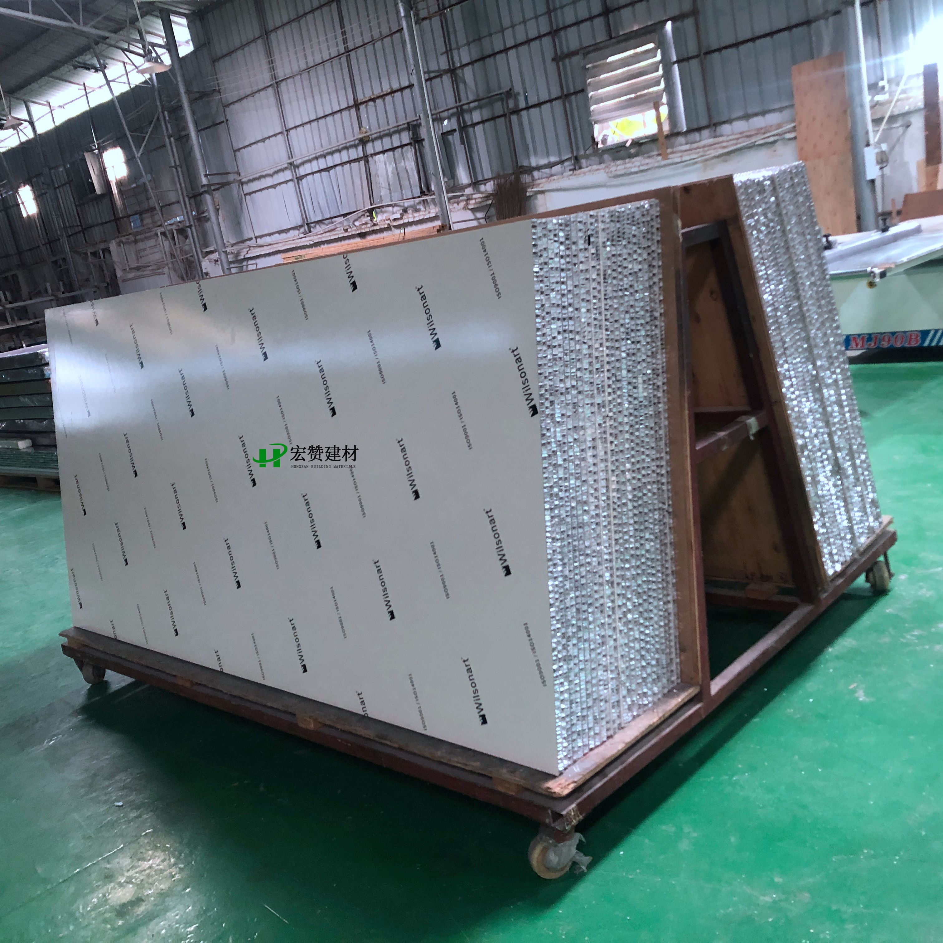 铝蜂窝板表面采用经氟碳辊涂处理的铝合金板材,中间是符合美国航空标准的铝蜂窝,本公司从法国引进生产三明冶夹心板的专用复合工艺冷压和热压技术,专业生产此类产品,使得该产品更具显著的优异特性,广泛应用于建筑幕墙及室内外装饰,更由于本公司有专业且全面的生产工艺的保障,因此,完全可以根据客户的要求和实际情况采用不同的复合工艺生产产品。