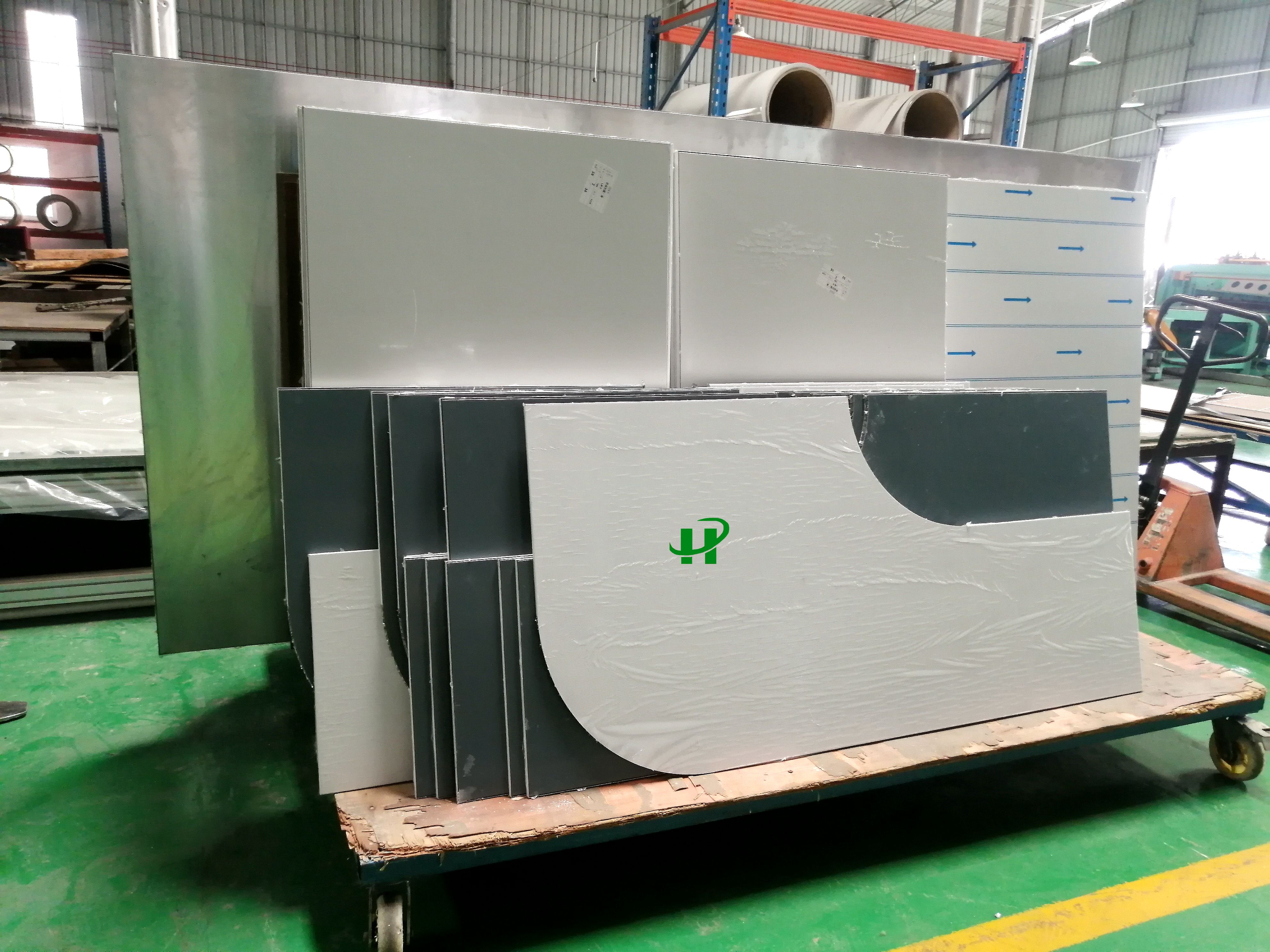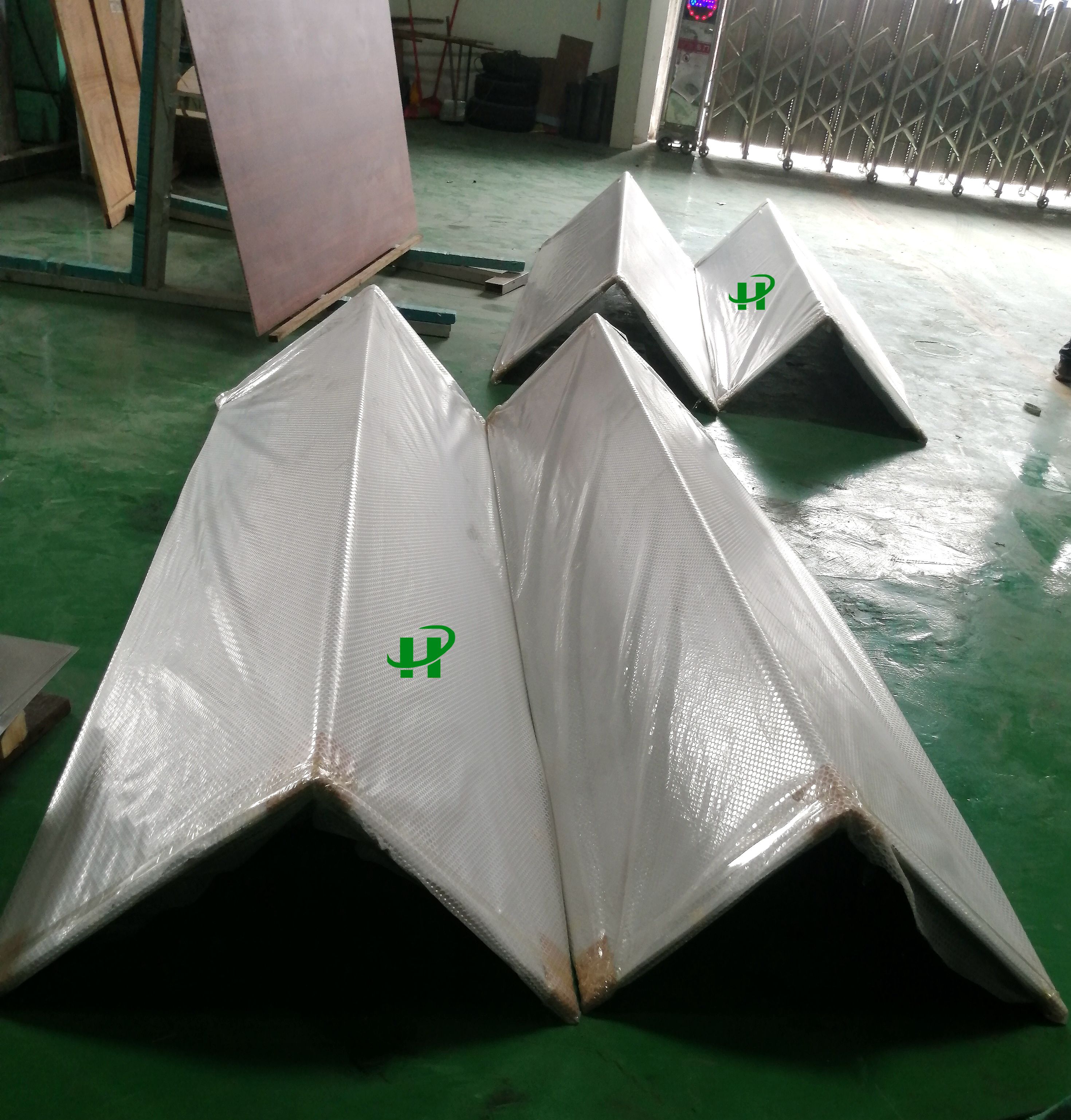铝蜂窝板表面采用经氟碳辊涂处理的铝合金板材,中间是符合美国航空标准的铝蜂窝,本公司从法国引进生产三明冶夹心板的专用复合工艺冷压和热压技术,专业生产此类产品,使得该产品更具显著的优异特性,广泛应用于建筑幕墙及室内外装饰,更由于本公司有专业且全面的生产工艺的保障,因此,完全可以根据客户的要求和实际情况采用不同的复合工艺生产产品。