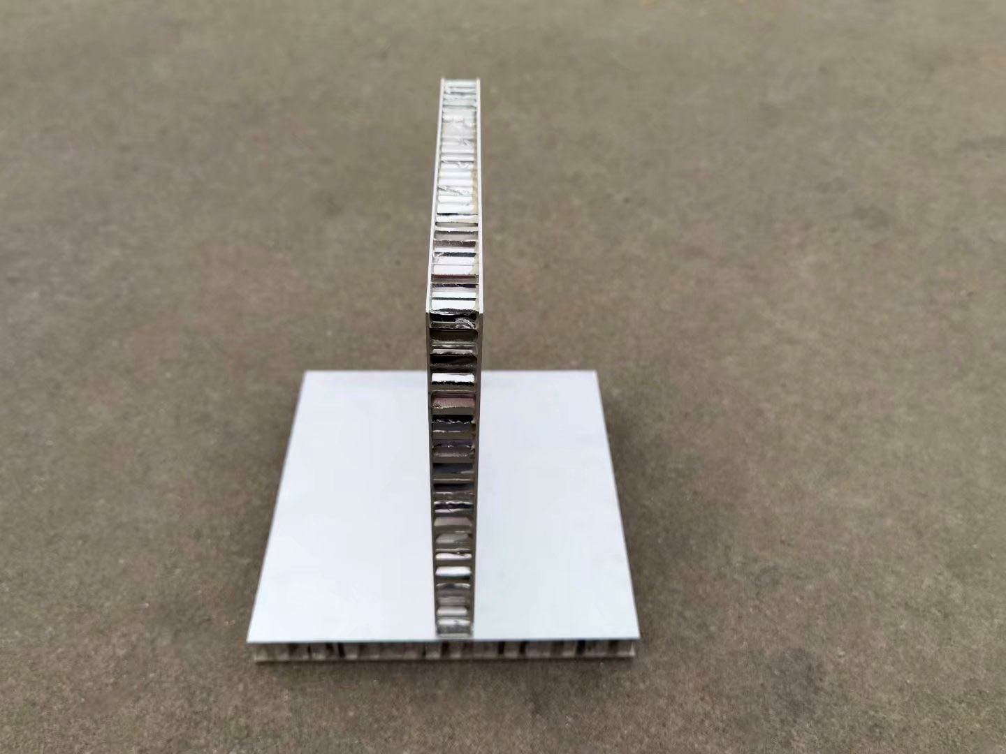 3、优越的平整度和刚性:铝蜂窝板由许多相互牵制的密集蜂窝构成,犹如许多小工字梁,可分散承受来自面板方向的压力,使板受力均匀,保证了其承受压力的强度和面板在较大面积时保持很高的平整度。