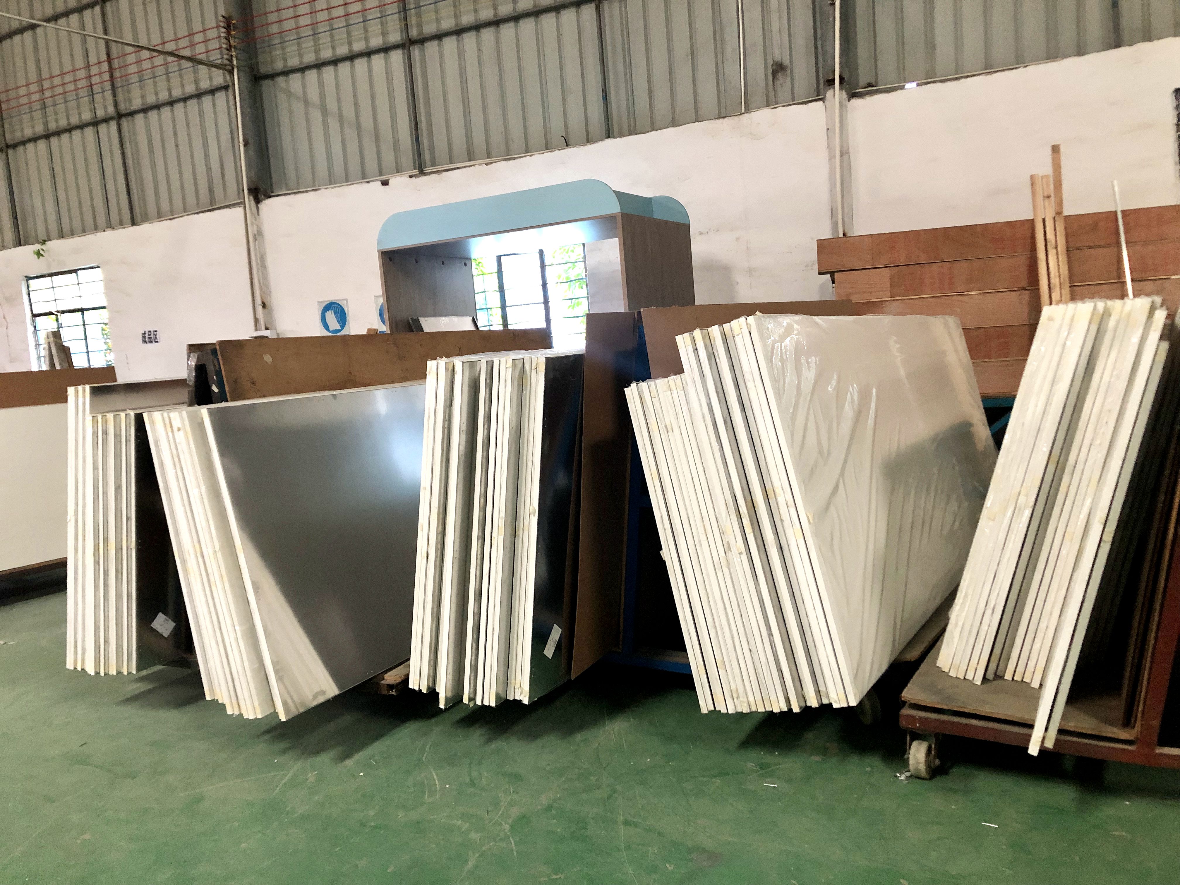 幕墙装饰、室内装饰、门柜、办公台、卫生间隔断、屋面材料、吊顶、电梯装饰、地铁、高速列车、豪华车船内饰等。