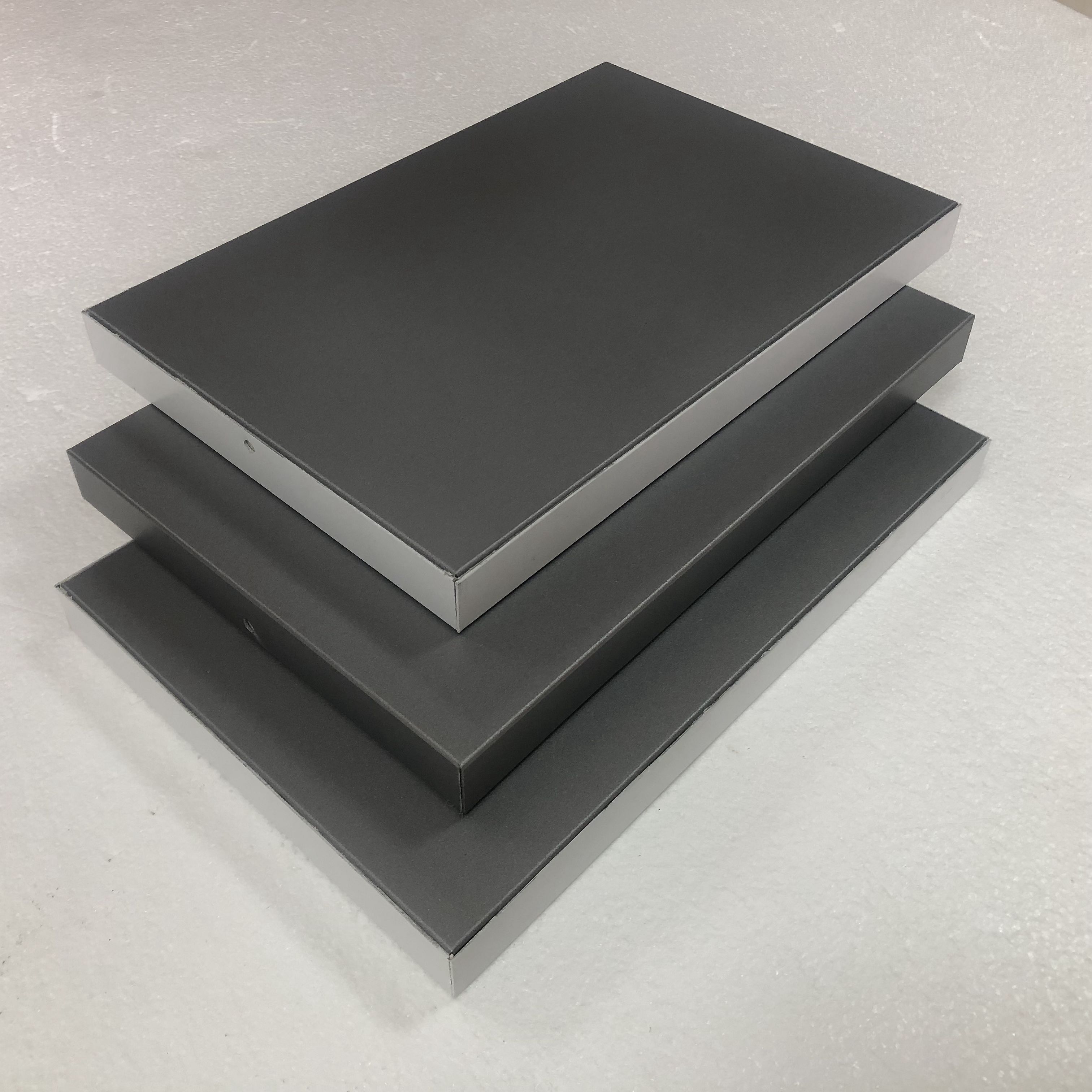 铝蜂窝板表面采用经氟碳辊涂处理的铝合金板材,中间是符合美国航空标准的铝蜂窝,本公司从法国引进生产三明冶夹心板的专用复合工艺冷压和热压技术,专业生产此类产品,使得该产品更具显著的优异特性,广泛应用于建筑幕墙及室内外装饰,更由于本公司有专业且全面的生产工艺的保障,因此,完全可以根据客户的要求和实际情况采用不同的复合工艺生产产品。