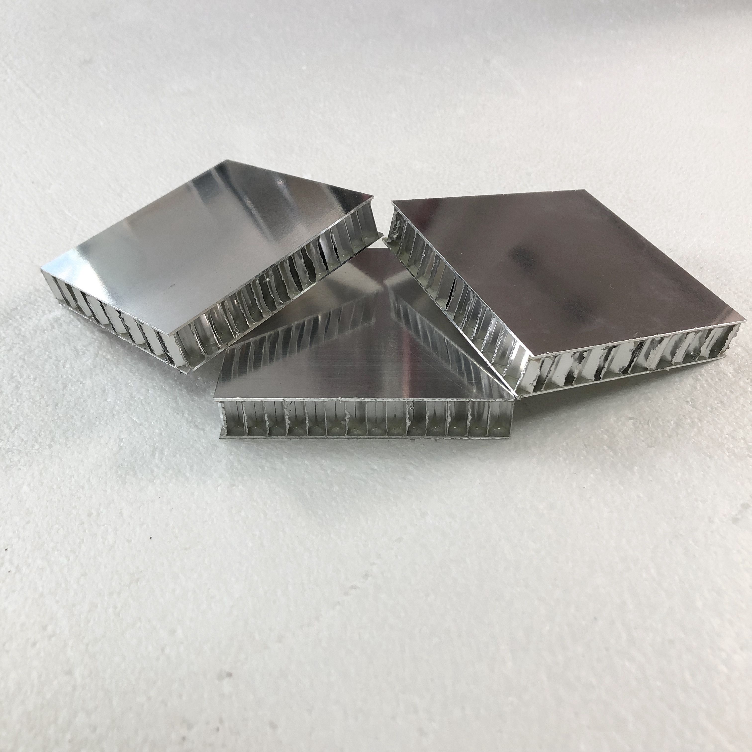 3、优越的平整度和刚性:铝蜂窝板由许多相互牵制的密集蜂窝构成,犹如许多小工字梁,可分散承受来自面板方向的压力,使板受力均匀,保证了其承受压力的强度和面板在较大面积时保持很高的平整度。
