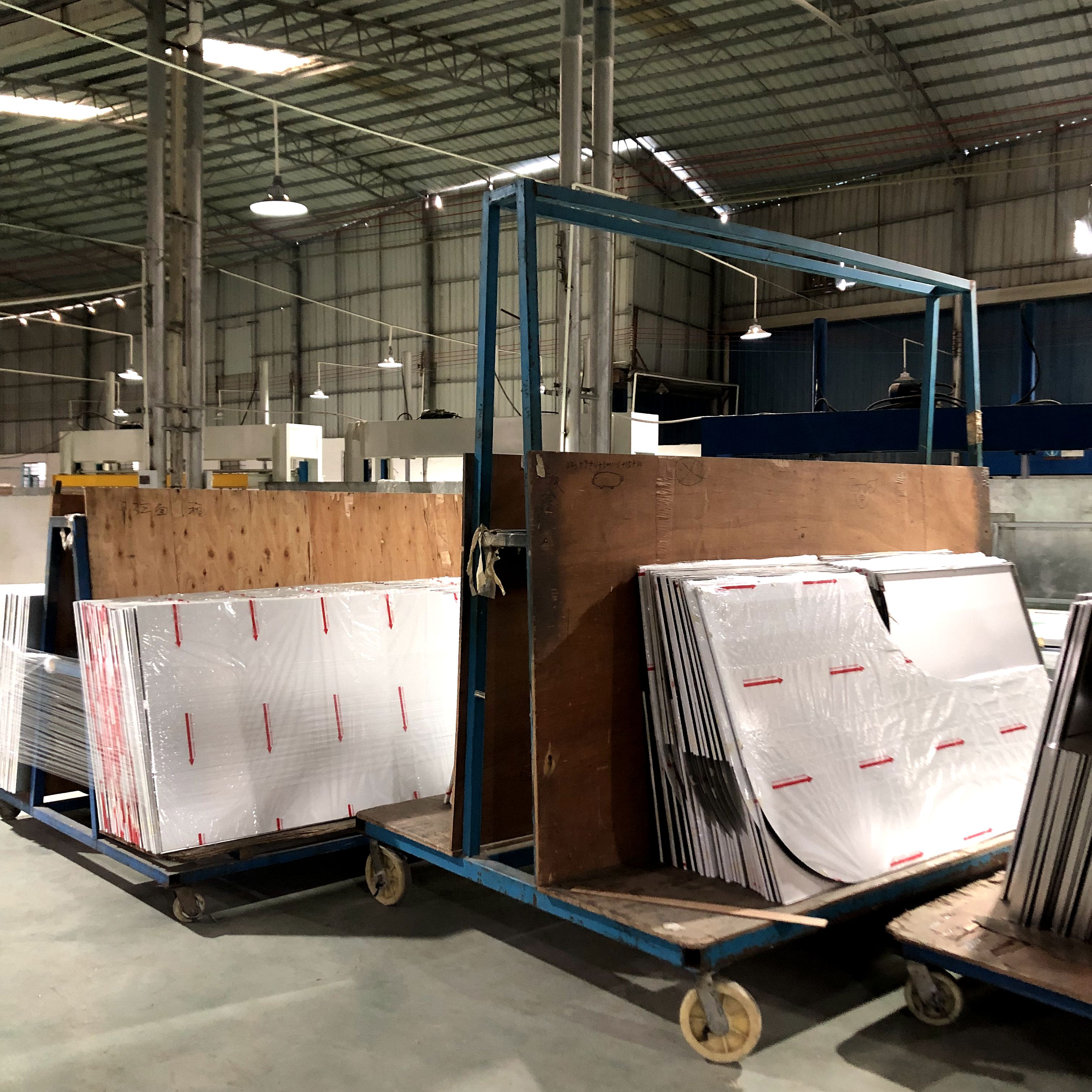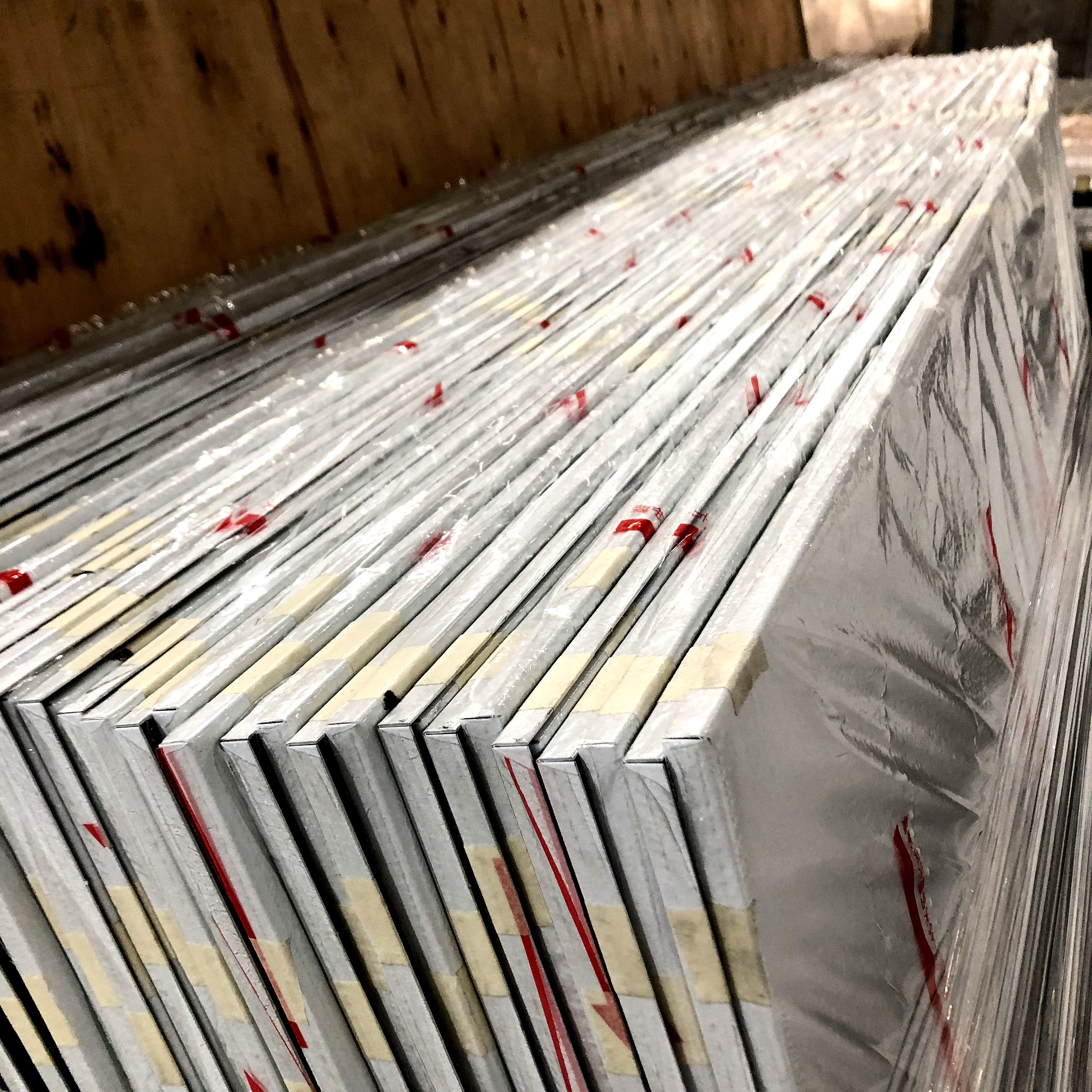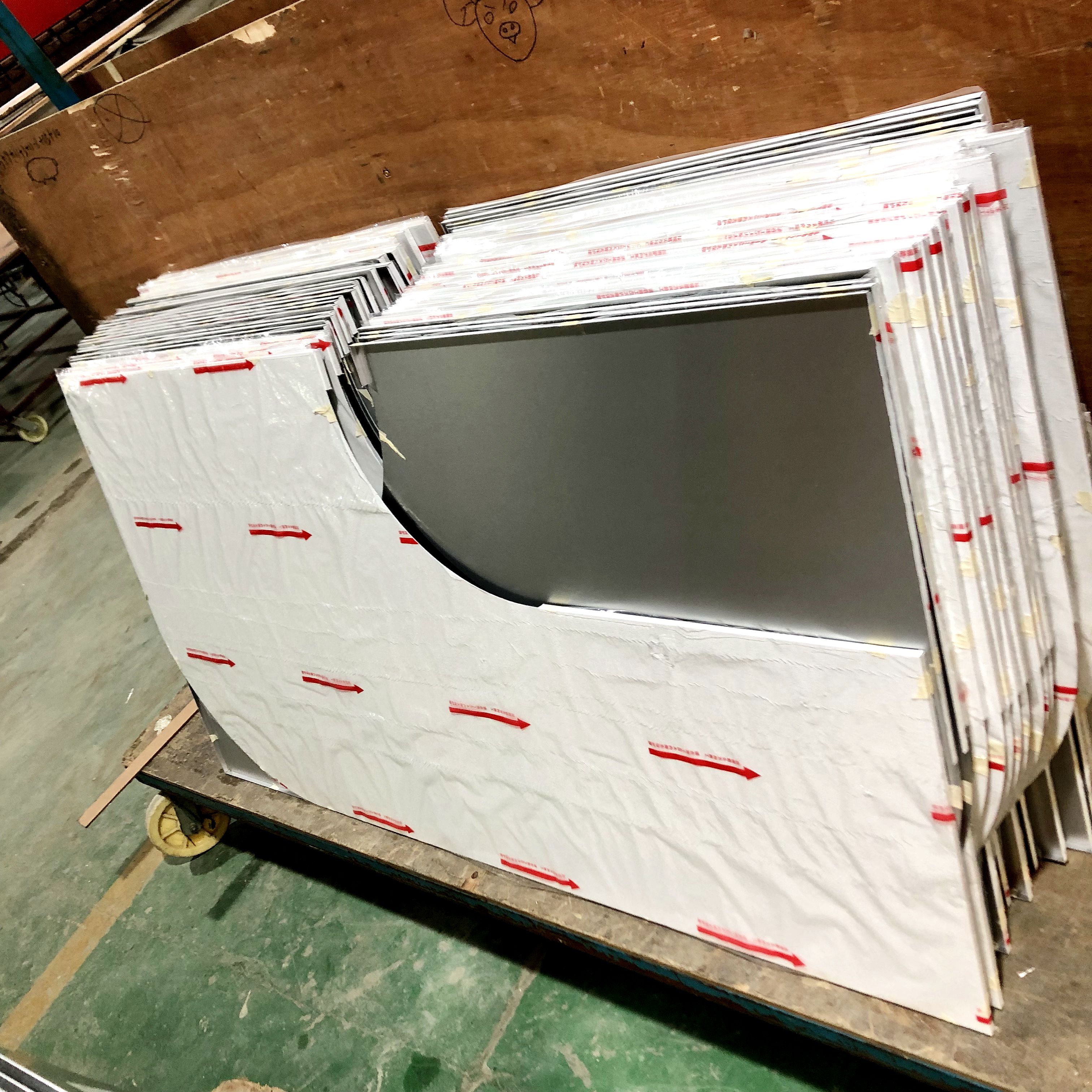 3、优越的平整度和刚性:铝蜂窝板由许多相互牵制的密集蜂窝构成,犹如许多小工字梁,可分散承受来自面板方向的压力,使板受力均匀,保证了其承受压力的强度和面板在较大面积时保持很高的平整度。