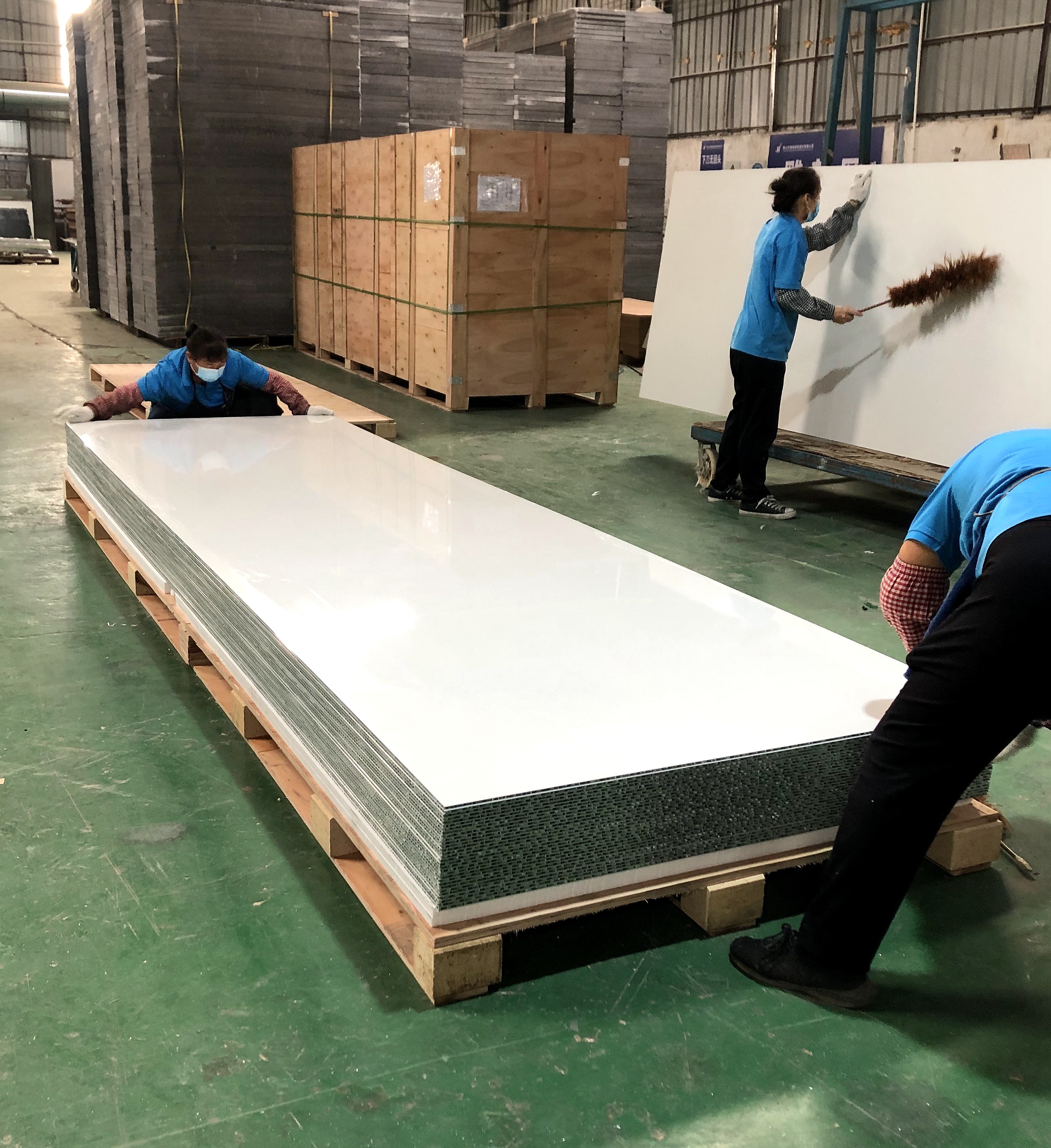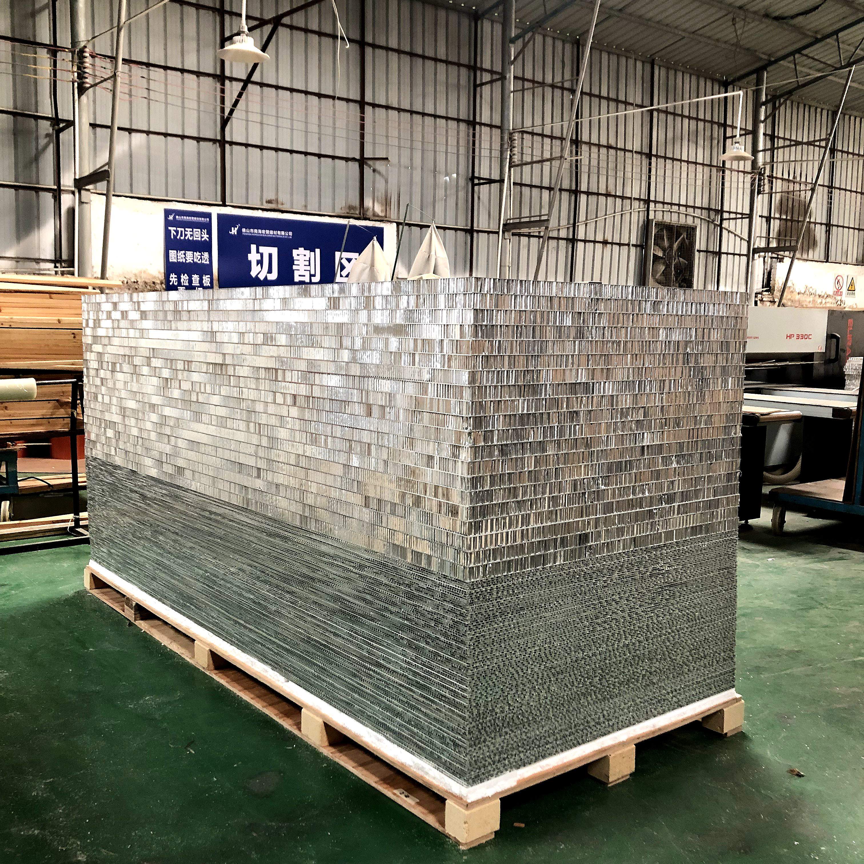 3、优越的平整度和刚性:铝蜂窝板由许多相互牵制的密集蜂窝构成,犹如许多小工字梁,可分散承受来自面板方向的压力,使板受力均匀,保证了其承受压力的强度和面板在较大面积时保持很高的平整度。