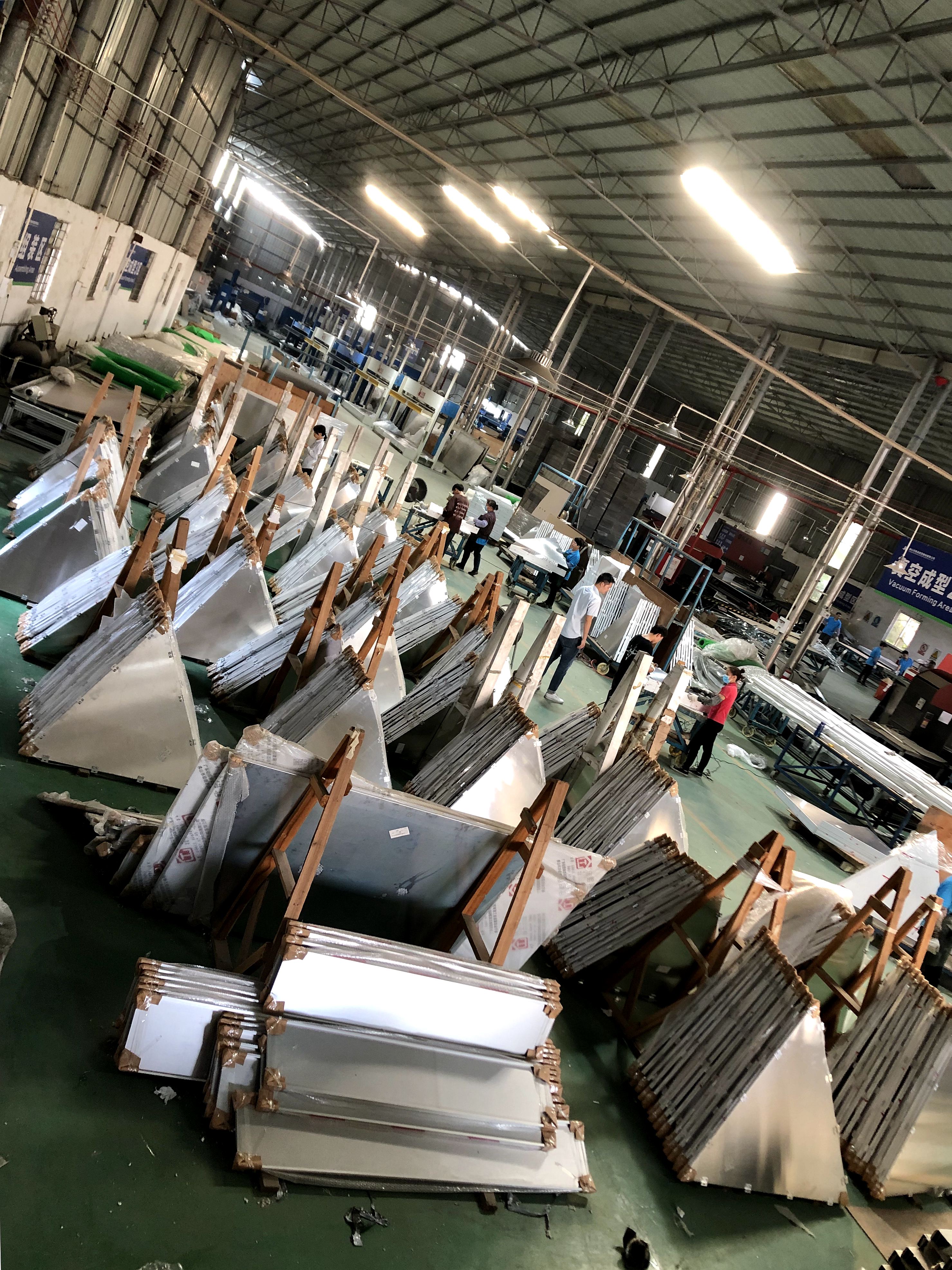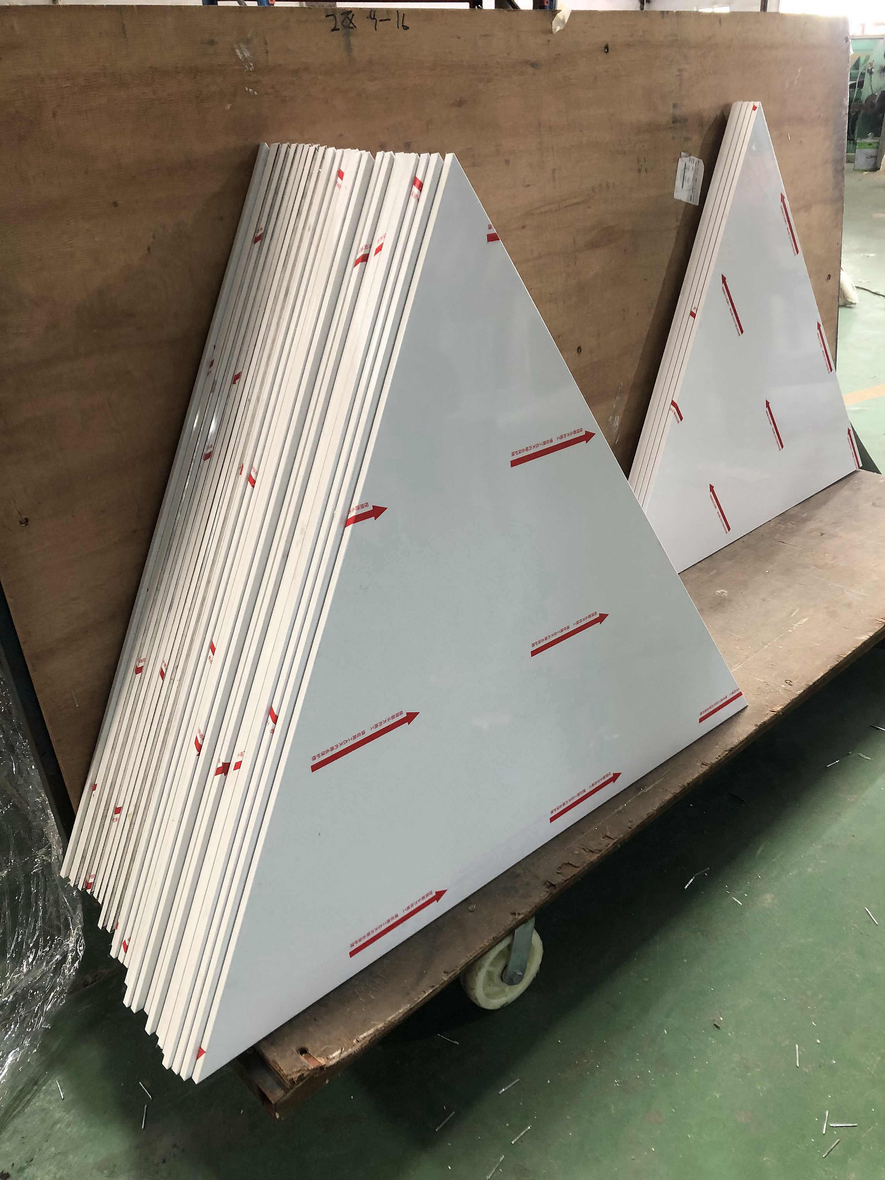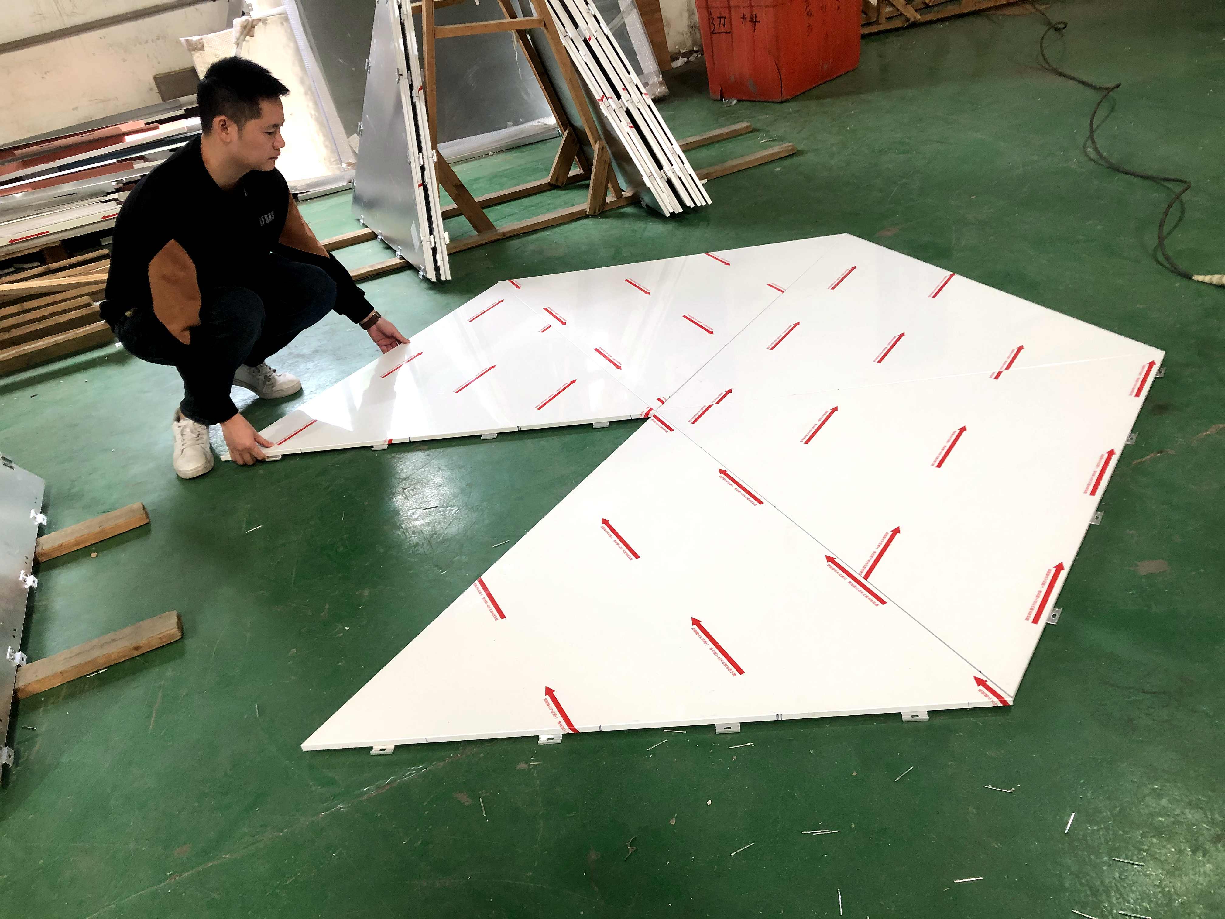 3、优越的平整度和刚性:铝蜂窝板由许多相互牵制的密集蜂窝构成,犹如许多小工字梁,可分散承受来自面板方向的压力,使板受力均匀,保证了其承受压力的强度和面板在较大面积时保持很高的平整度。