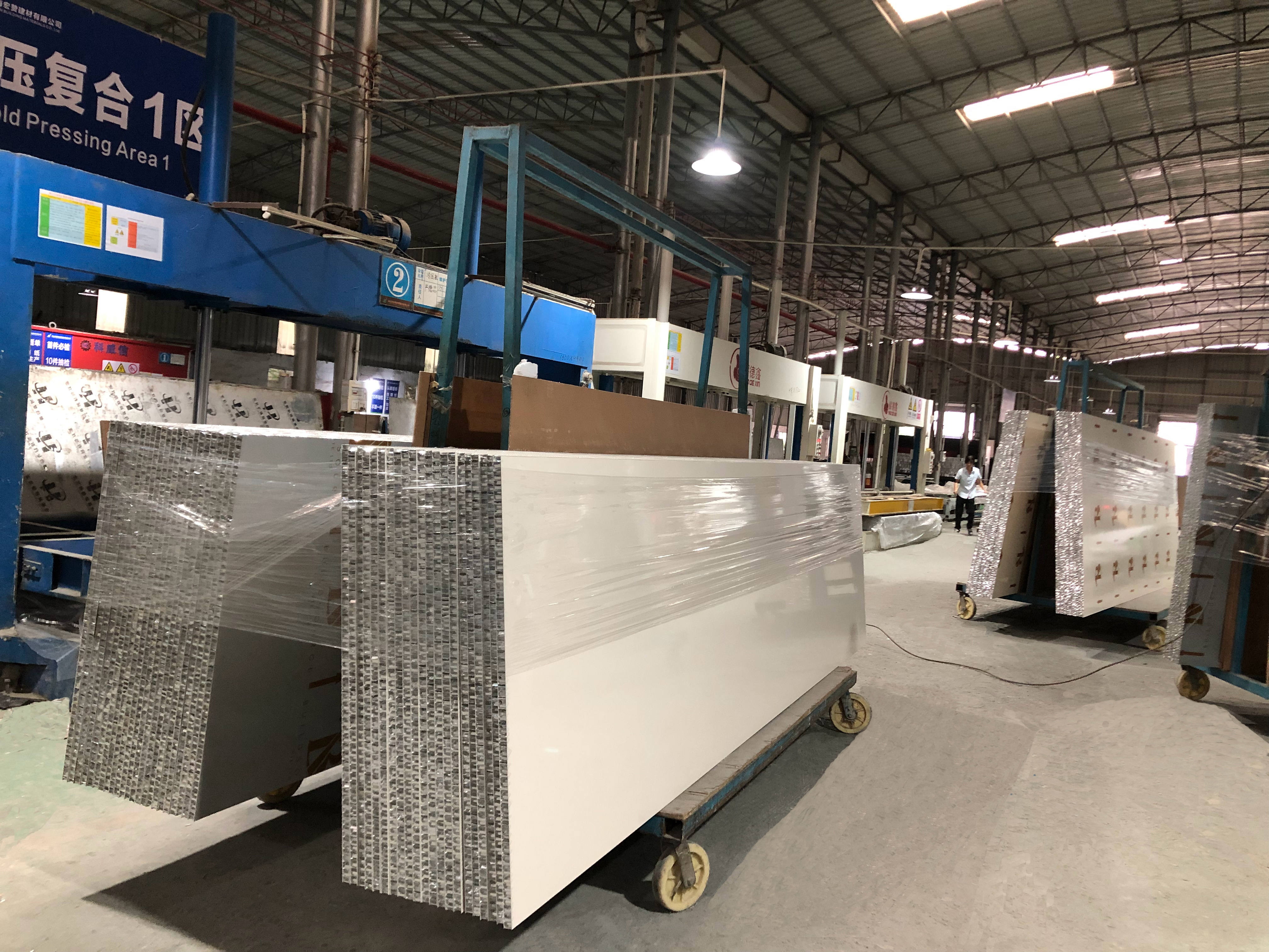 铝蜂窝板表面采用经氟碳辊涂处理的铝合金板材,中间是符合美国航空标准的铝蜂窝,本公司从法国引进生产三明冶夹心板的专用复合工艺冷压和热压技术,专业生产此类产品,使得该产品更具显著的优异特性,广泛应用于建筑幕墙及室内外装饰,更由于本公司有专业且全面的生产工艺的保障,因此,完全可以根据客户的要求和实际情况采用不同的复合工艺生产产品。