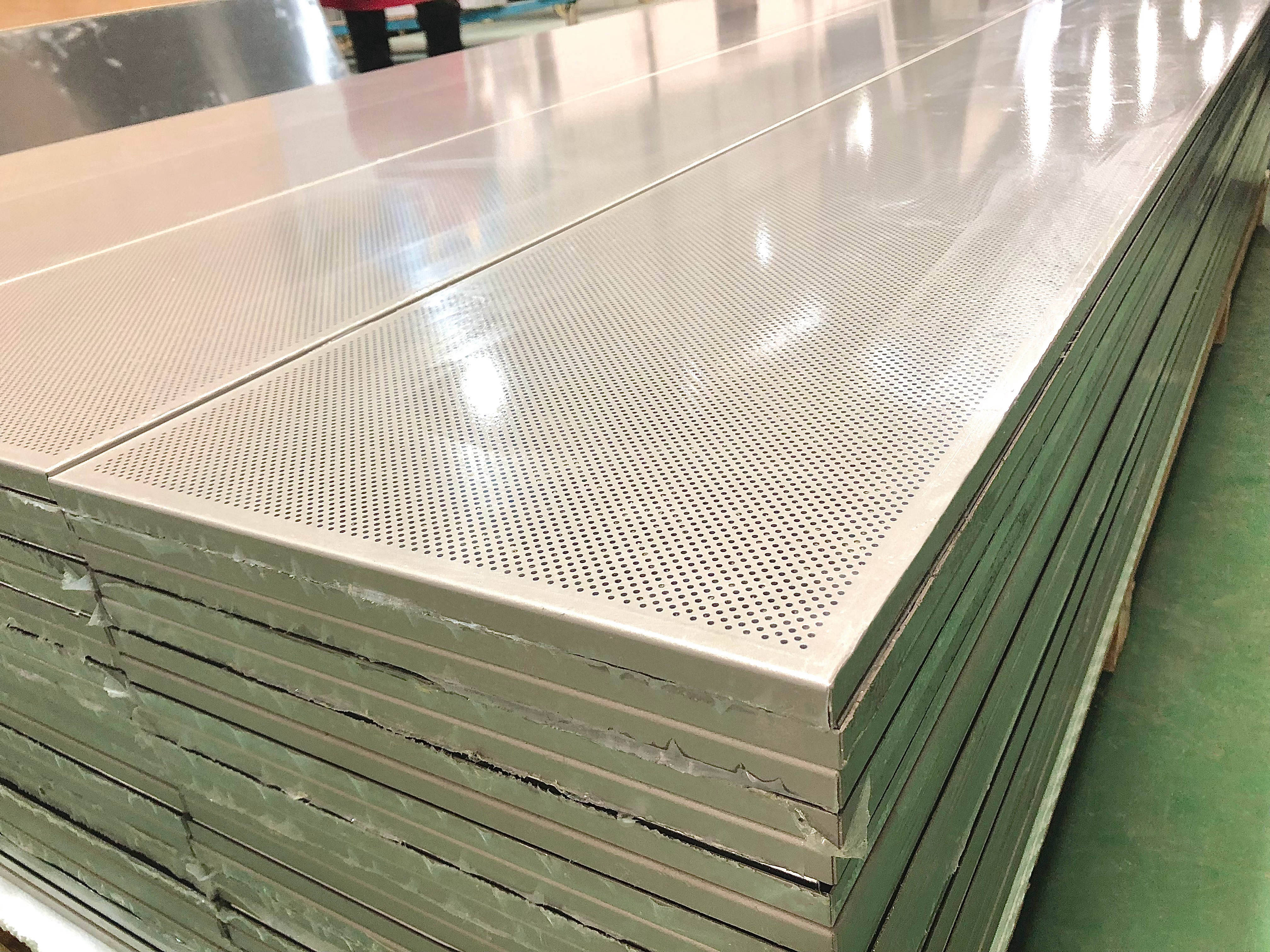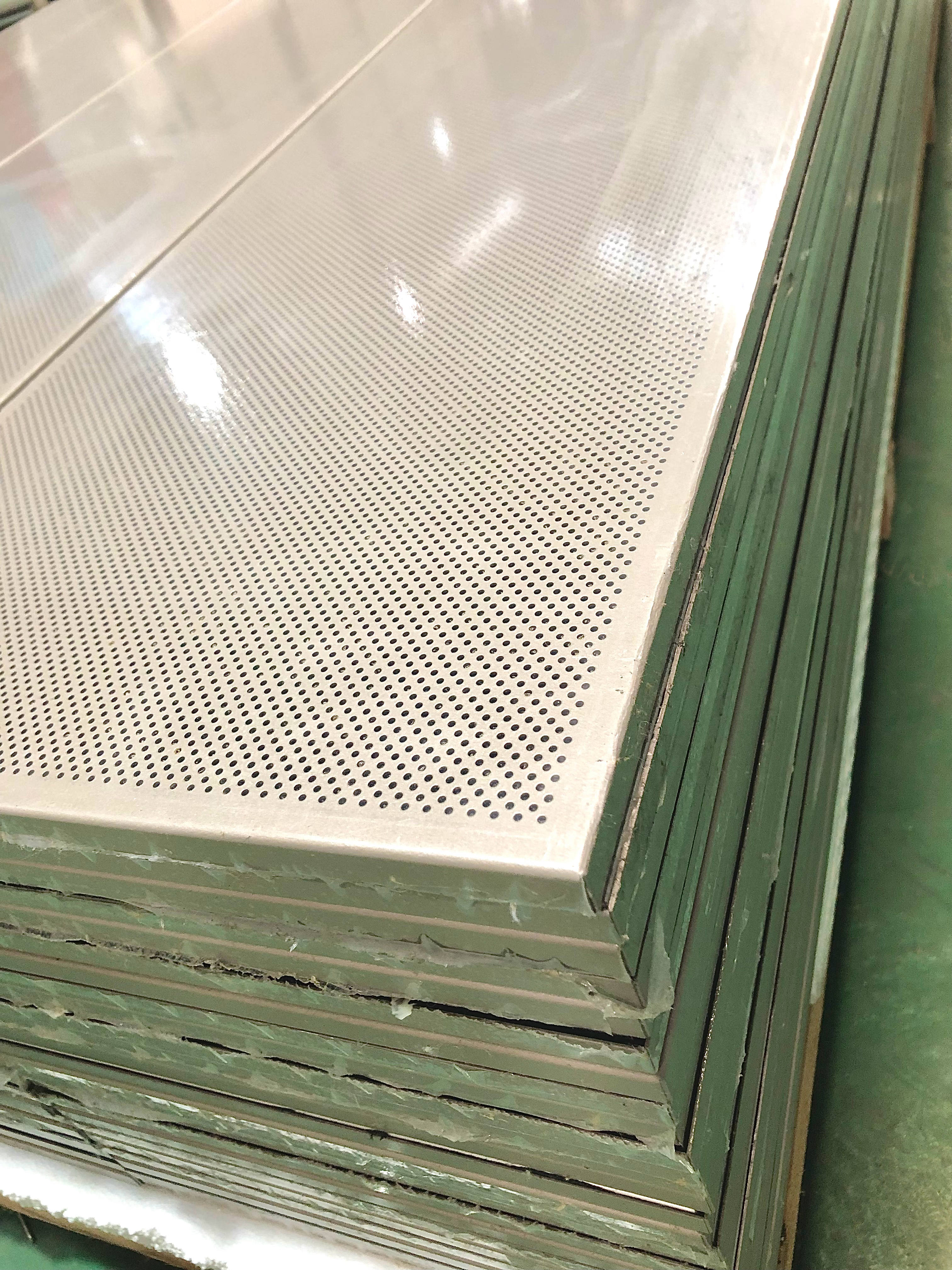 冲孔铝蜂窝板是在铝蜂窝板的表面按照一定规律冲出的小孔,不仅美观大方,而且内部暗藏吸音纸吸音效果非常好,适用于会议室、礼堂等多种场合。 蜂窝铝皮上有小孔,使板内气体可以自由流动;可滑动安装扣系统在热胀冷缩时不会引起结构变形,因此可以保证极高的平整度.