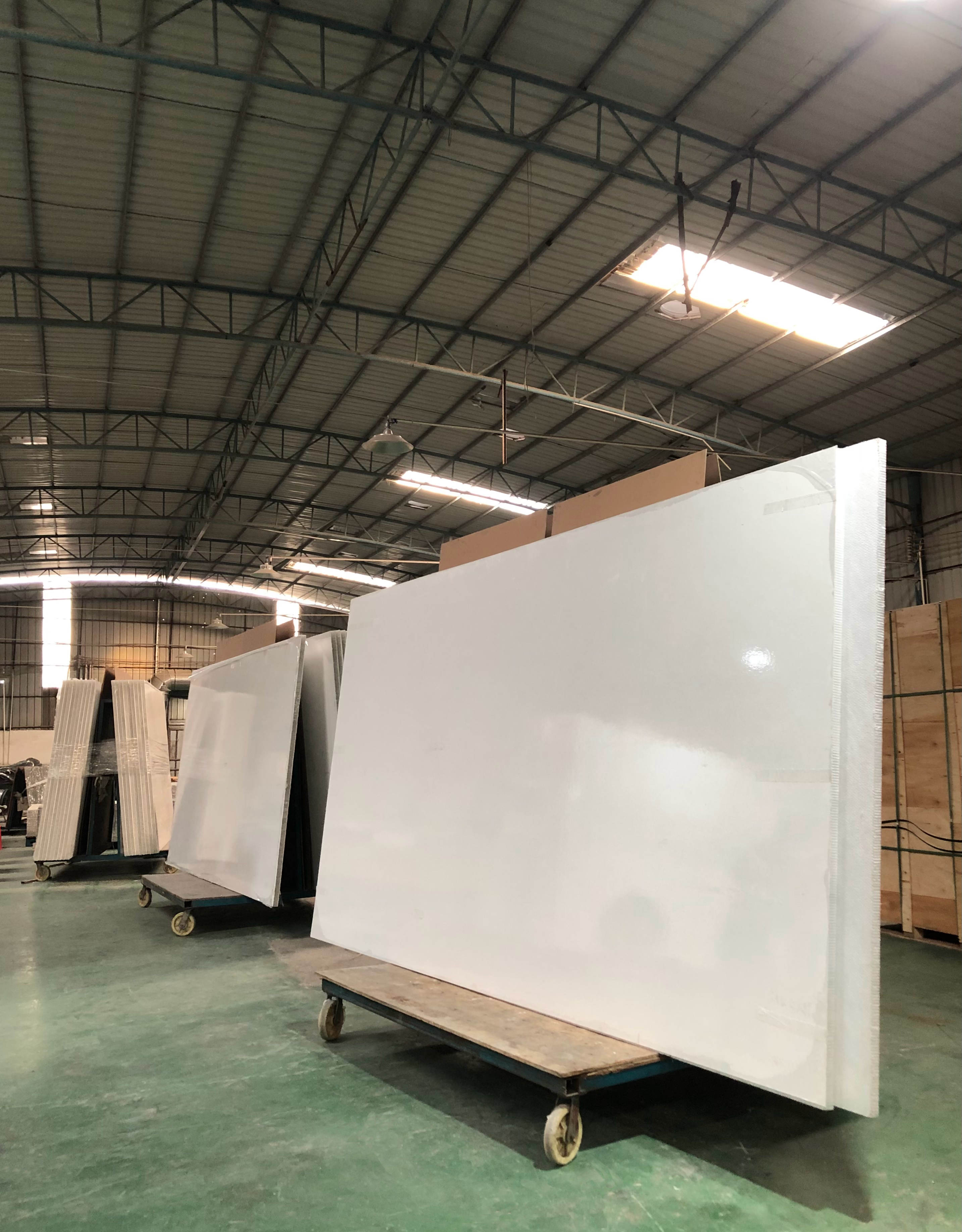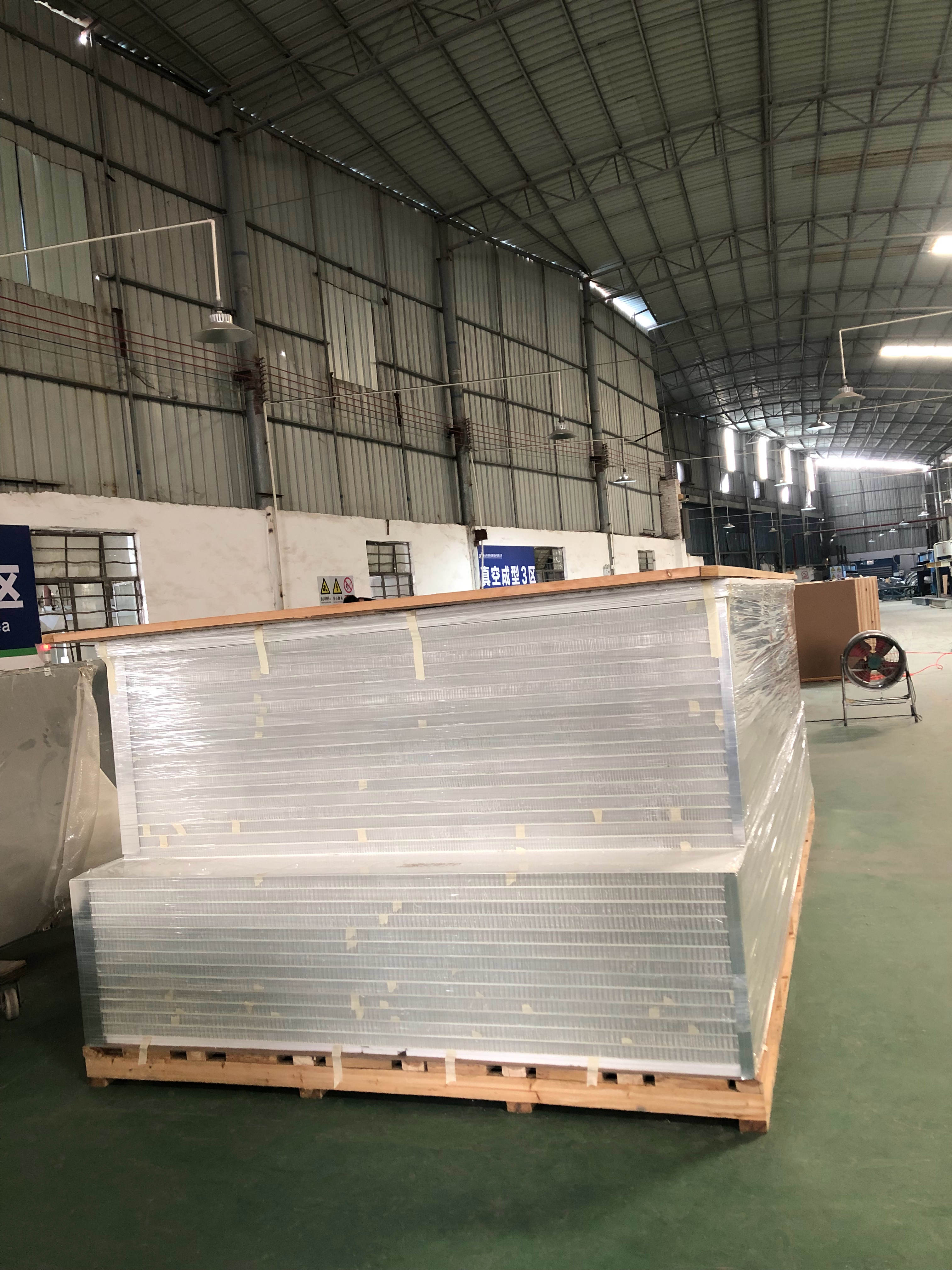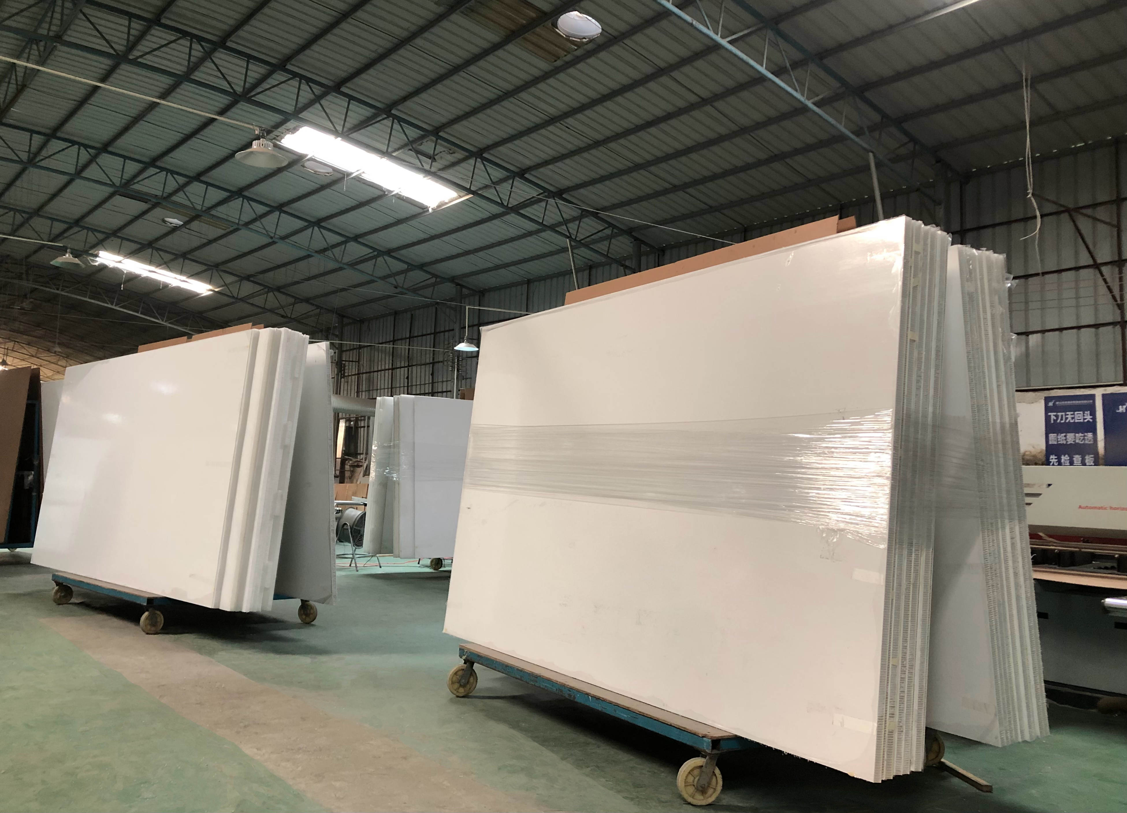 3、优越的平整度和刚性:铝蜂窝板由许多相互牵制的密集蜂窝构成,犹如许多小工字梁,可分散承受来自面板方向的压力,使板受力均匀,保证了其承受压力的强度和面板在较大面积时保持很高的平整度。