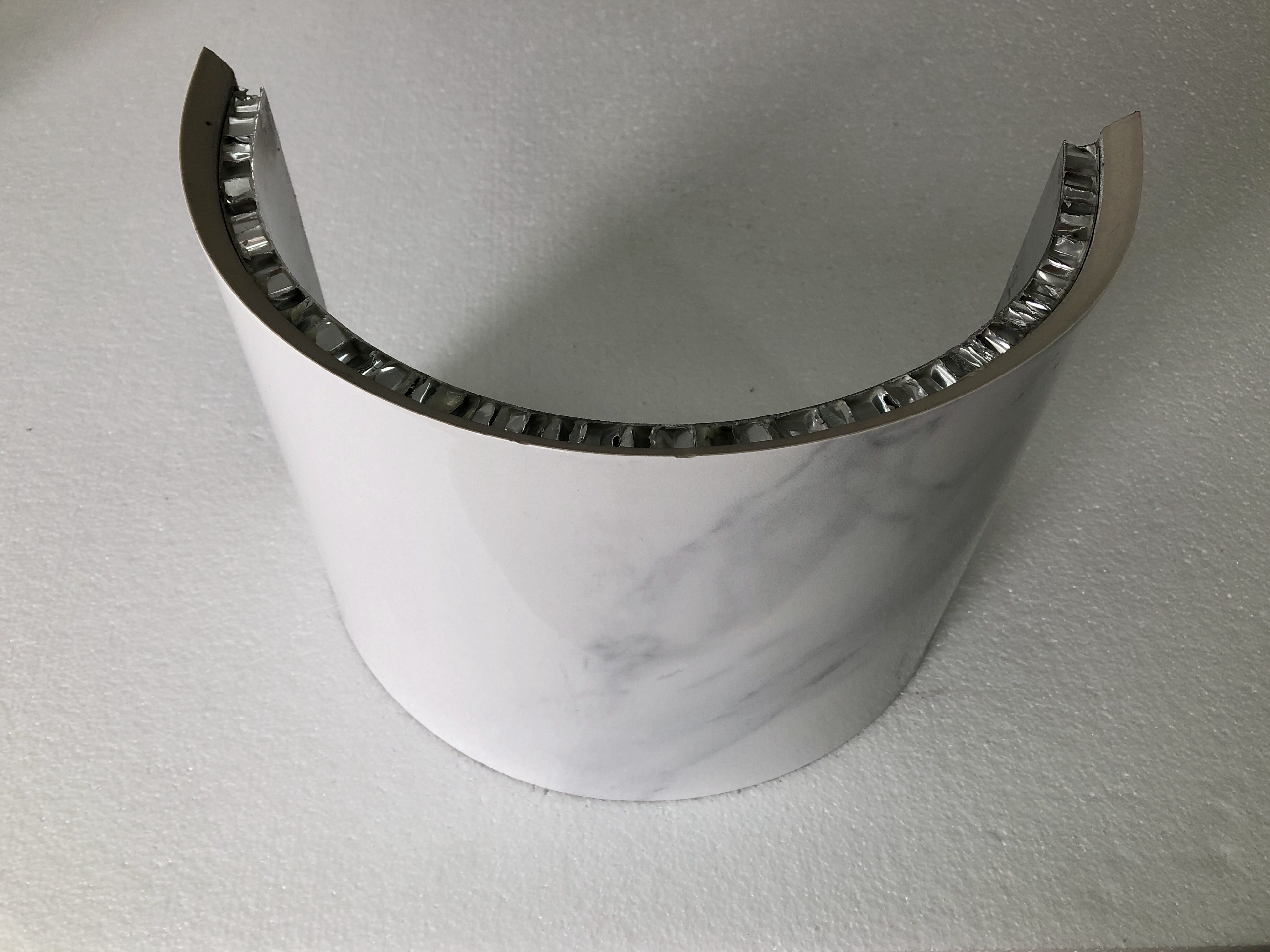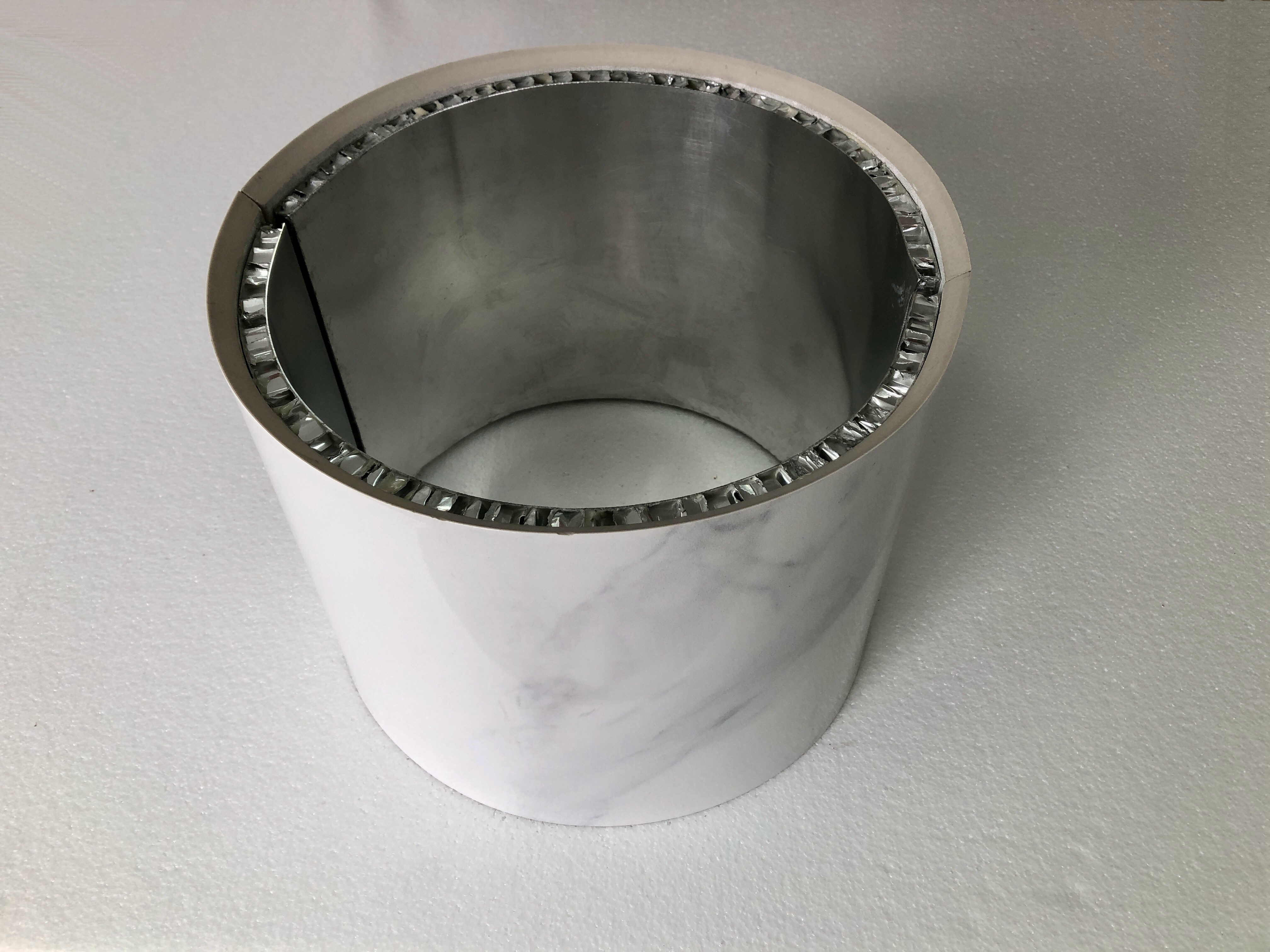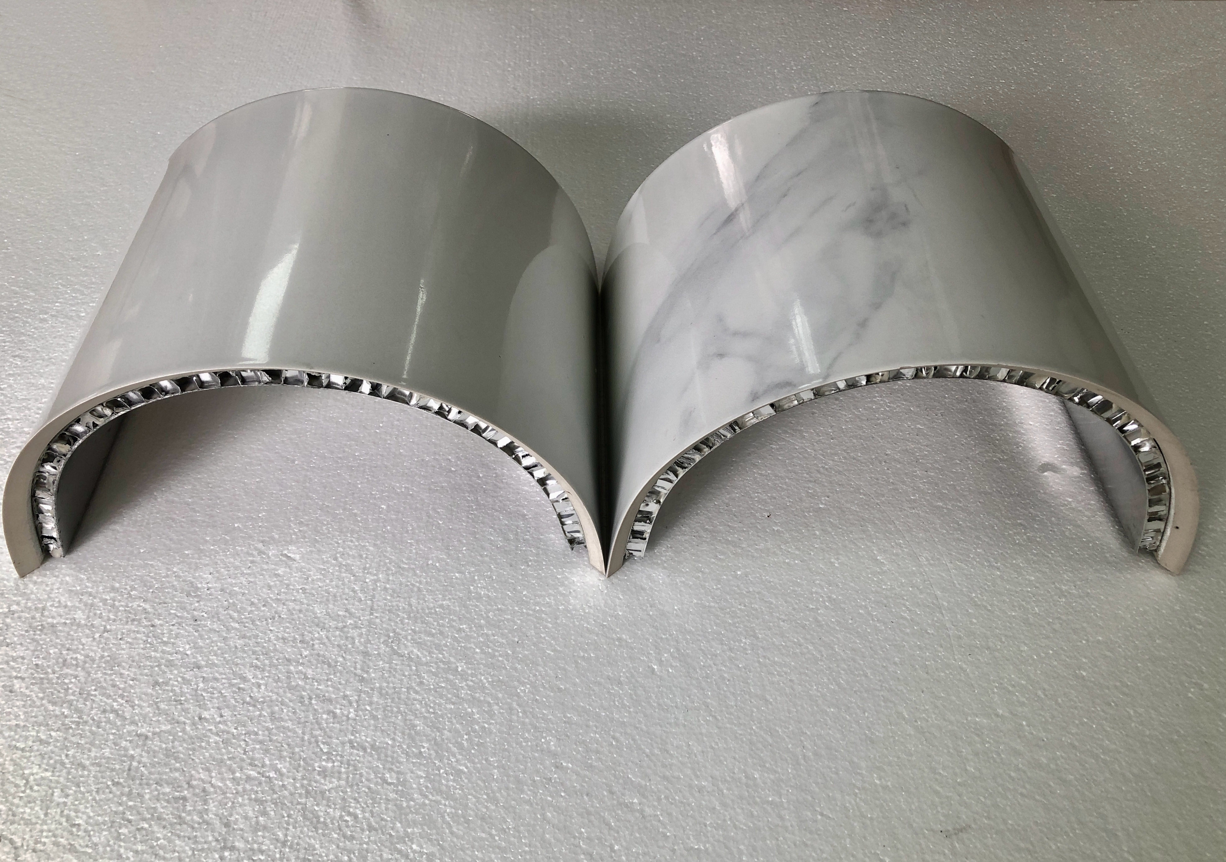 岩板铝蜂窝复合板表面为mm厚度的自然石材。以轻质铝蜂窝为基材,是一种具有更优越性能和更广泛应用领域的新一代建筑石材产品,岩板蜂窝复合板具有重量轻,抗冲击强度大,安全性好,安装方便,简单,省时省力,安装成本低。