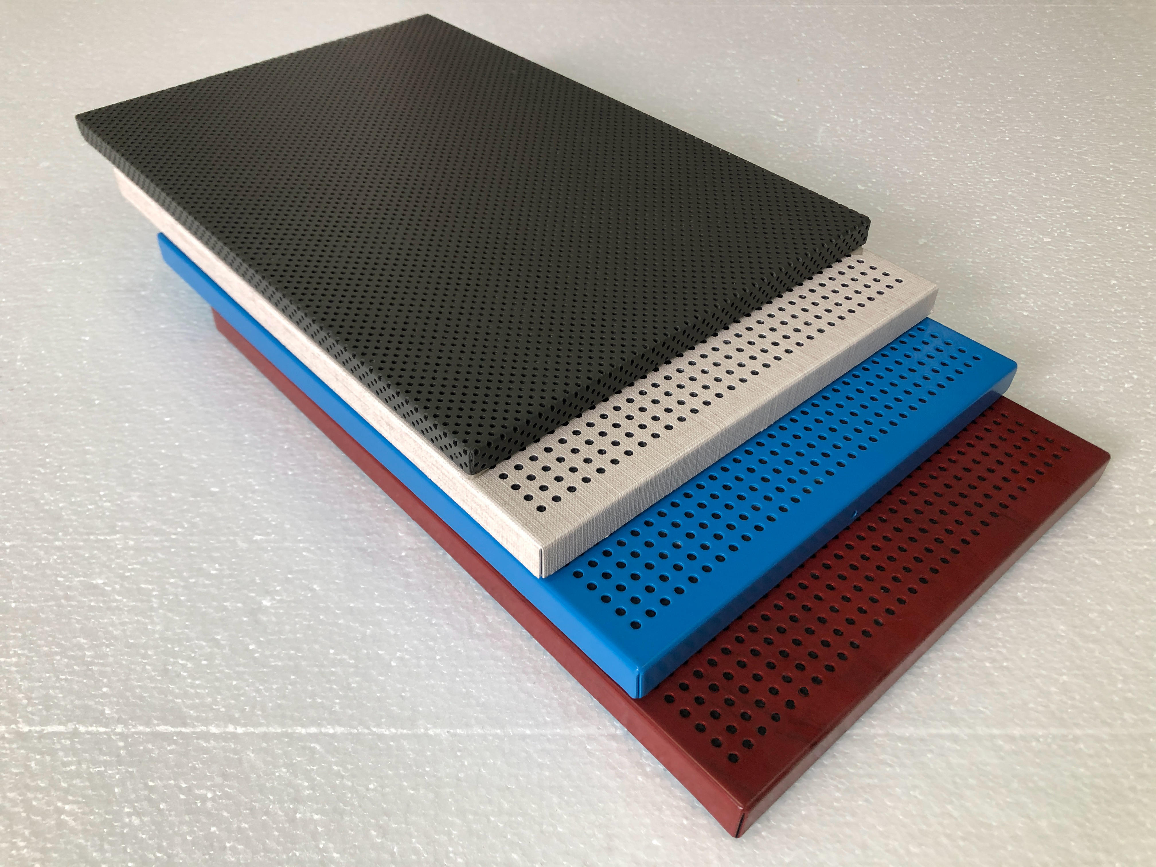 冲孔铝蜂窝板是在铝蜂窝板的表面按照一定规律冲出的小孔,不仅美观大方,而且内部暗藏吸音纸吸音效果非常好,适用于会议室、礼堂等多种场合。 蜂窝铝皮上有小孔,使板内气体可以自由流动;可滑动安装扣系统在热胀冷缩时不会引起结构变形,因此可以保证极高的平整度。