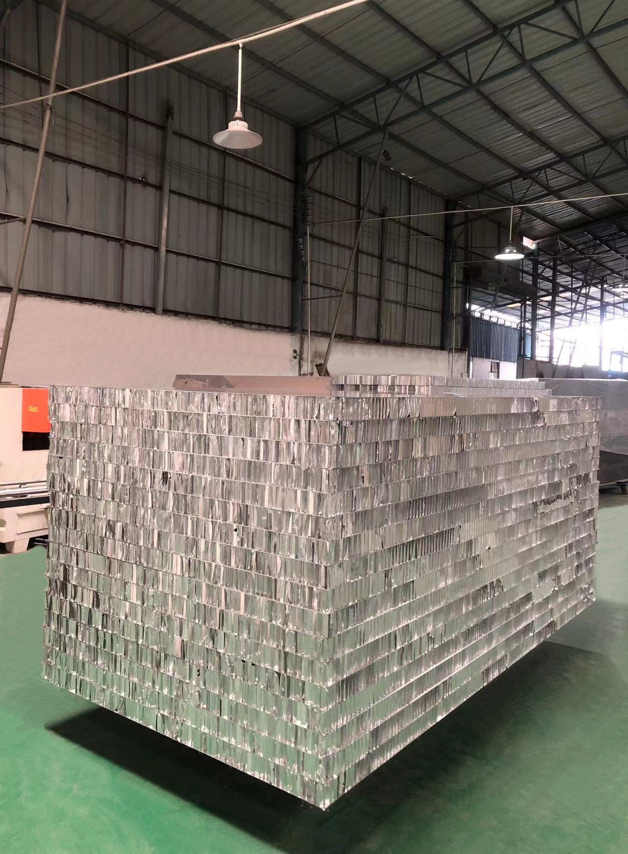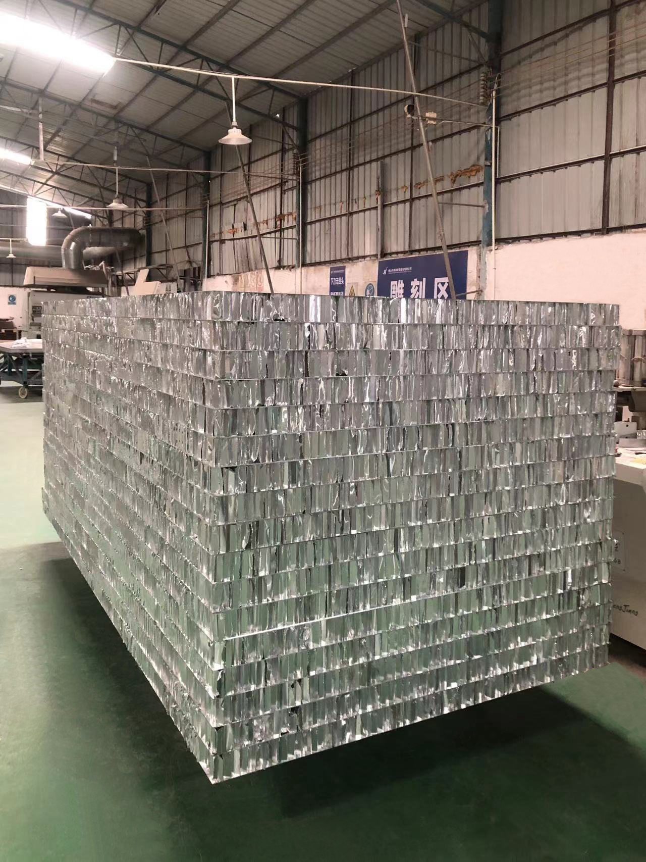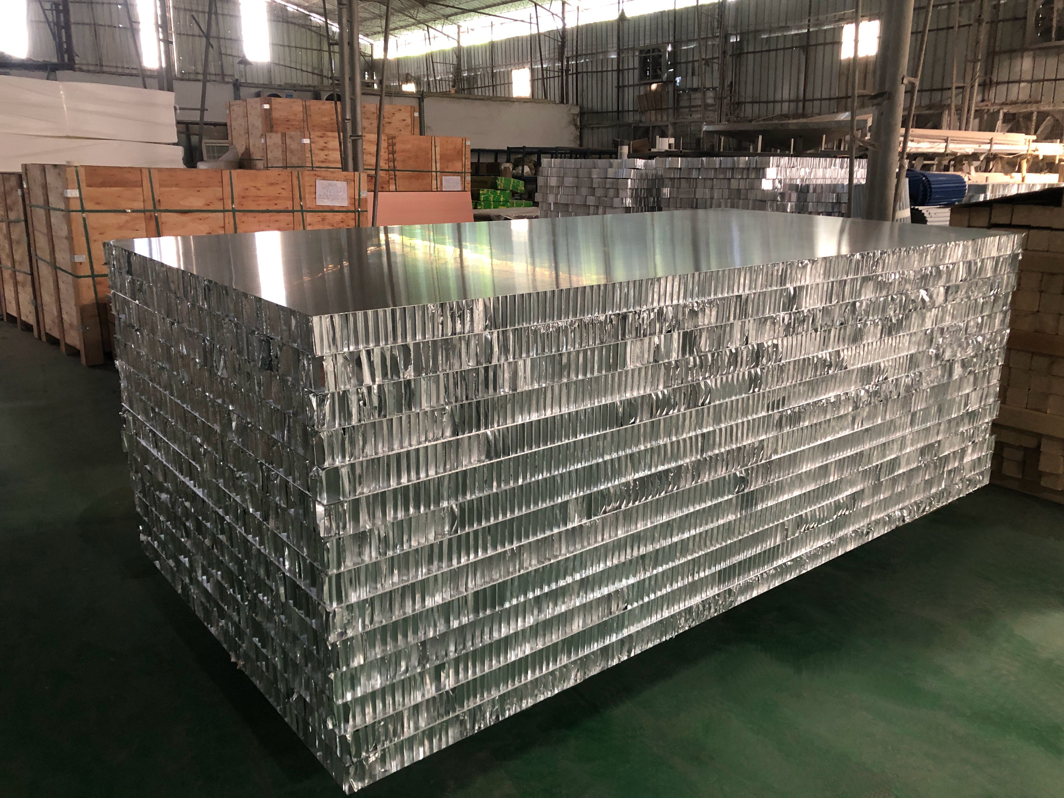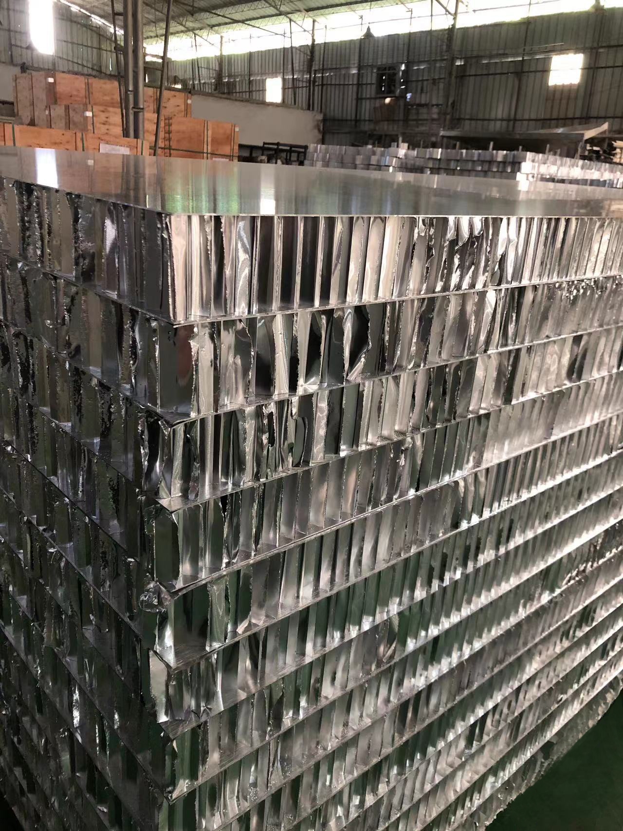 3、优越的平整度和刚性:铝蜂窝板由许多相互牵制的密集蜂窝构成,犹如许多小工字梁,可分散承受来自面板方向的压力,使板受力均匀,保证了其承受压力的强度和面板在较大面积时保持很高的平整度。