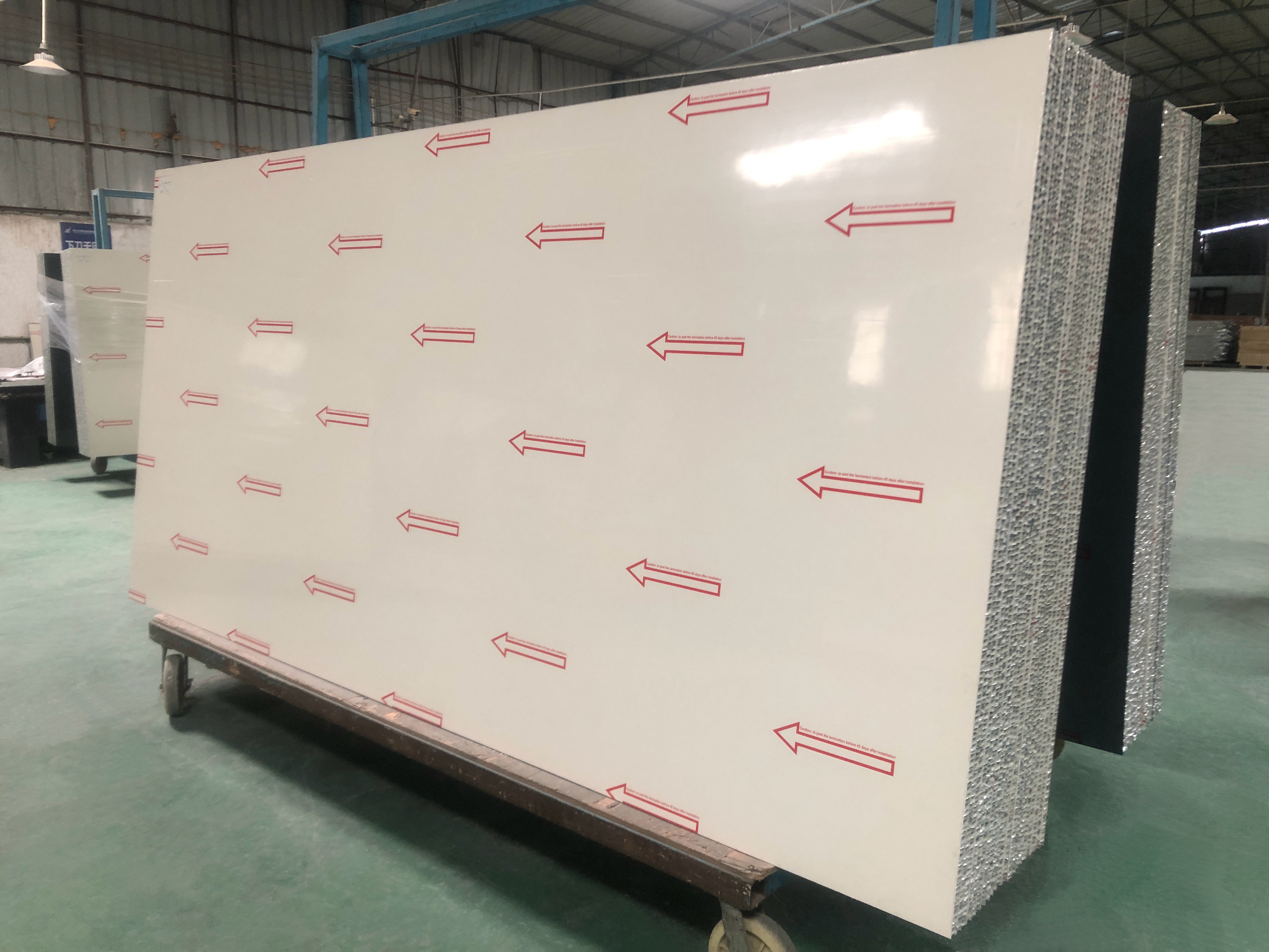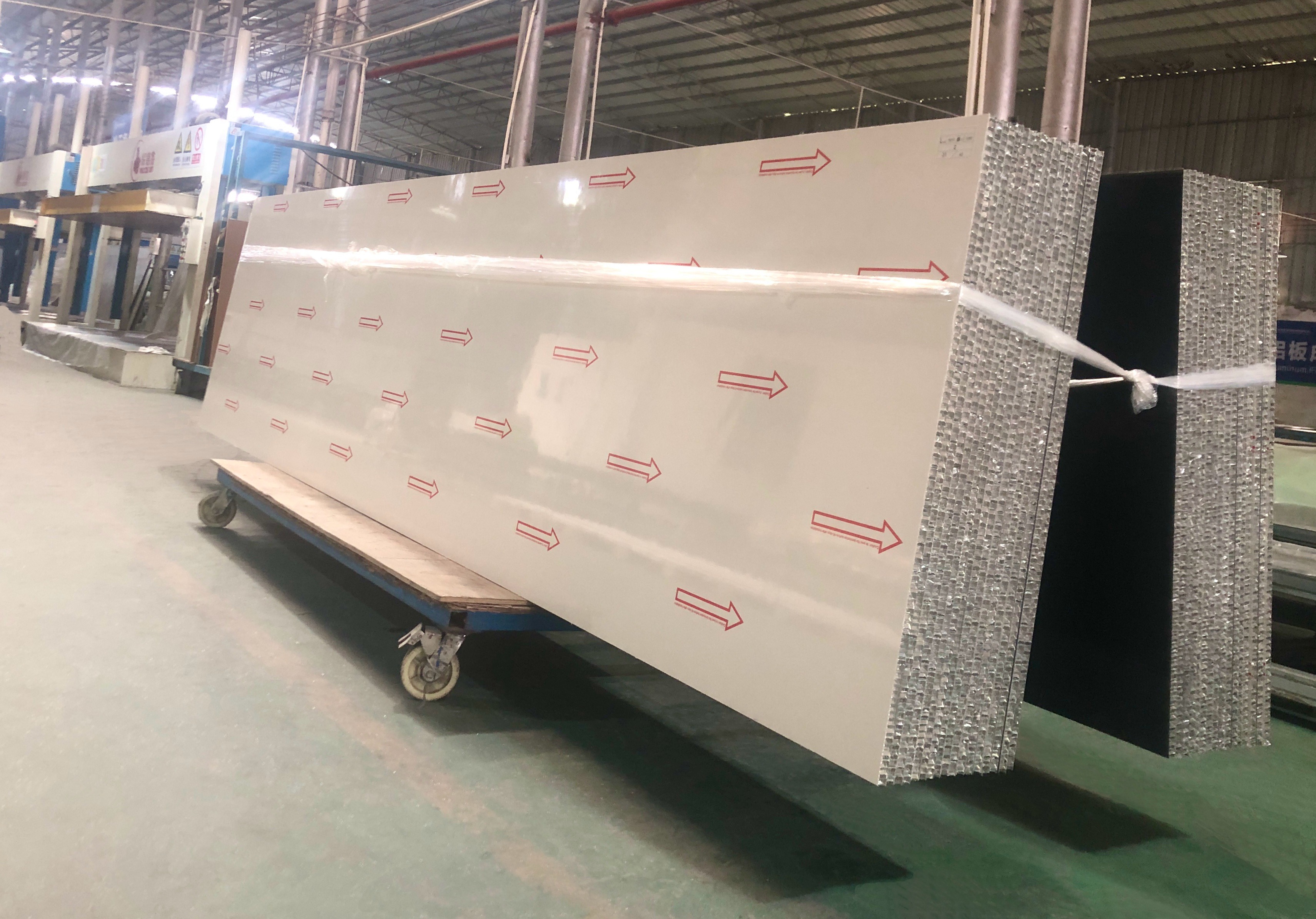 铝蜂窝板表面采用经氟碳辊涂处理的铝合金板材,中间是符合美国航空标准的铝蜂窝,本公司从法国引进生产三明冶夹心板的专用复合工艺冷压和热压技术,专业生产此类产品,使得该产品更具显著的优异特性,广泛应用于建筑幕墙及室内外装饰,更由于本公司有专业且全面的生产工艺的保障,因此,完全可以根据客户的要求和实际情况采用不同的复合工艺生产产品。