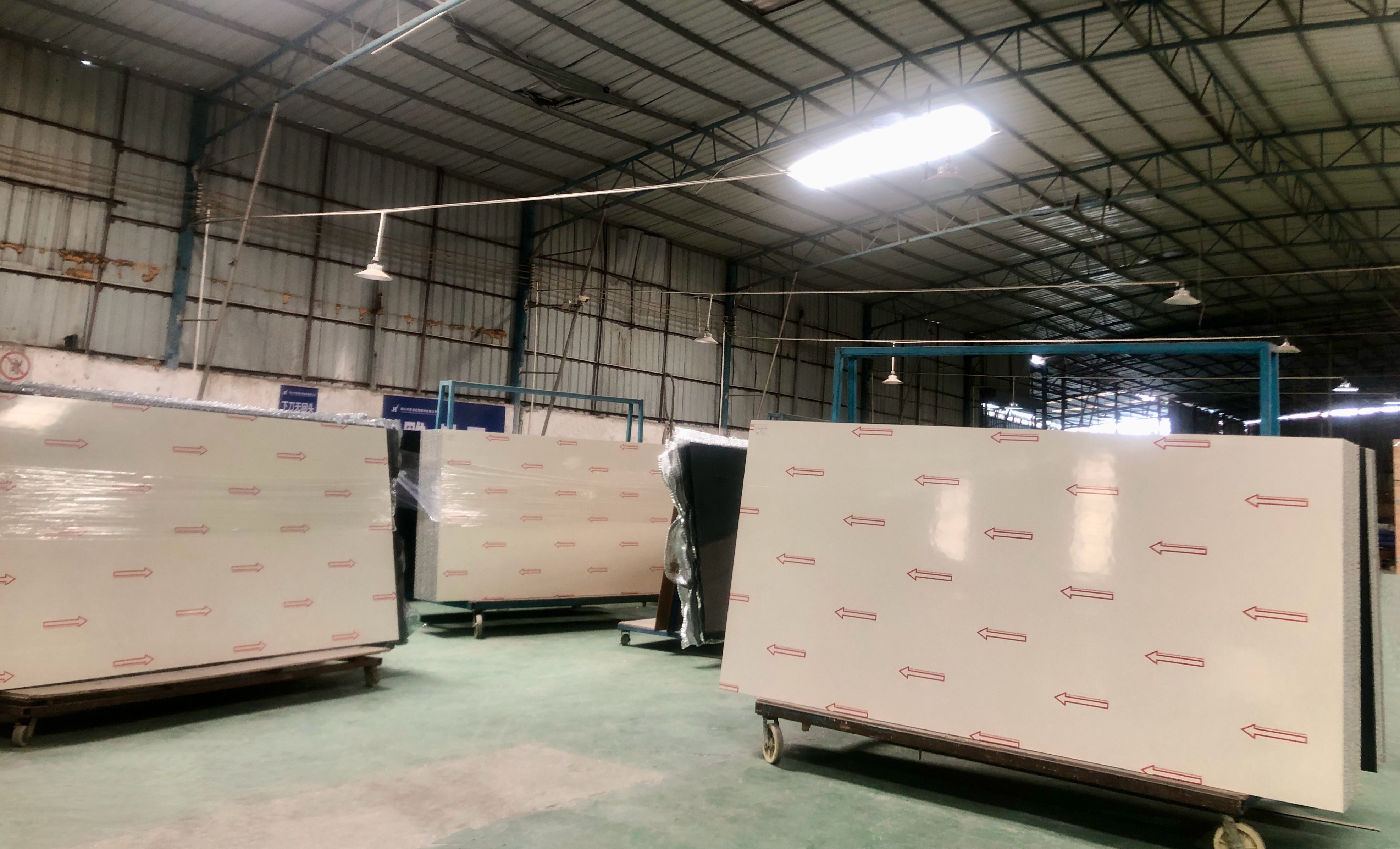 幕墙装饰、室内装饰、门柜、办公台、卫生间隔断、屋面材料、吊顶、电梯装饰、地铁、高速列车、豪华车船内饰等。