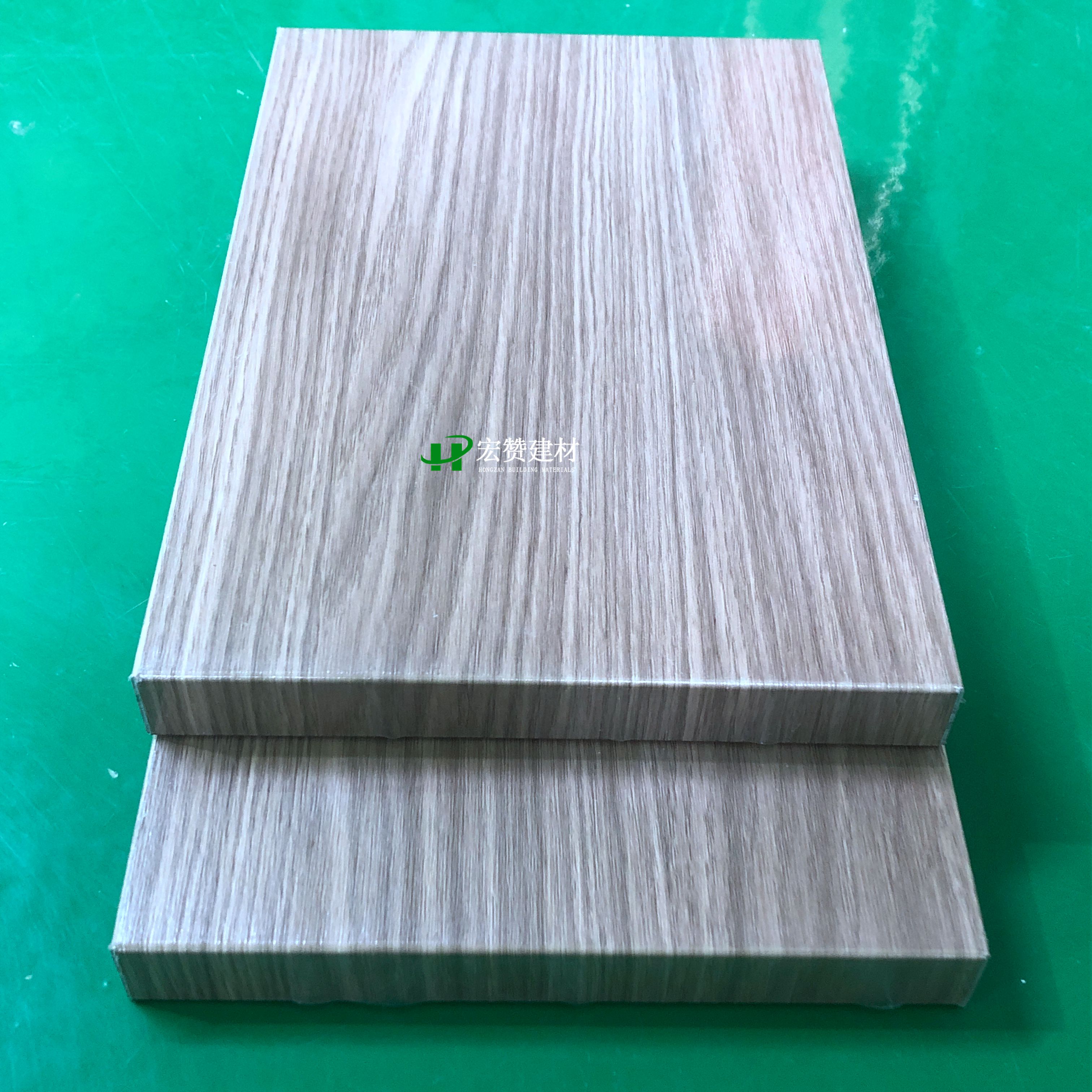 木纹铝蜂窝板是在蜂窝板的面板上进行热转印木纹处理,其木纹图案高档华丽、色泽纹理逼真、图纹牢固耐磨,木纹色凸显绿色环保的生活理念,体现出一种高档奢华的建筑风格,缓解都市人紧张工作的压力,使人有置身大自然的感觉。