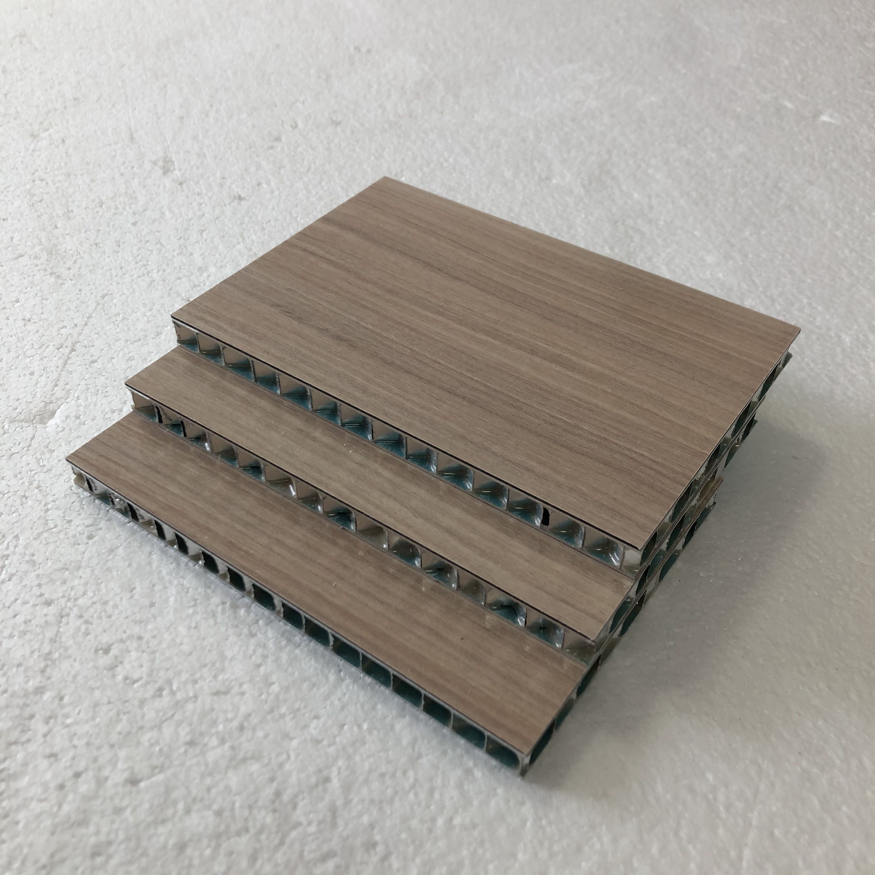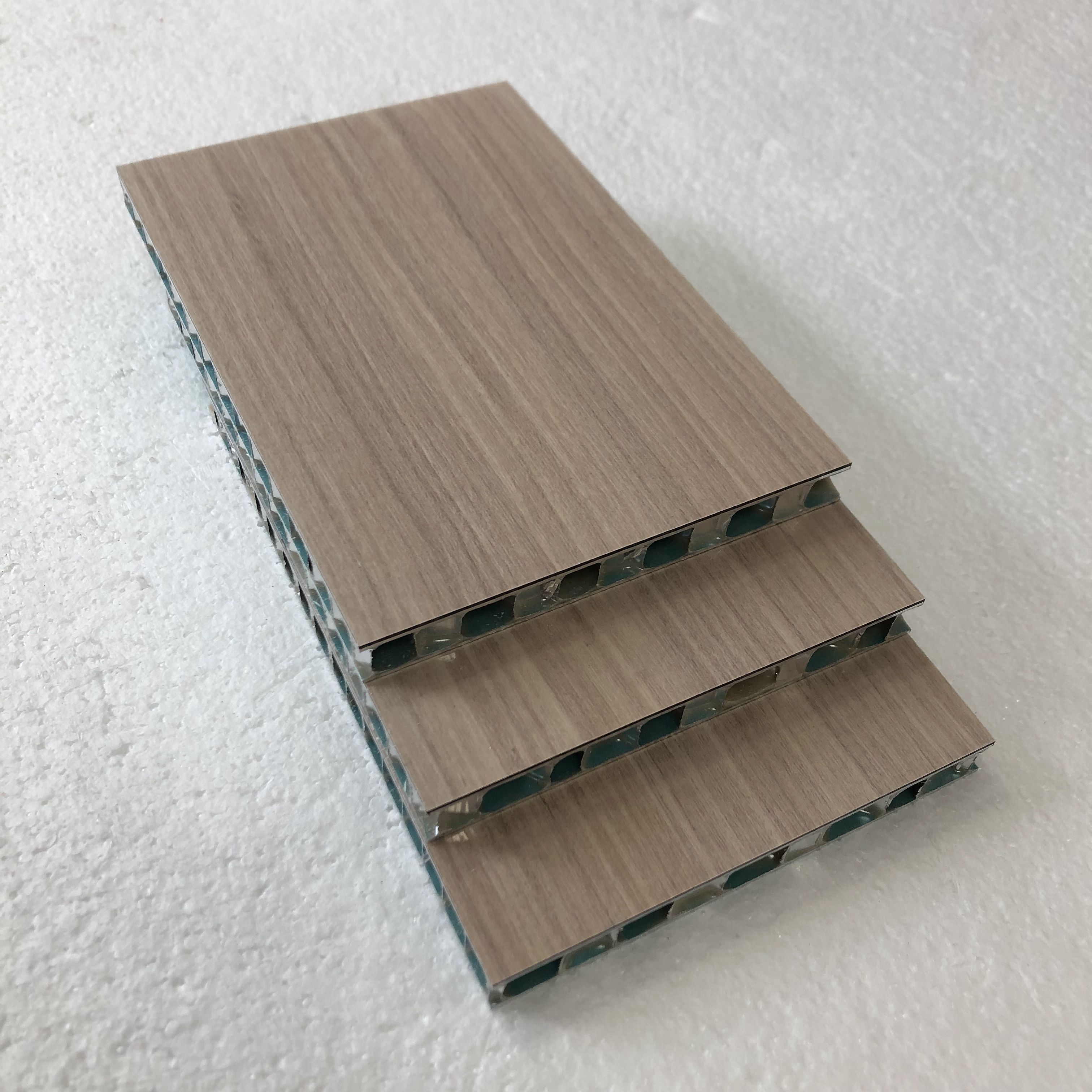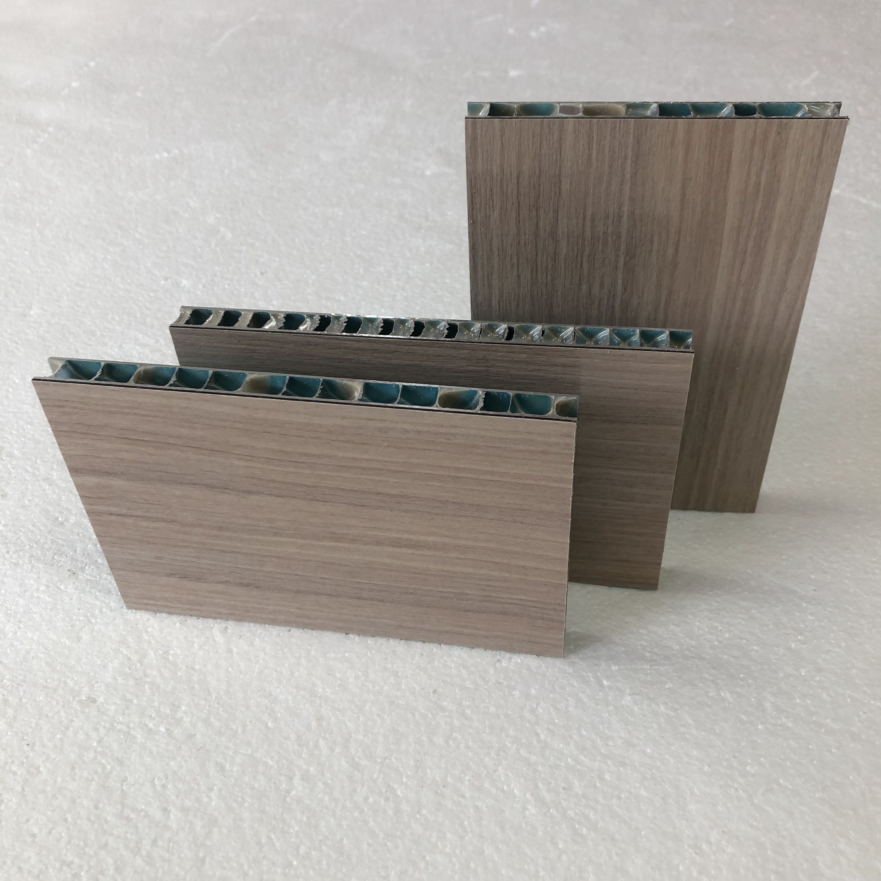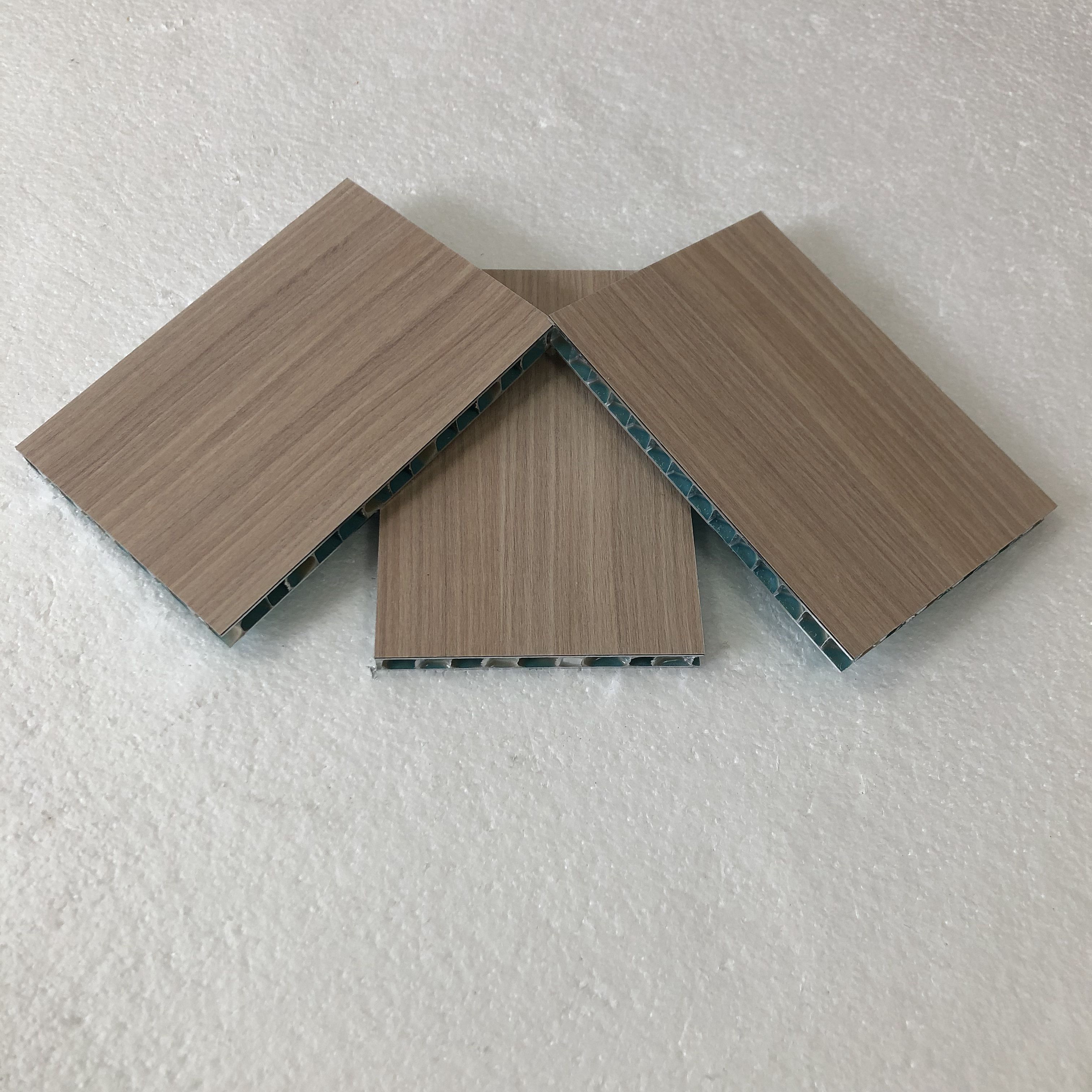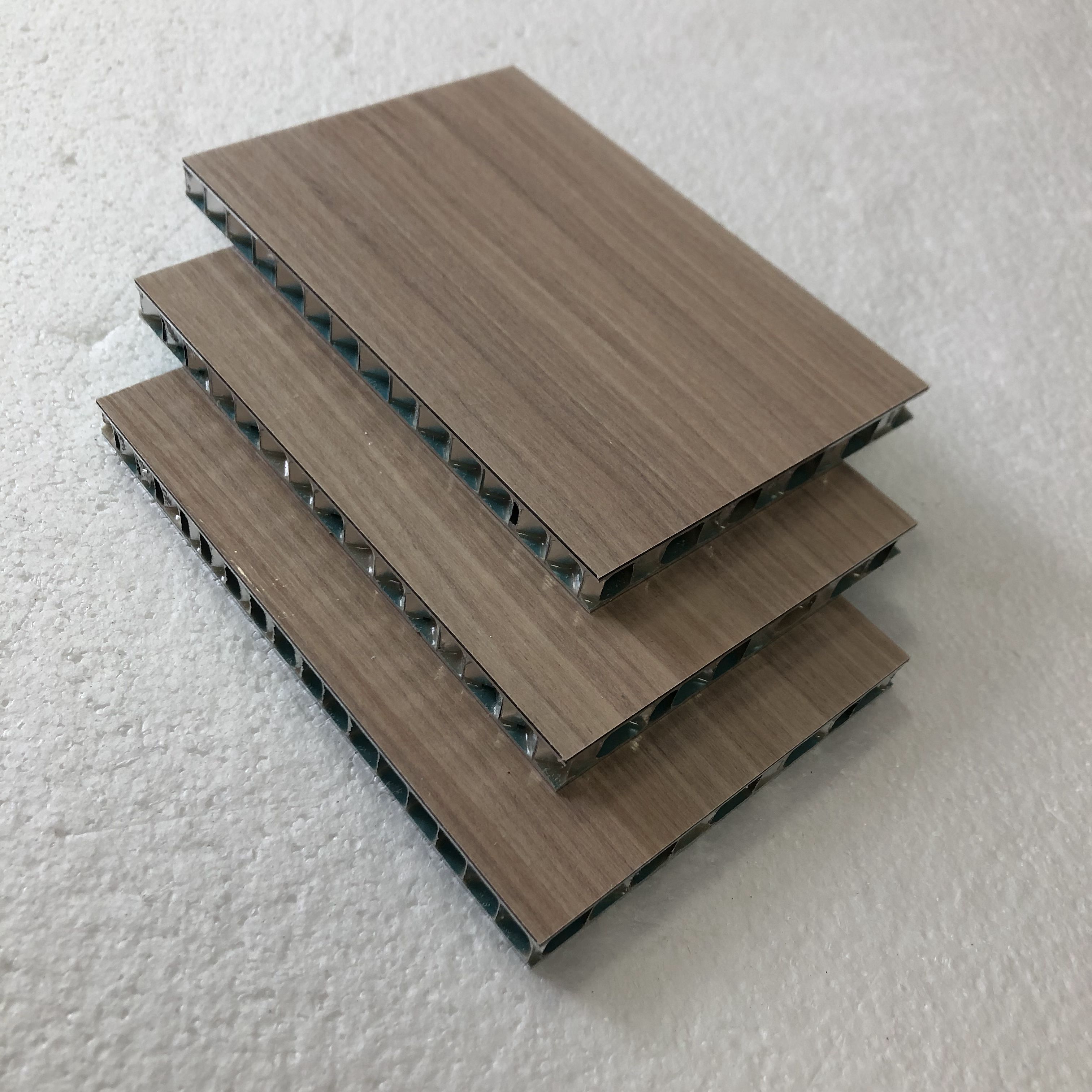 木纹铝蜂窝板中间是符合美国航空标准的铝蜂窝,本公司从法国引进生产三明冶夹心板的专用复合工艺冷压和热压技术,专业生产此类产品,使得该产品更具显著的优异特性,广泛应用于建筑幕墙及室内外装饰,更由于本公司有专业且全面的生产工艺的保障,因此,完全可以根据客户的要求和实际情况采用不同的复合工艺生产产品。