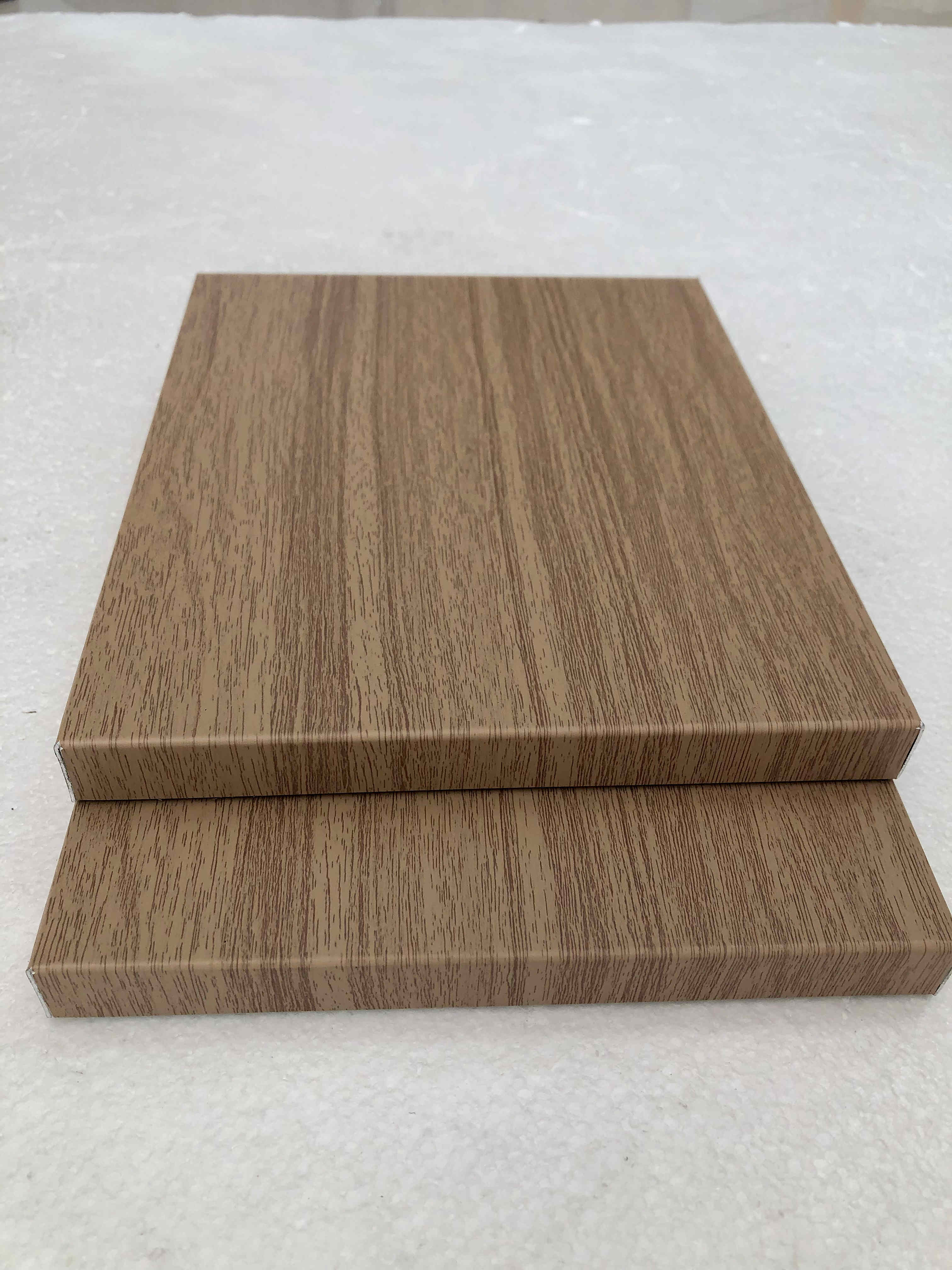 木纹铝蜂窝板是在蜂窝板的面板上进行热转印木纹处理,其木纹图案高档华丽、色泽纹理逼真、图纹牢固耐磨,木纹色凸显绿色环保的生活理念,体现出一种高档奢华的建筑风格,缓解都市人紧张工作的压力,使人有置身大自然的感觉。