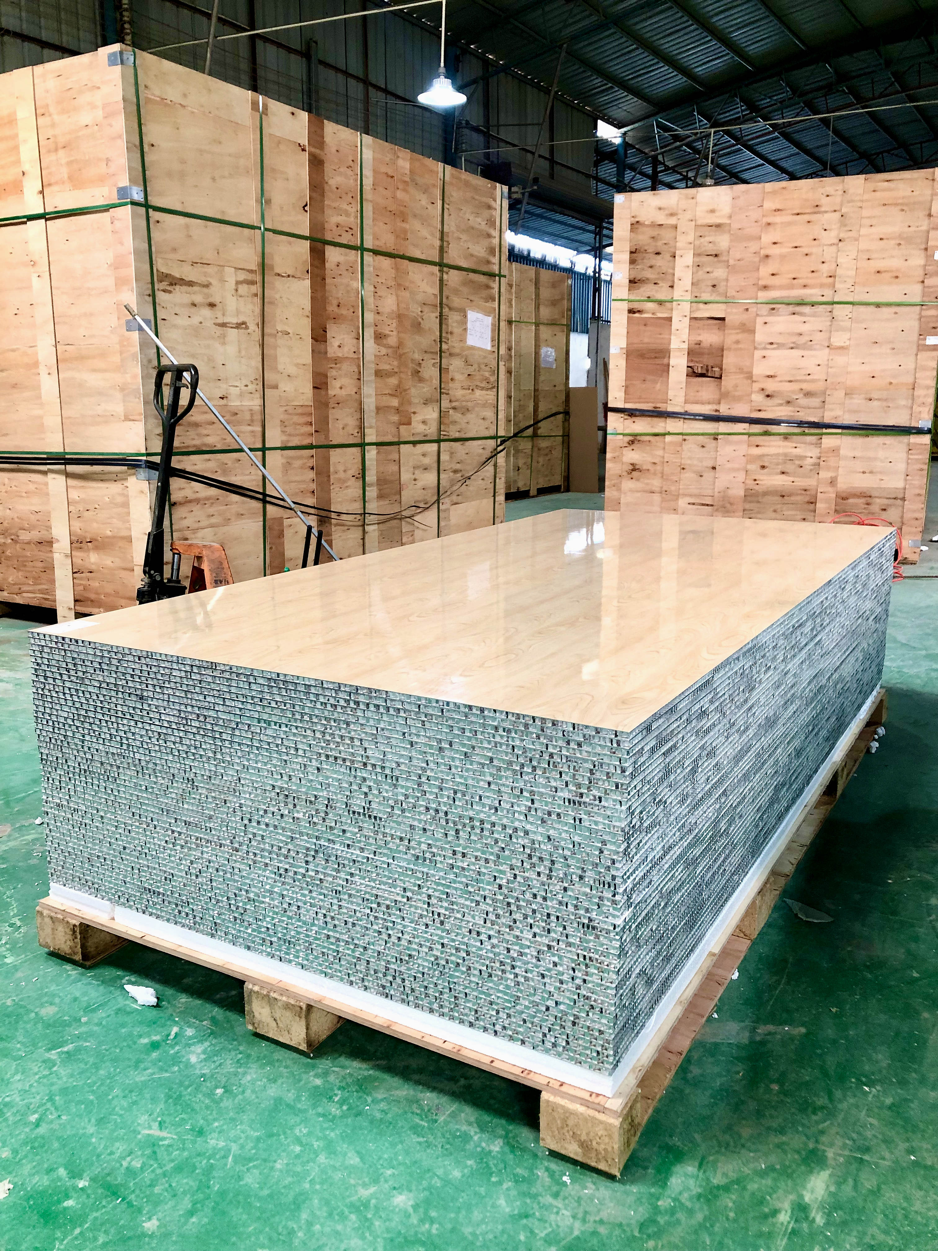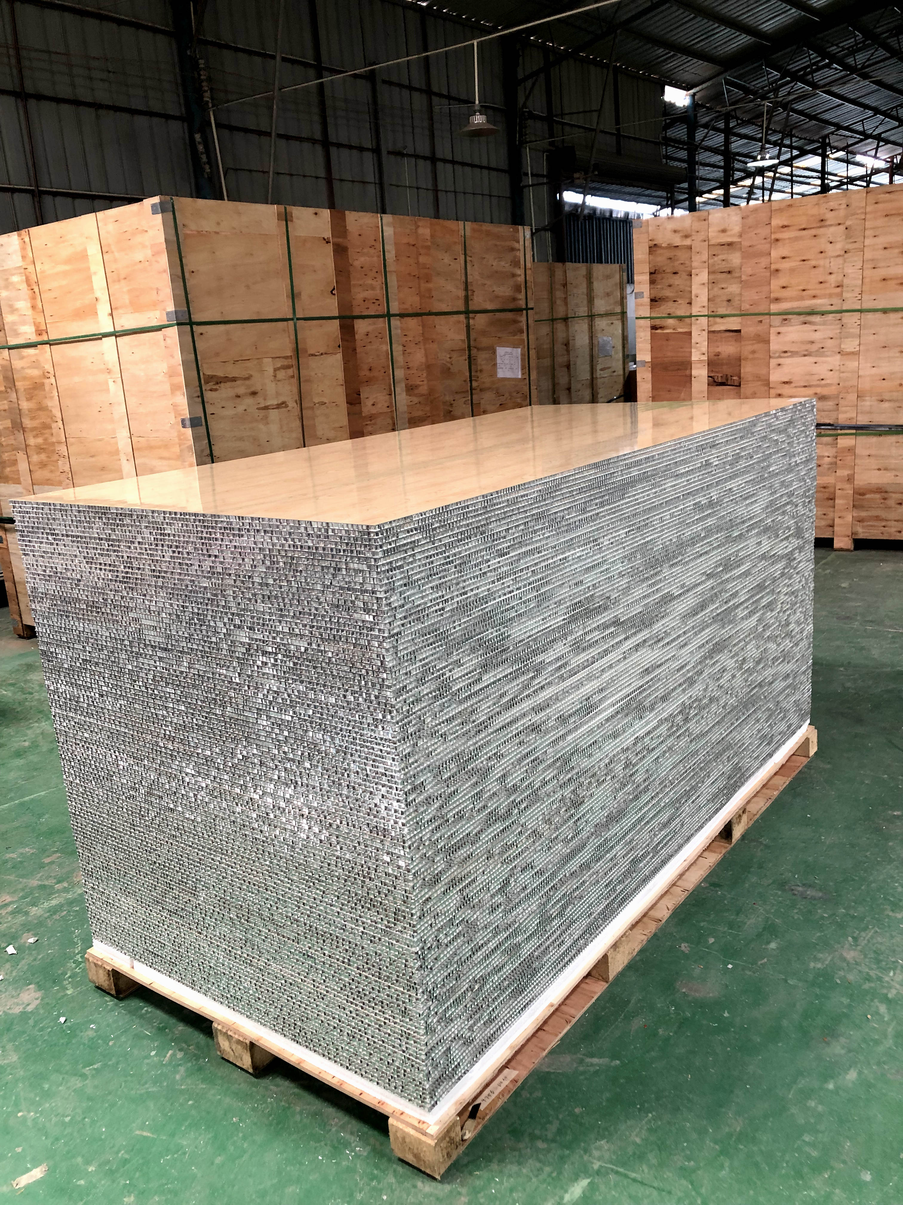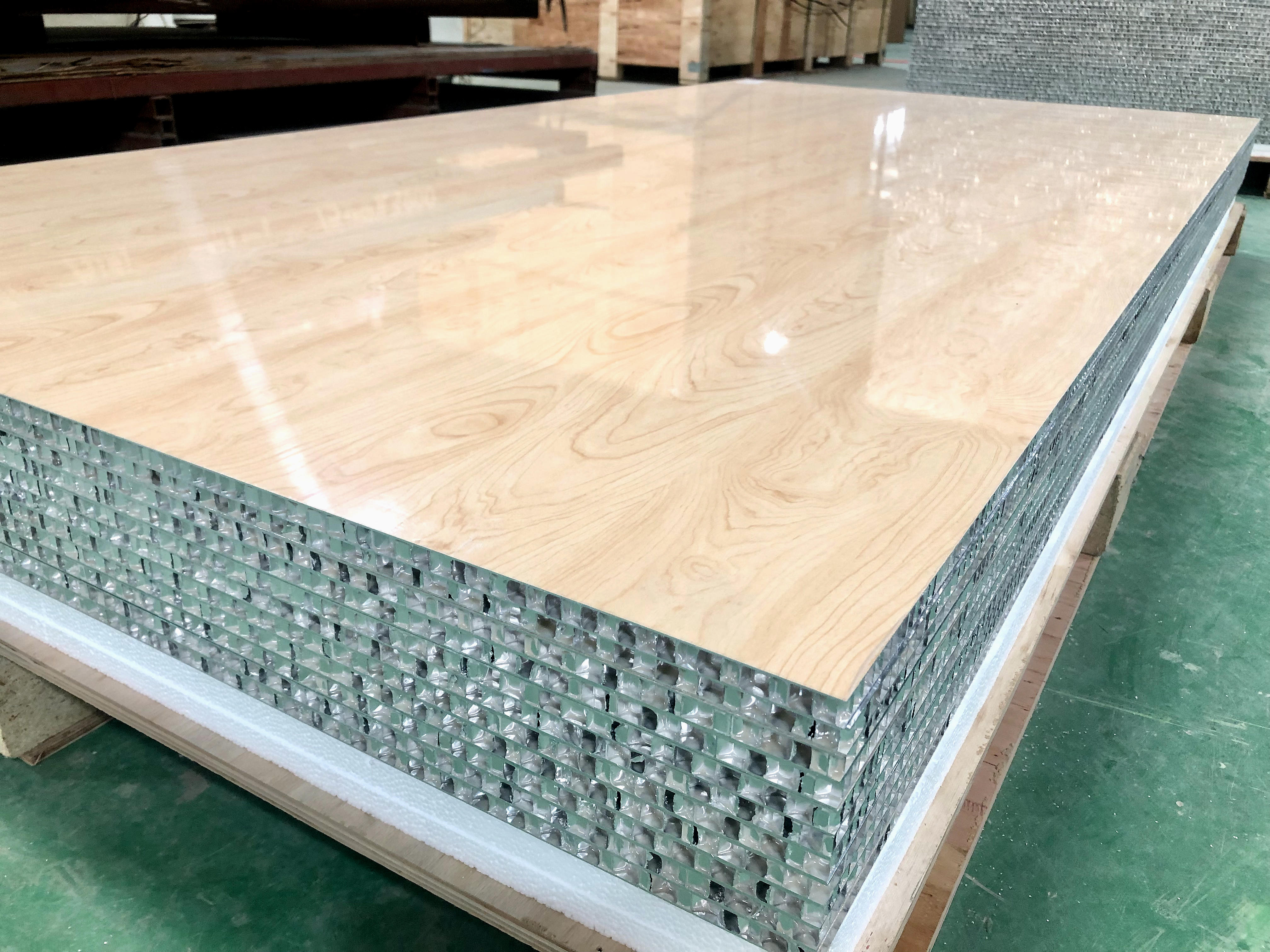 木纹铝蜂窝板中间是符合美国航空标准的铝蜂窝,本公司从法国引进生产三明冶夹心板的专用复合工艺冷压和热压技术,专业生产此类产品,使得该产品更具显著的优异特性,广泛应用于建筑幕墙及室内外装饰,更由于本公司有专业且全面的生产工艺的保障,因此,完全可以根据客户的要求和实际情况采用不同的复合工艺生产产品。