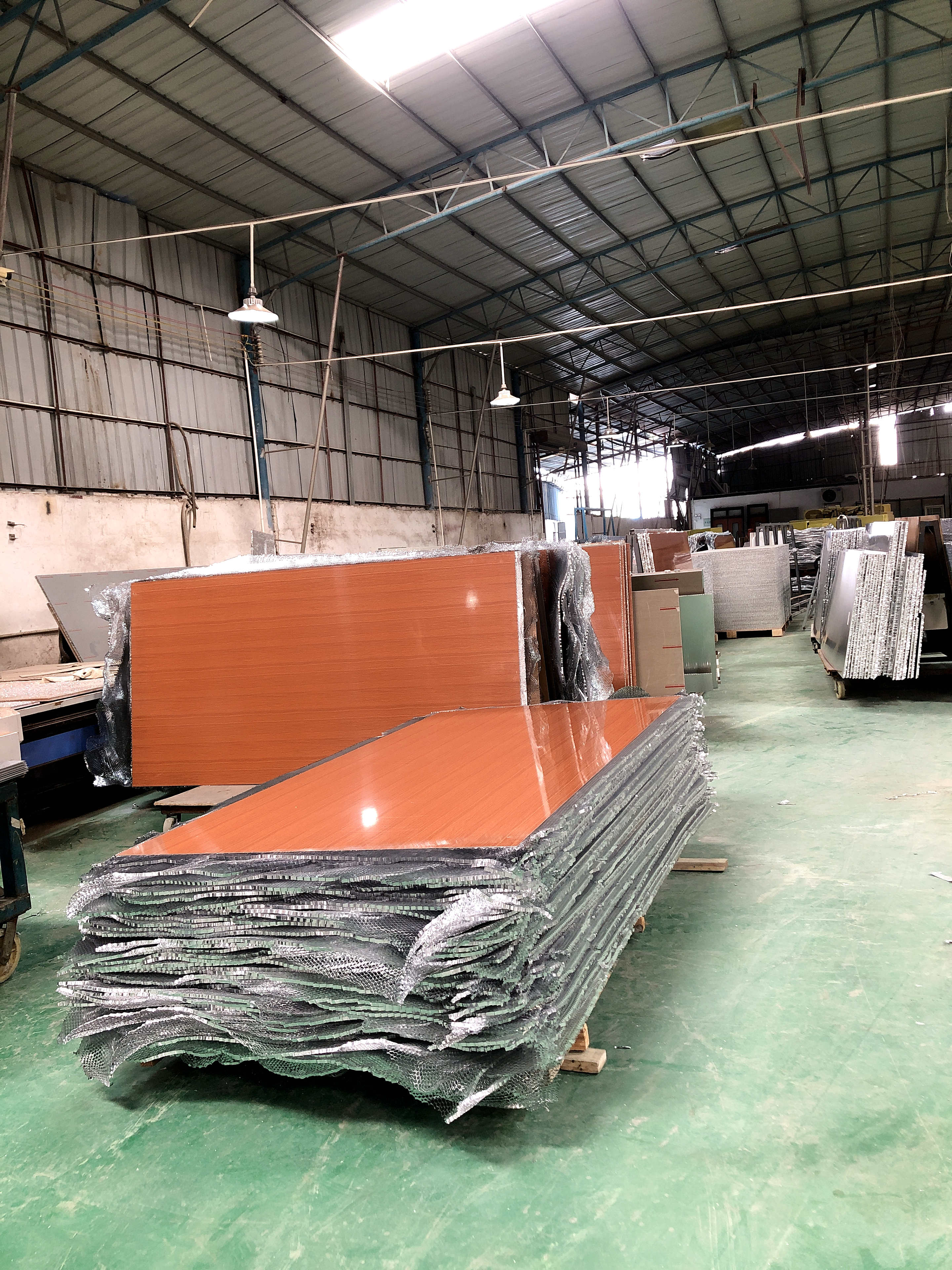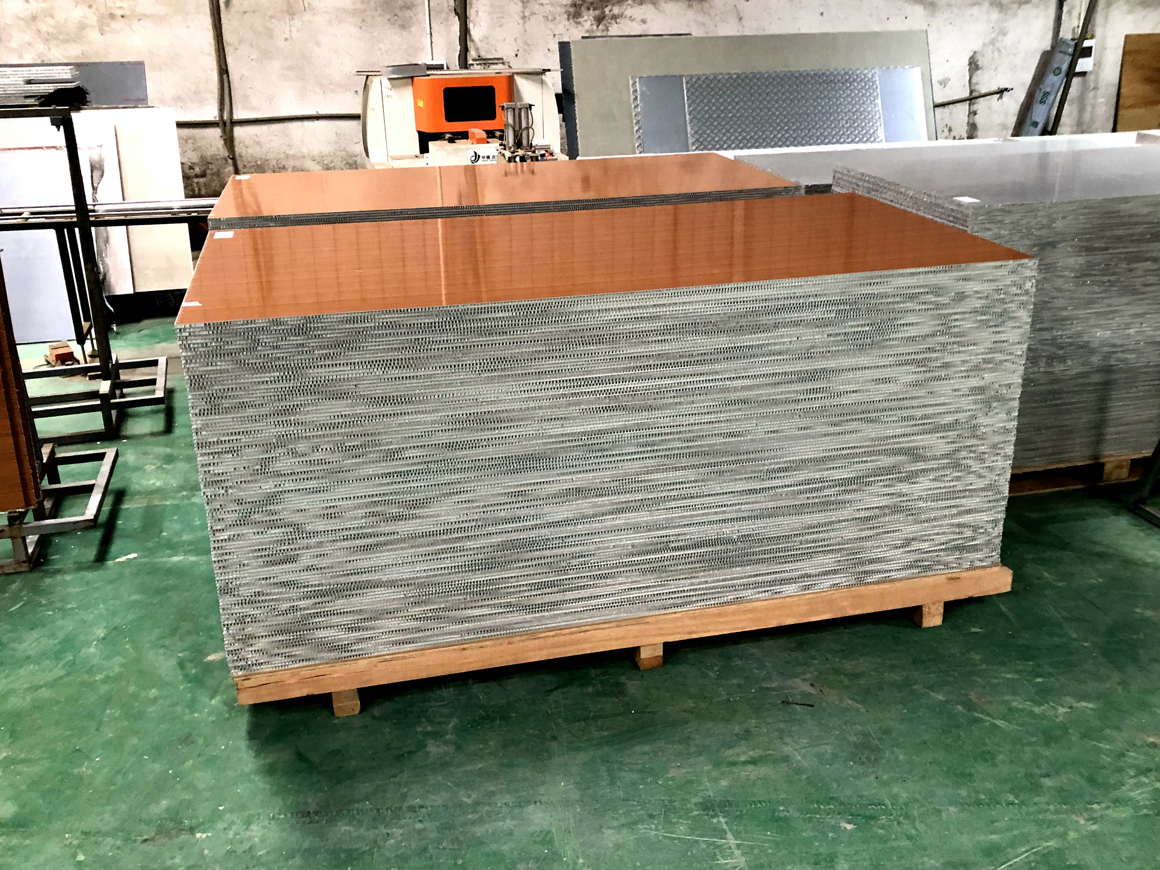 木纹铝蜂窝板中间是符合美国航空标准的铝蜂窝,本公司从法国引进生产三明冶夹心板的专用复合工艺冷压和热压技术,专业生产此类产品,使得该产品更具显著的优异特性,广泛应用于建筑幕墙及室内外装饰,更由于本公司有专业且全面的生产工艺的保障,因此,完全可以根据客户的要求和实际情况采用不同的复合工艺生产产品。