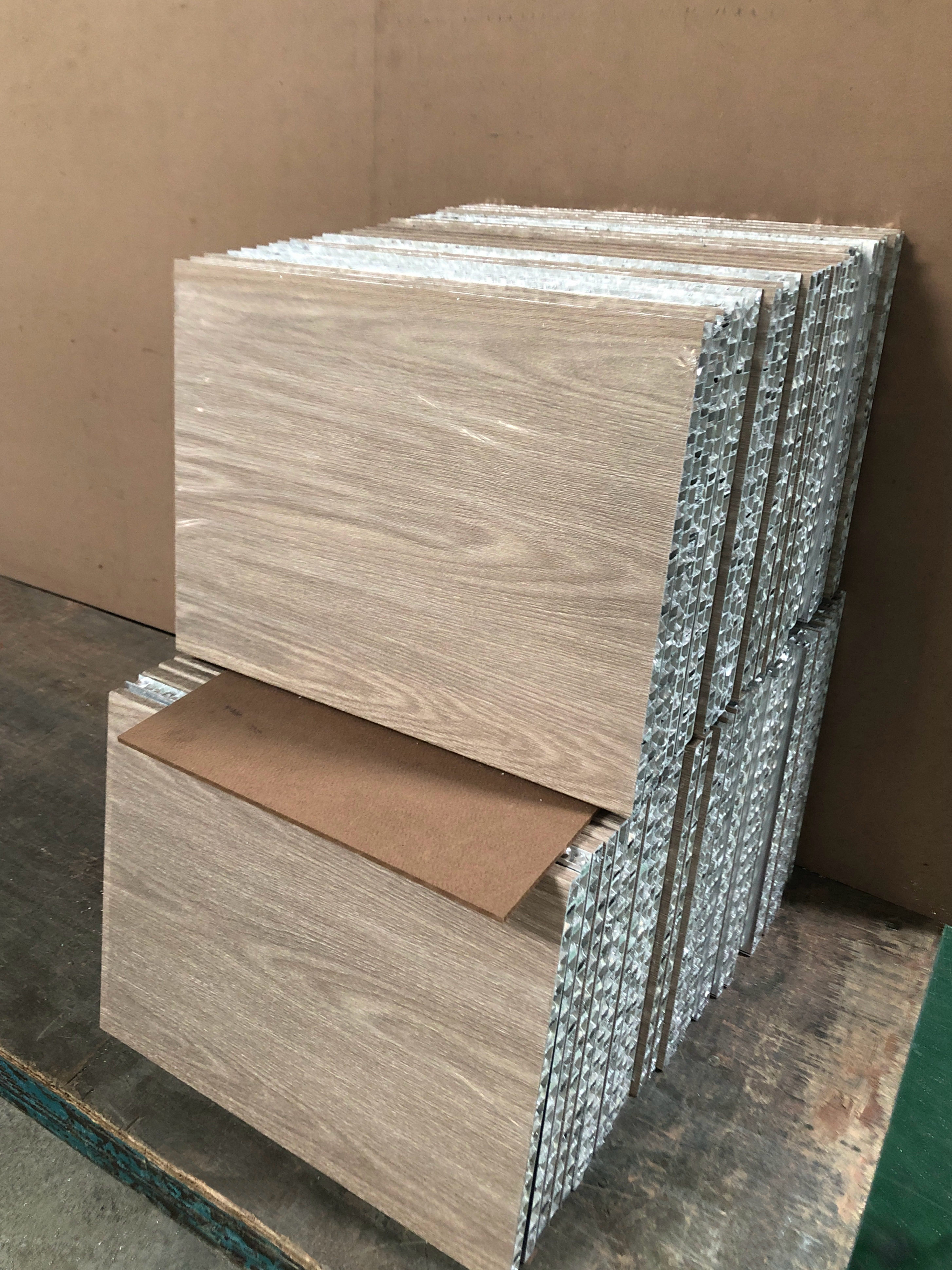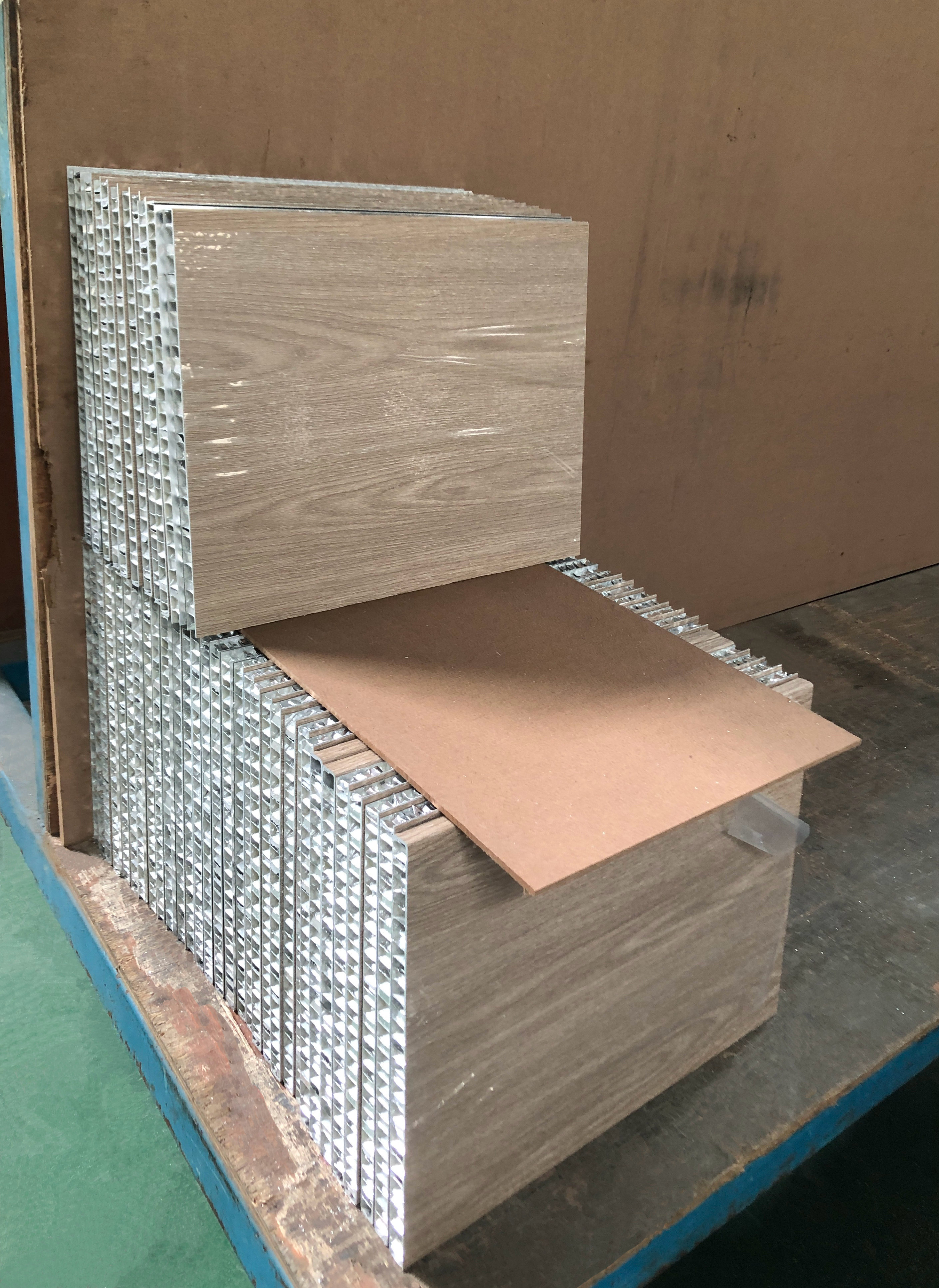 木纹铝蜂窝板中间是符合美国航空标准的铝蜂窝,本公司从法国引进生产三明冶夹心板的专用复合工艺冷压和热压技术,专业生产此类产品,使得该产品更具显著的优异特性,广泛应用于建筑幕墙及室内外装饰,更由于本公司有专业且全面的生产工艺的保障,因此,完全可以根据客户的要求和实际情况采用不同的复合工艺生产产品。