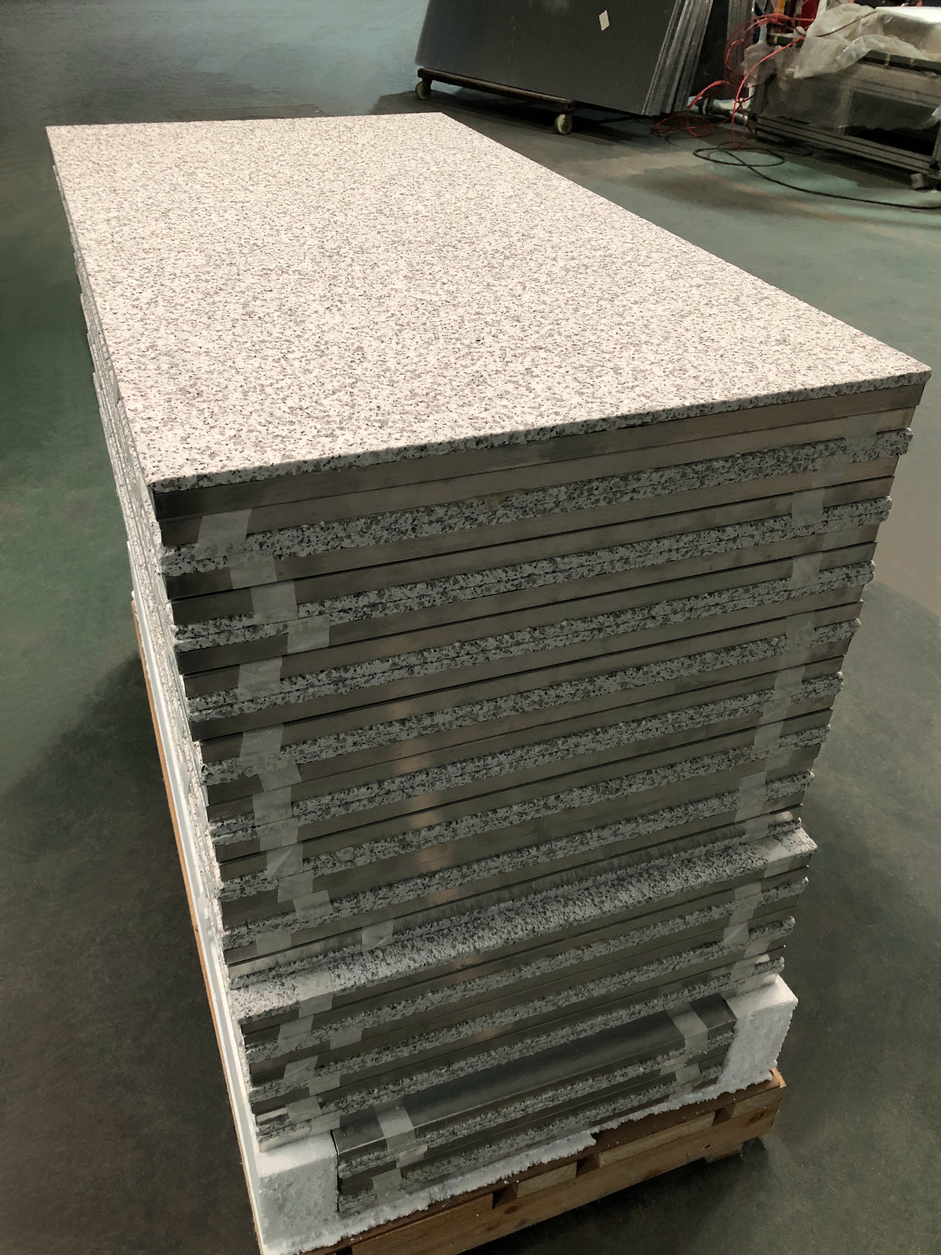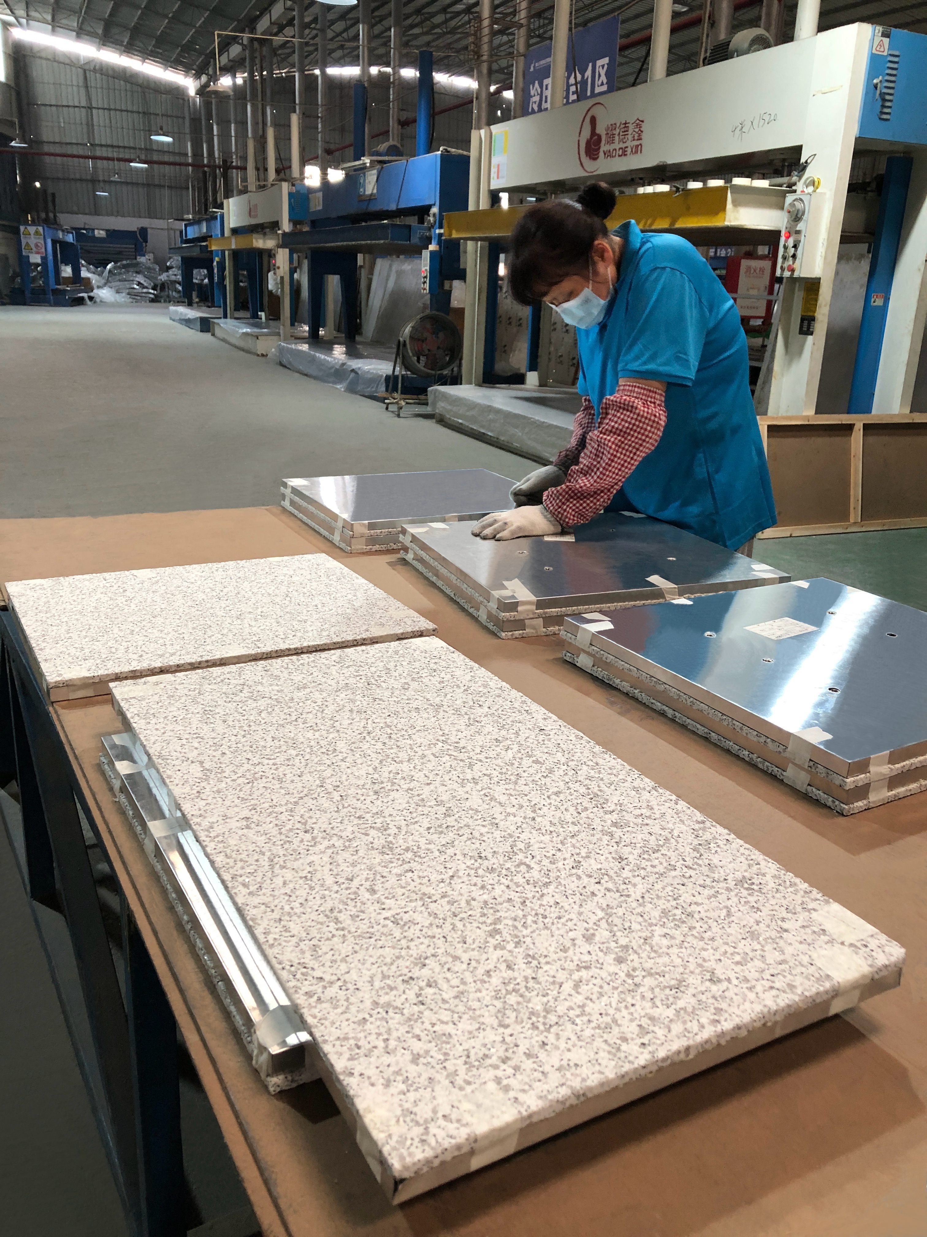 用铝蜂窝板与大理石做成的复合板,因其用等边六边型做成的中空铝蜂芯拥有隔音、防潮、隔热、防寒的性能。因而,这些特点就远远超越了通体板所不具备的性能特点。
