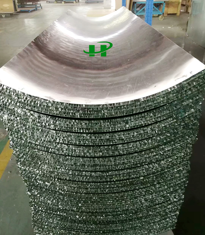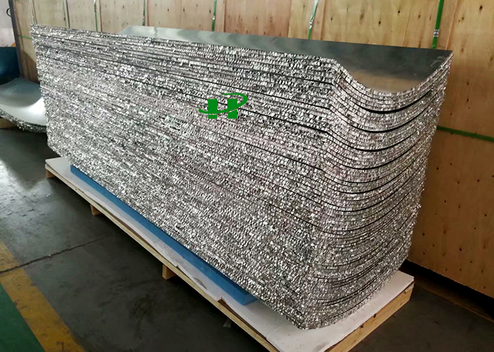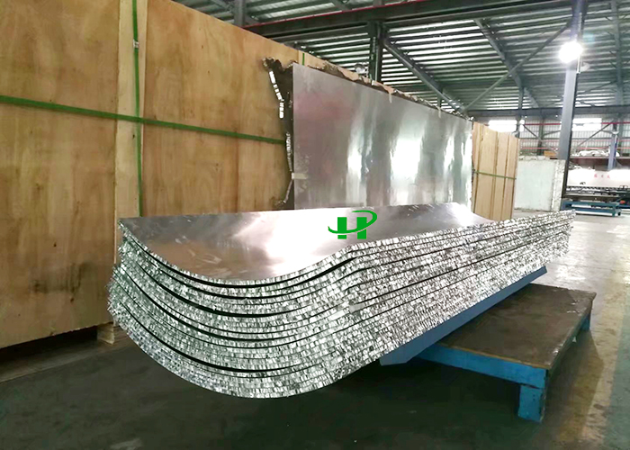 弧形蜂窝板不仅质量轻,而且强度高,能承受极高的压力而不变形。异形蜂窝板还有极好的吸热和消音功能,蜂窝芯独特的六角蜂窝结构,一方面可以把热量有效储存起来,达到吸热、隔热、保温作用,另一方面可以让外来的声波在蜂窝芯窝状结构里多次反射,不断削弱,直至消失,达到良好的吸音、隔音、消音功能。