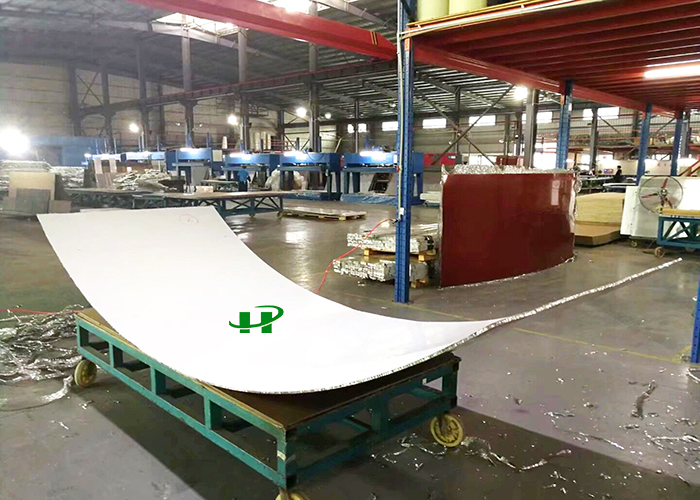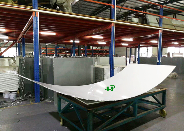弧形蜂窝板不仅质量轻,而且强度高,能承受极高的压力而不变形。异形蜂窝板还有极好的吸热和消音功能,蜂窝芯独特的六角蜂窝结构,一方面可以把热量有效储存起来,达到吸热、隔热、保温作用,另一方面可以让外来的声波在蜂窝芯窝状结构里多次反射,不断削弱,直至消失,达到良好的吸音、隔音、消音功能。
