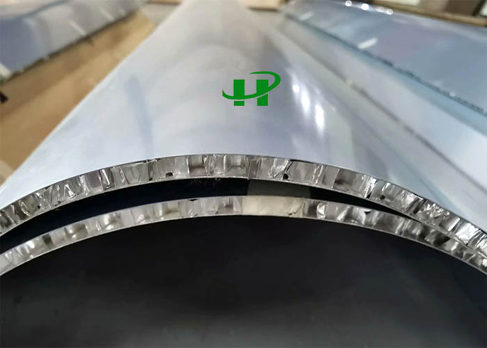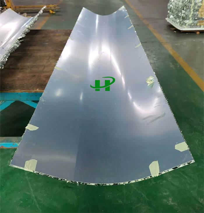 弧形蜂窝板不仅质量轻,而且强度高,能承受极高的压力而不变形。异形蜂窝板还有极好的吸热和消音功能,蜂窝芯独特的六角蜂窝结构,一方面可以把热量有效储存起来,达到吸热、隔热、保温作用,另一方面可以让外来的声波在蜂窝芯窝状结构里多次反射,不断削弱,直至消失,达到良好的吸音、隔音、消音功能。