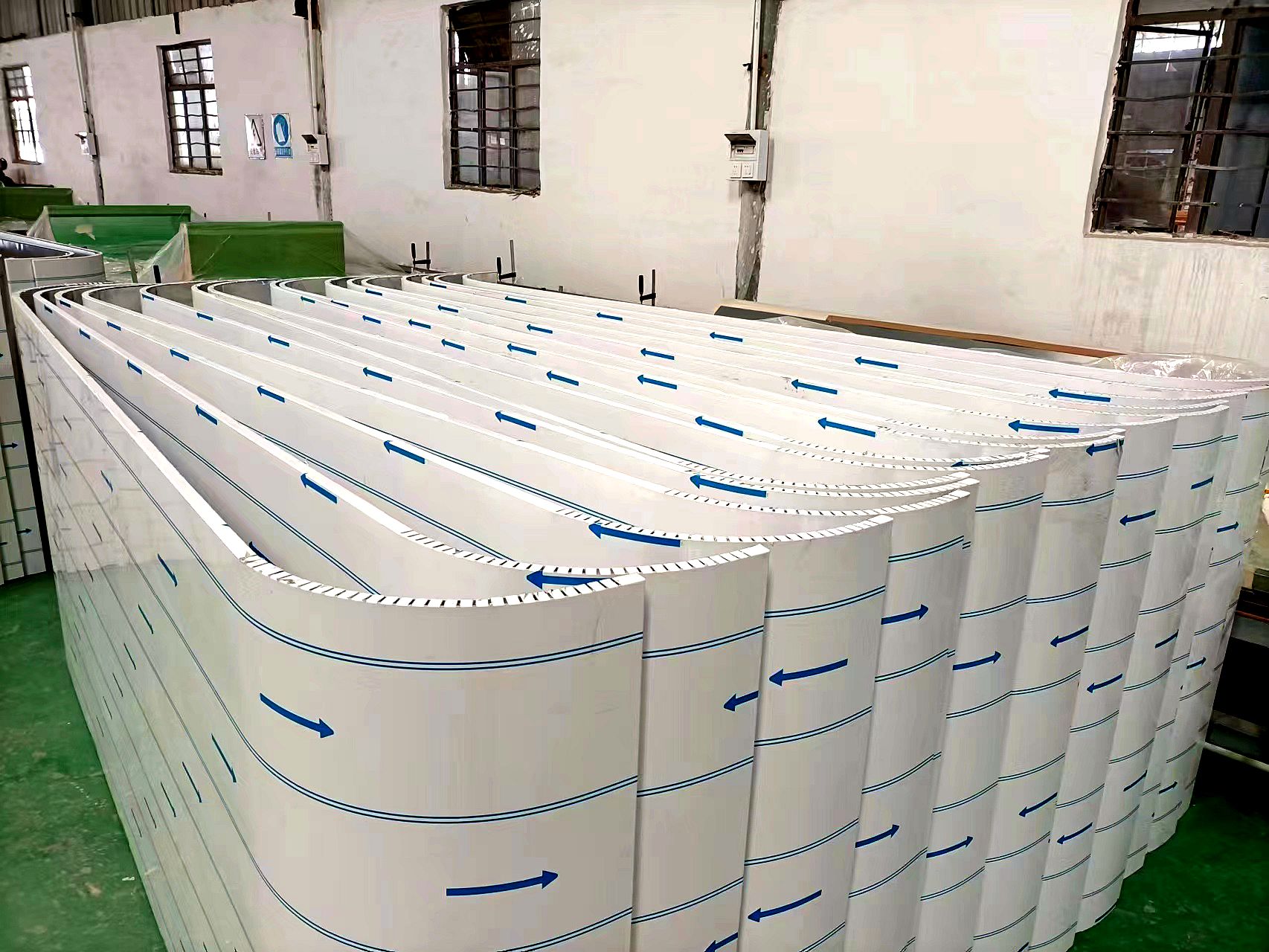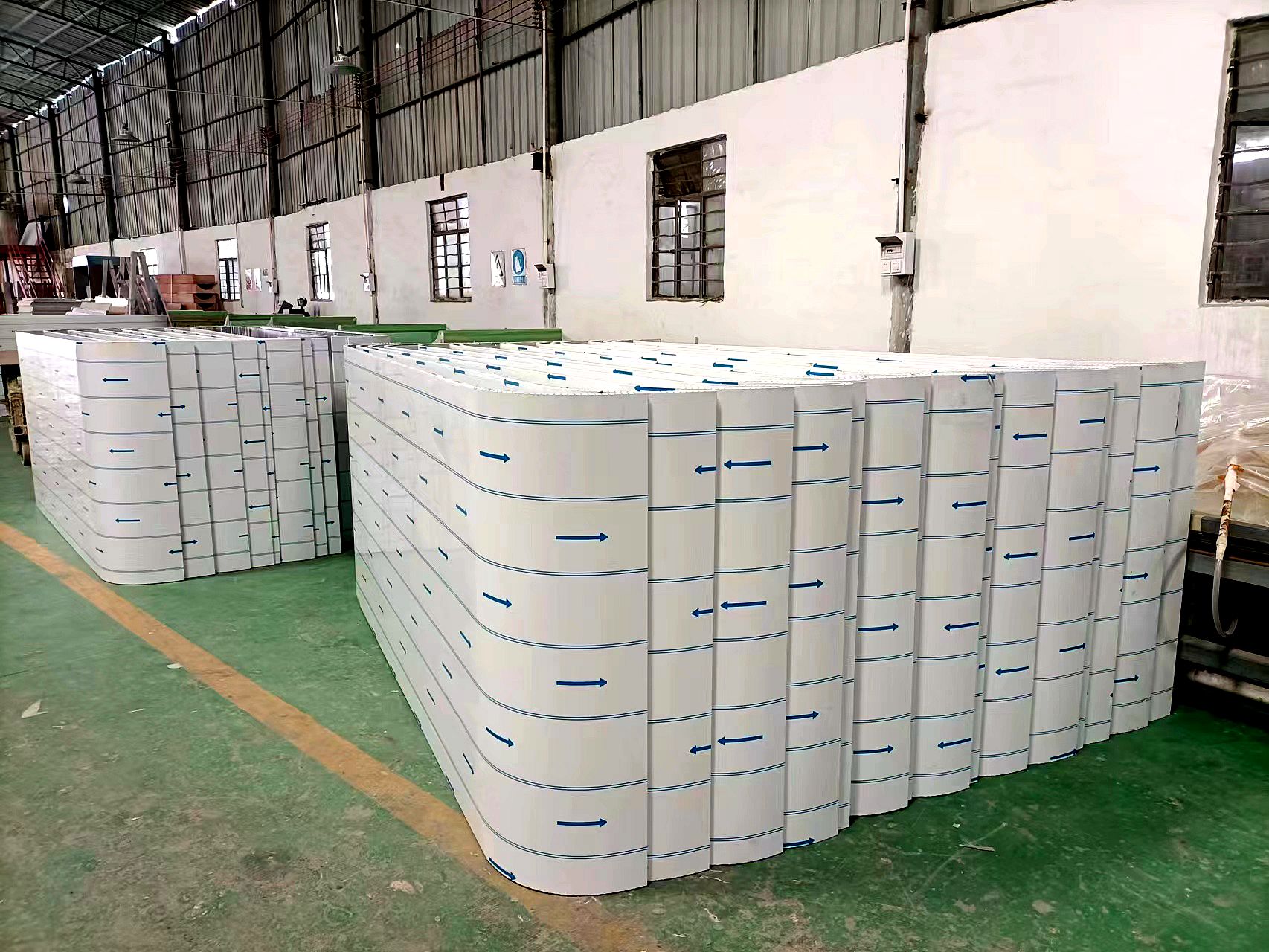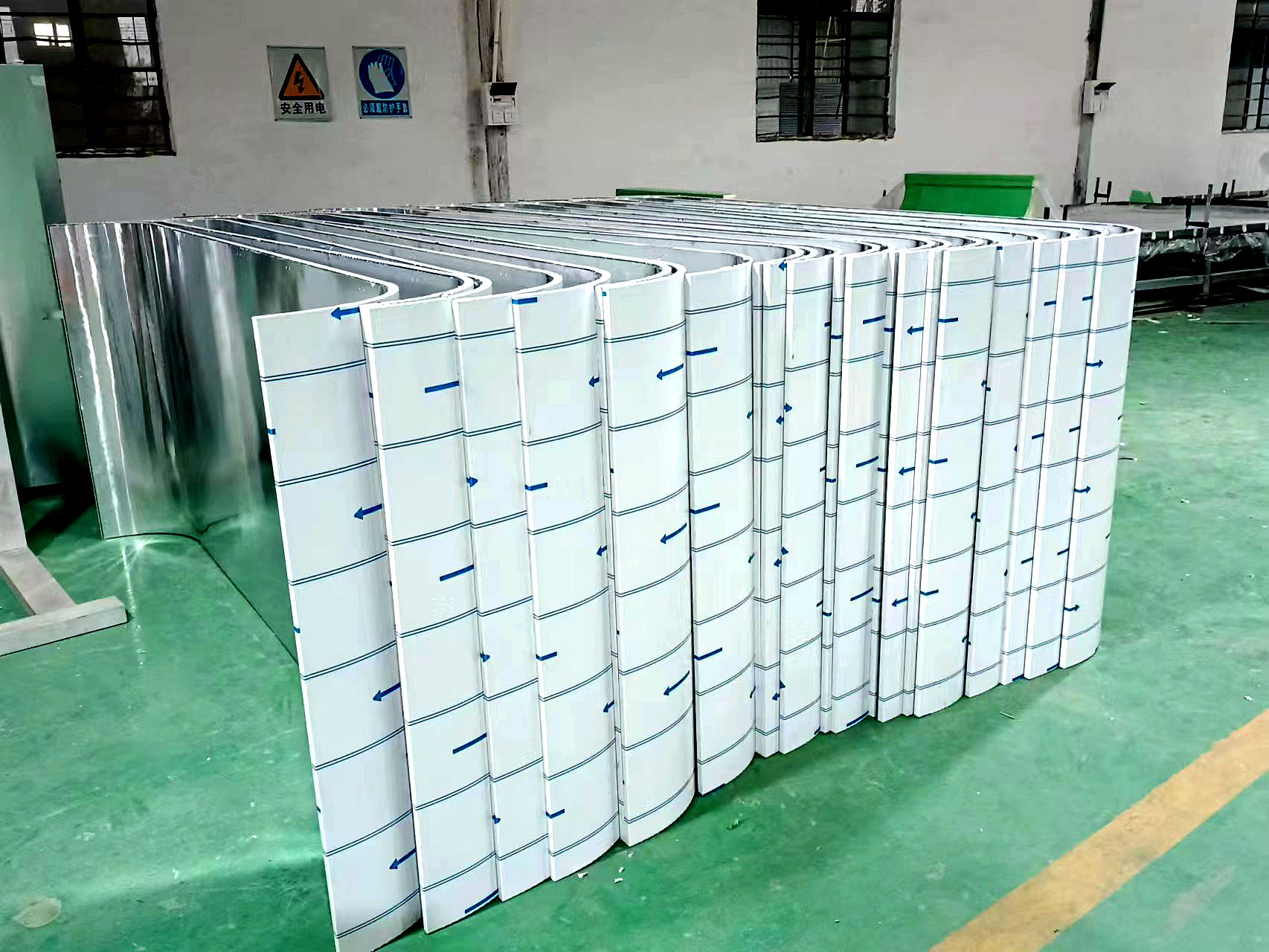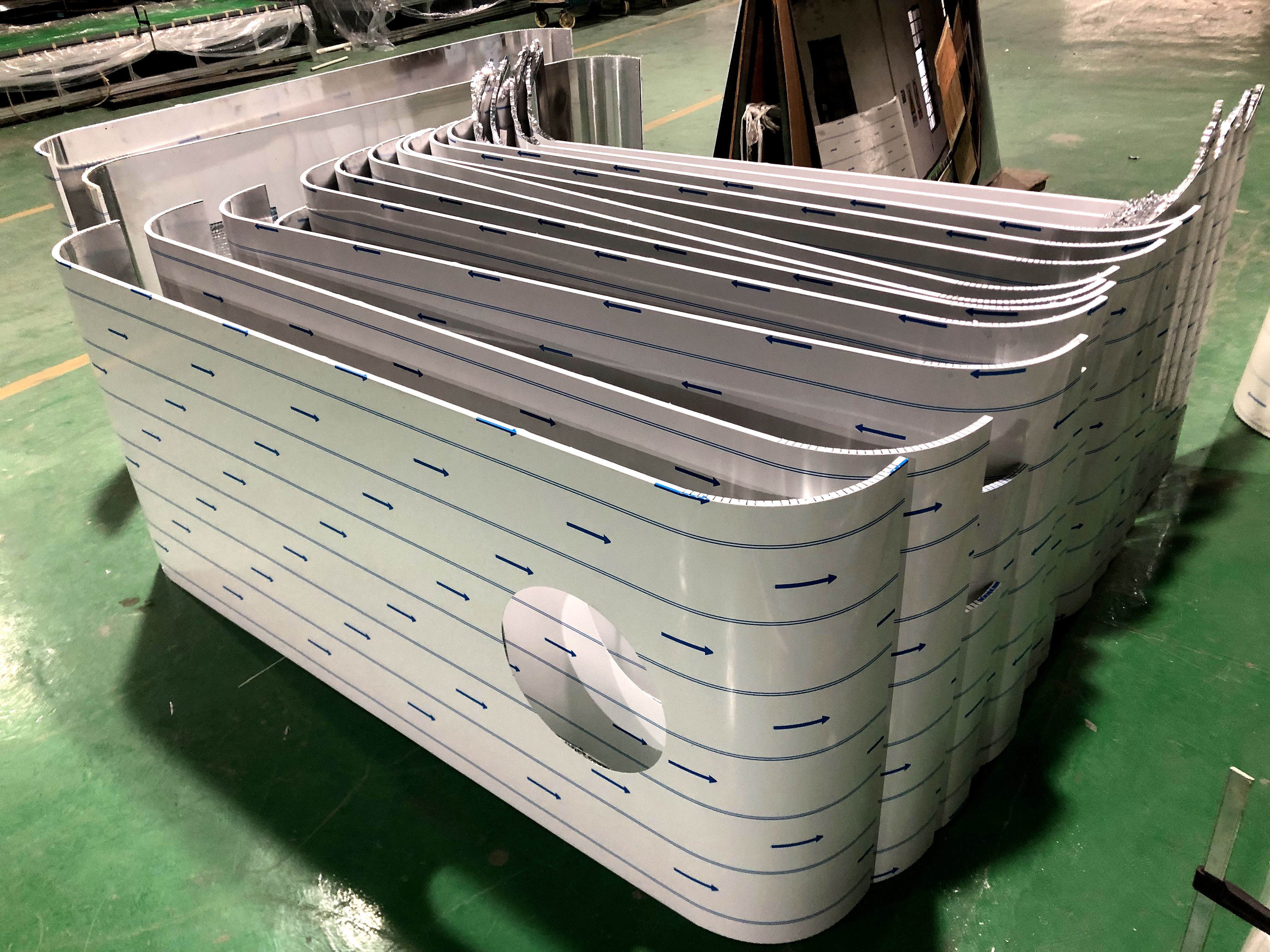 弧形蜂窝板不仅质量轻,而且强度高,能承受极高的压力而不变形。异形蜂窝板还有极好的吸热和消音功能,蜂窝芯独特的六角蜂窝结构,一方面可以把热量有效储存起来,达到吸热、隔热、保温作用,另一方面可以让外来的声波在蜂窝芯窝状结构里多次反射,不断削弱,直至消失,达到良好的吸音、隔音、消音功能。