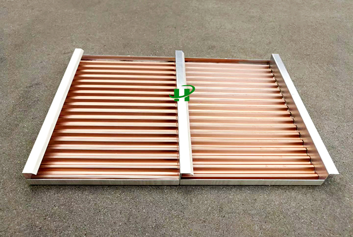 二、节能环保:铝质瓦楞板的芯板是水波纹型,在面板和背板之间组成了空气通道,是中空板系统,是隔热保温的最佳产品。在太阳辐射的作用下,通道中的空气升温向上流动带走热量,具有隔热性能。在寒冷地区,将瓦楞通道上下端密封,白天在阳光照射下,储存热能减少室内采暖热量的流失,具有保温性能。工程中余料可100%回收,环保无污染。