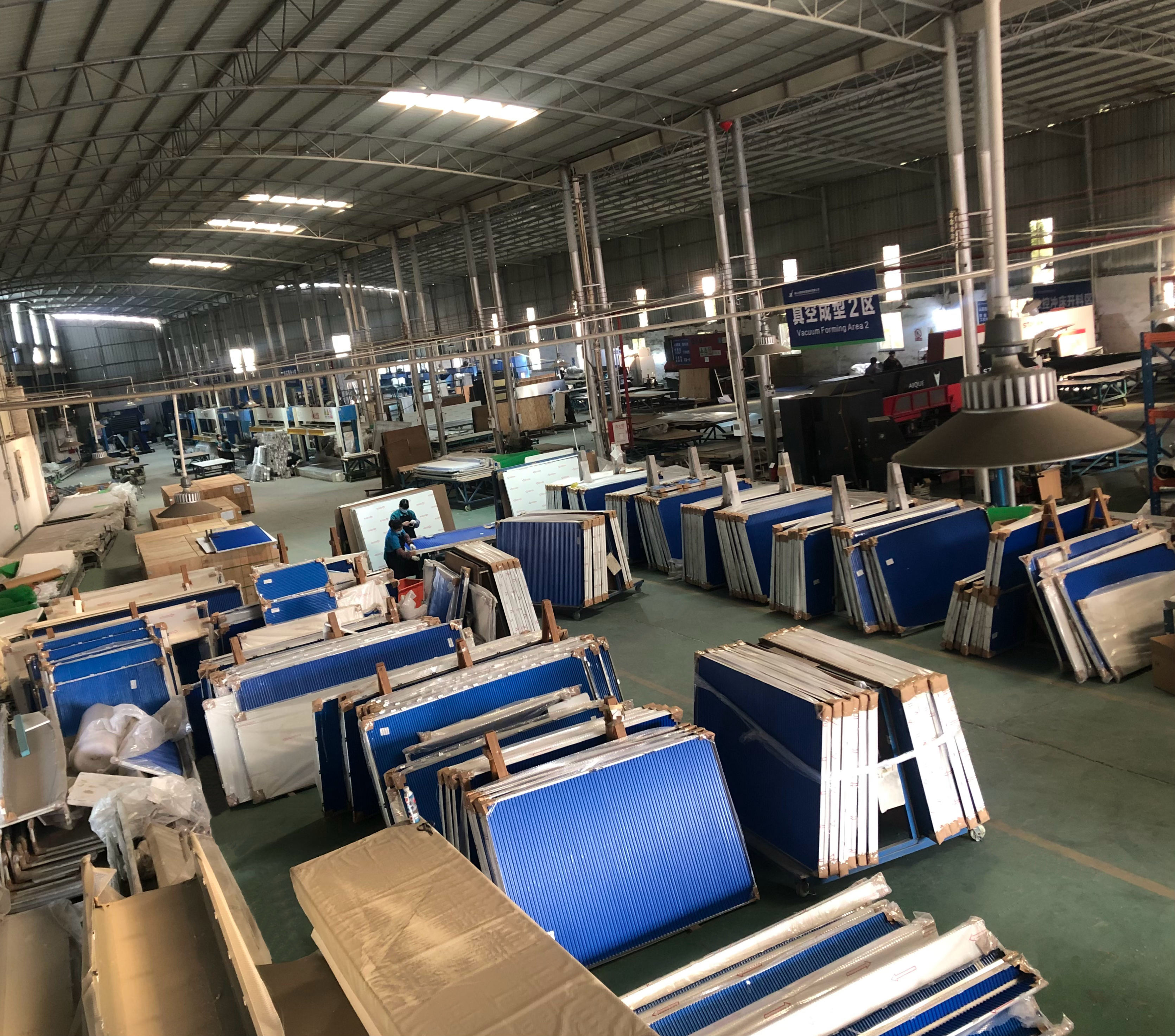 宏赞瓦楞芯材:采用产品0.2mm-0.5mm的铝板经过瓦楞机辊压成瓦楞状或梯形状具有较高的挺度、抗压强度、质量轻等特点。