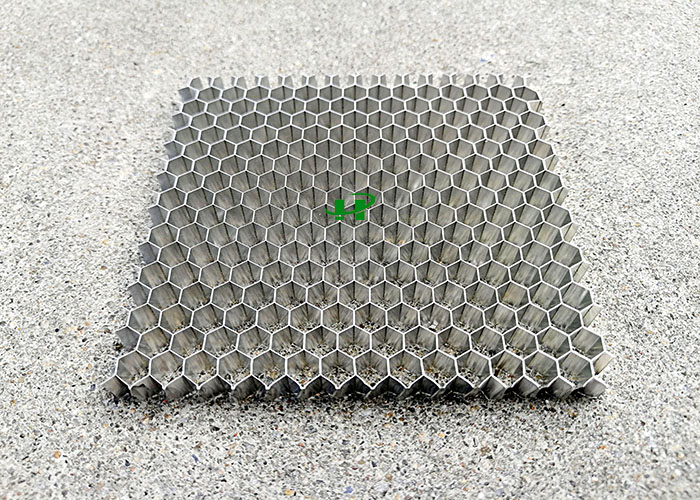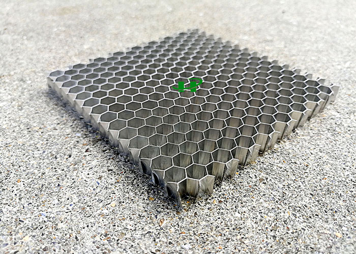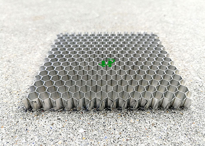 铝蜂窝板芯为六边形铝蜂窝结构,相互牵制的密集蜂窝犹如许多小工字梁,可分散承担来自面板方向的压力,使板受力均匀,保证了面板在较大面积时仍能保持很高的平整度。另外,空心蜂窝还能大大减弱板体的热膨胀性。