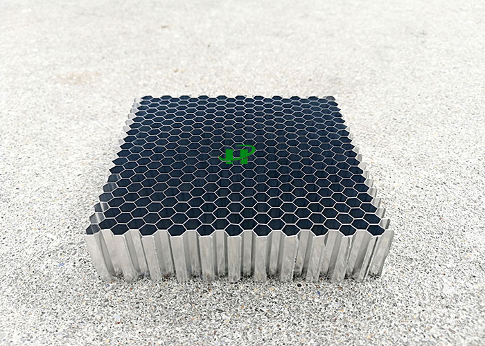 铝蜂窝板芯为六边形铝蜂窝结构,相互牵制的密集蜂窝犹如许多小工字梁,可分散承担来自面板方向的压力,使板受力均匀,保证了面板在较大面积时仍能保持很高的平整度。另外,空心蜂窝还能大大减弱板体的热膨胀性。