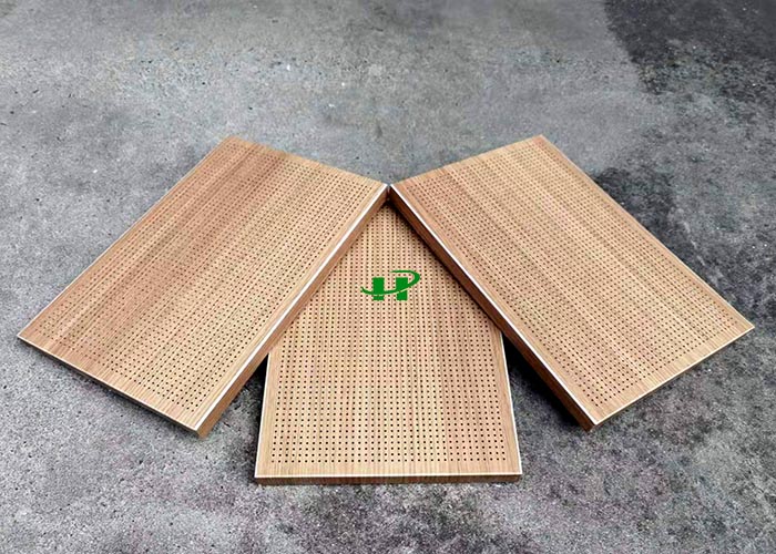 冲孔木纹蜂窝板是在木纹蜂窝板的表面按照一定规律冲出的小孔,不仅木纹图案高档华丽、色泽纹理逼真,而且内部暗藏的吸音纸吸音效果非常好,适用于会议室、礼堂等多种场合,体现出一种高档奢华的建筑风格,缓解都市人紧张工作的压力,使人有置身大自然的感觉。蜂窝铝皮上有小孔,使板内气体可以自由流动;可滑动安装扣系统在热胀冷缩时不会引起结构变形,因此可以保证极高的平整度.