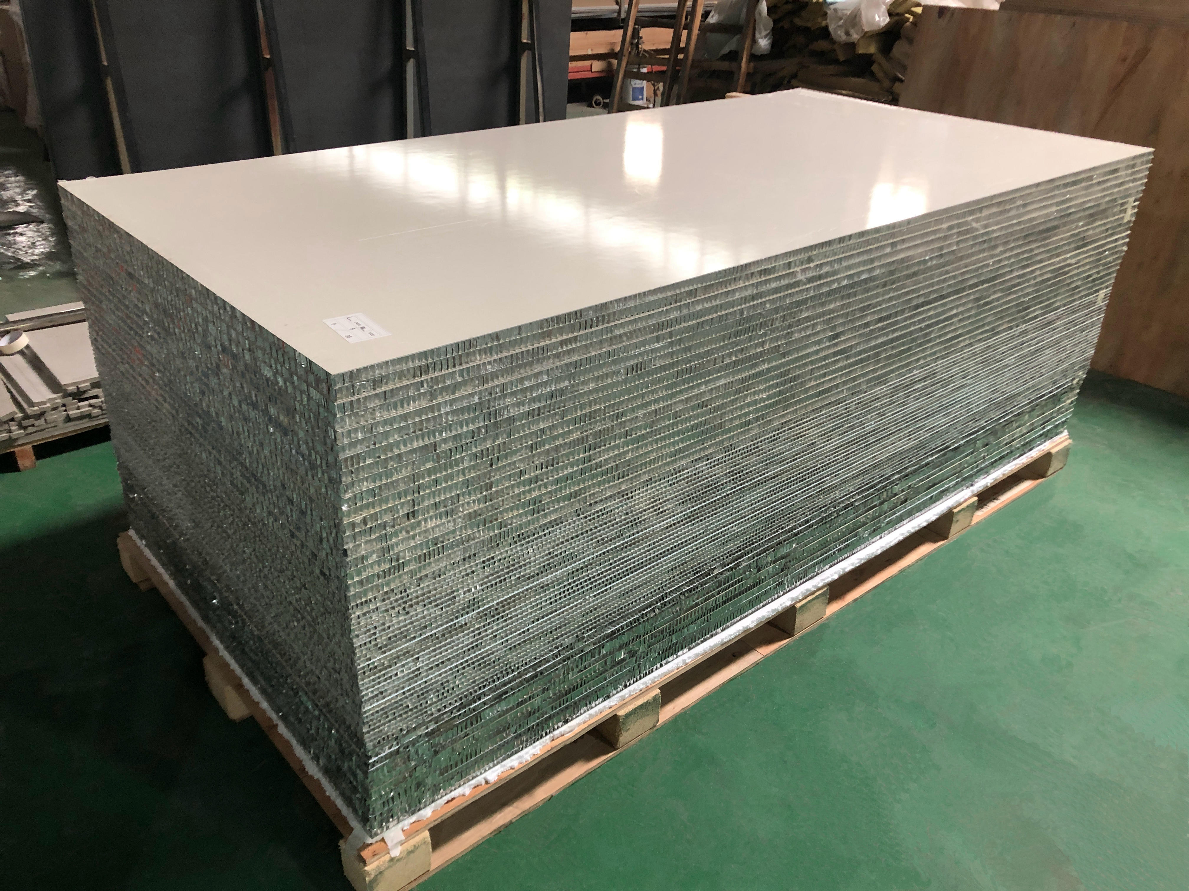 防火蜂窝板是一种高档、防火、环保的夹层结构复合材料,以金属铝为面板,下衬防火板,铝蜂窝芯为芯材。防火板是表面装饰用耐火建材,有丰富的表面色彩、纹路以及耐高温、耐水和质硬等特殊物流性,表面有超高平坦性,耐腐蚀因此防火板和铝蜂窝复合而成的板材。广泛应用于室内装饰、门板、家具、橱柜、实验室台面、外墙等领域。