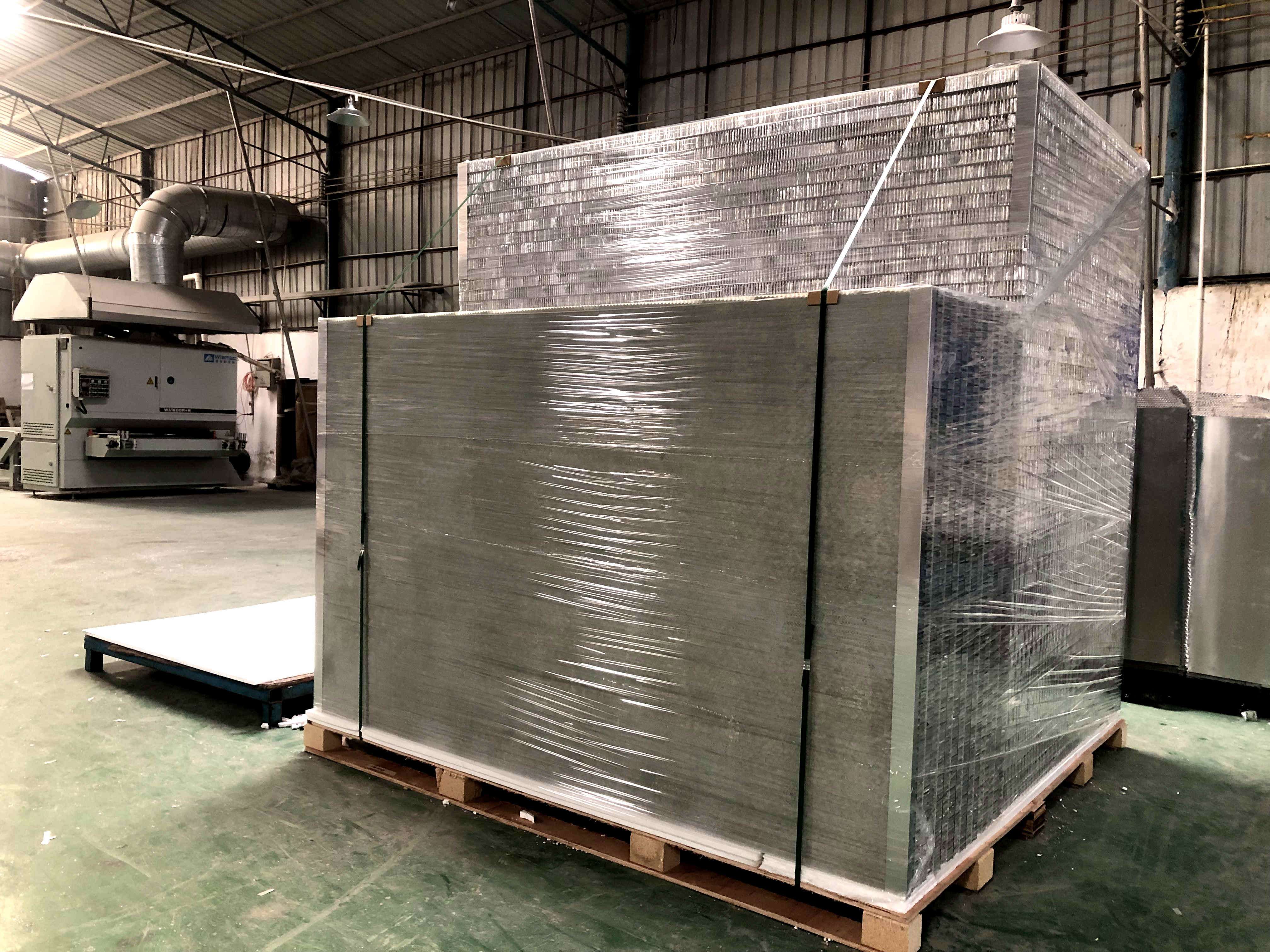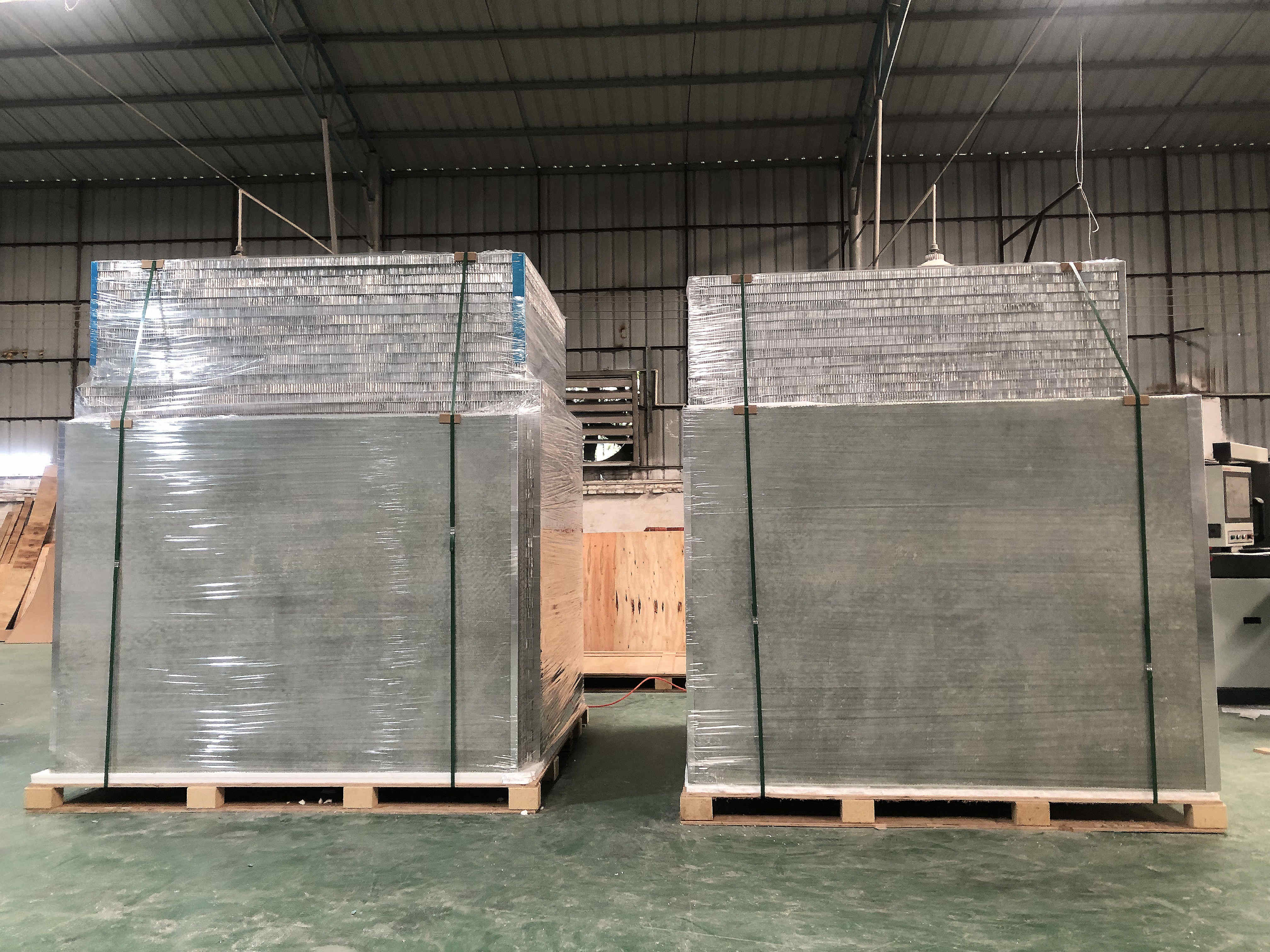 玻璃钢蜂窝板结合航空工业复合蜂窝板技术而开发的复合板产品系列,该产品采用复合蜂窝板结构,预制玻璃钢面板,高强玻璃纤维方格布与铝质蜂窝芯材经热压复合成型。由于方格布强度高,因此复合板抗冲击力和抗挠强度非常高。