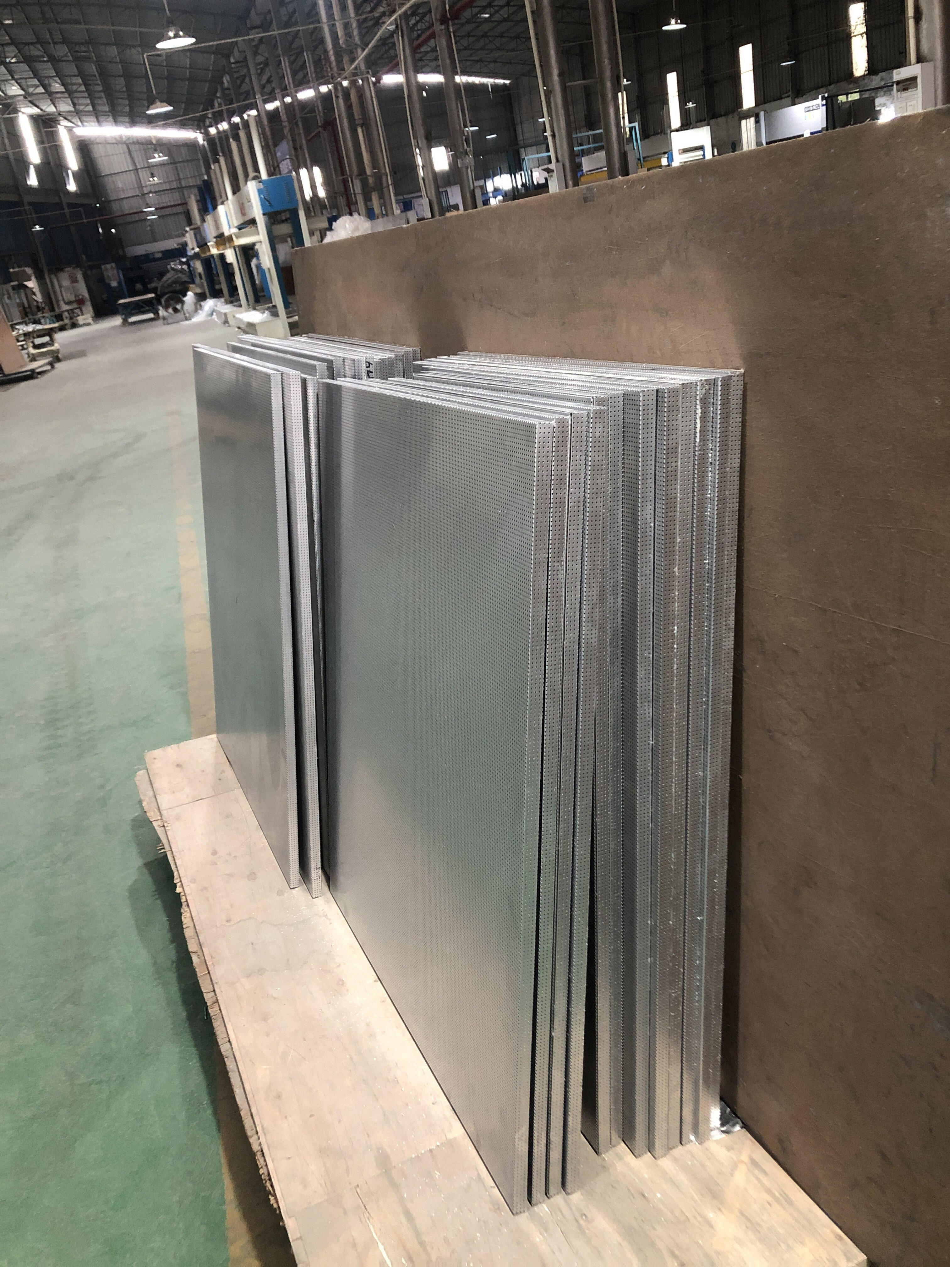 冲孔铝蜂窝板表面采用经氟碳辊涂处理的铝合金板材,中间是符合美国航空标准的铝蜂窝,本公司从法国引进生产三明冶夹习板的专用复合劳工艺冷压和热压技术,专业生产此类产品,使得该产品更具显著的优异特性,广泛应用于建筑幕墙及室内外装饰,更由于本公司有专业且全面的生产工艺的保障,因此,完全可以根据客户的要求和实际情况采用不同的复合工艺生产产品。