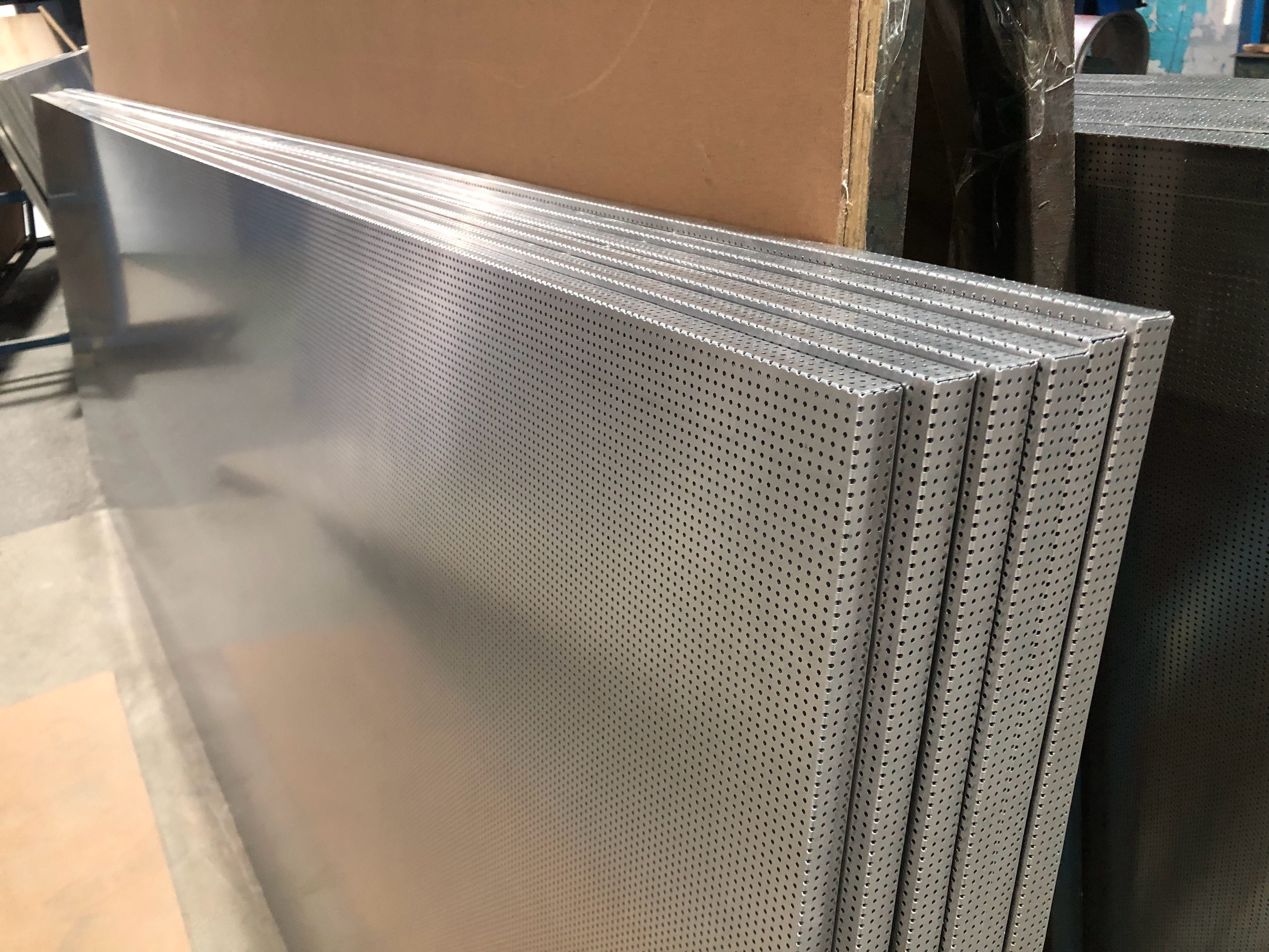 冲孔铝蜂窝板是在铝蜂窝板的表面按照一定规律冲出的小孔,不仅美观大方,而且内部暗藏吸音纸吸音效果非常好,适用于会议室、礼堂等多种场合。 蜂窝铝皮上有小孔,使板内气体可以自由流动;可滑动安装扣系统在热胀冷缩时不会引起结构变形,因此可以保证极高的平整度.