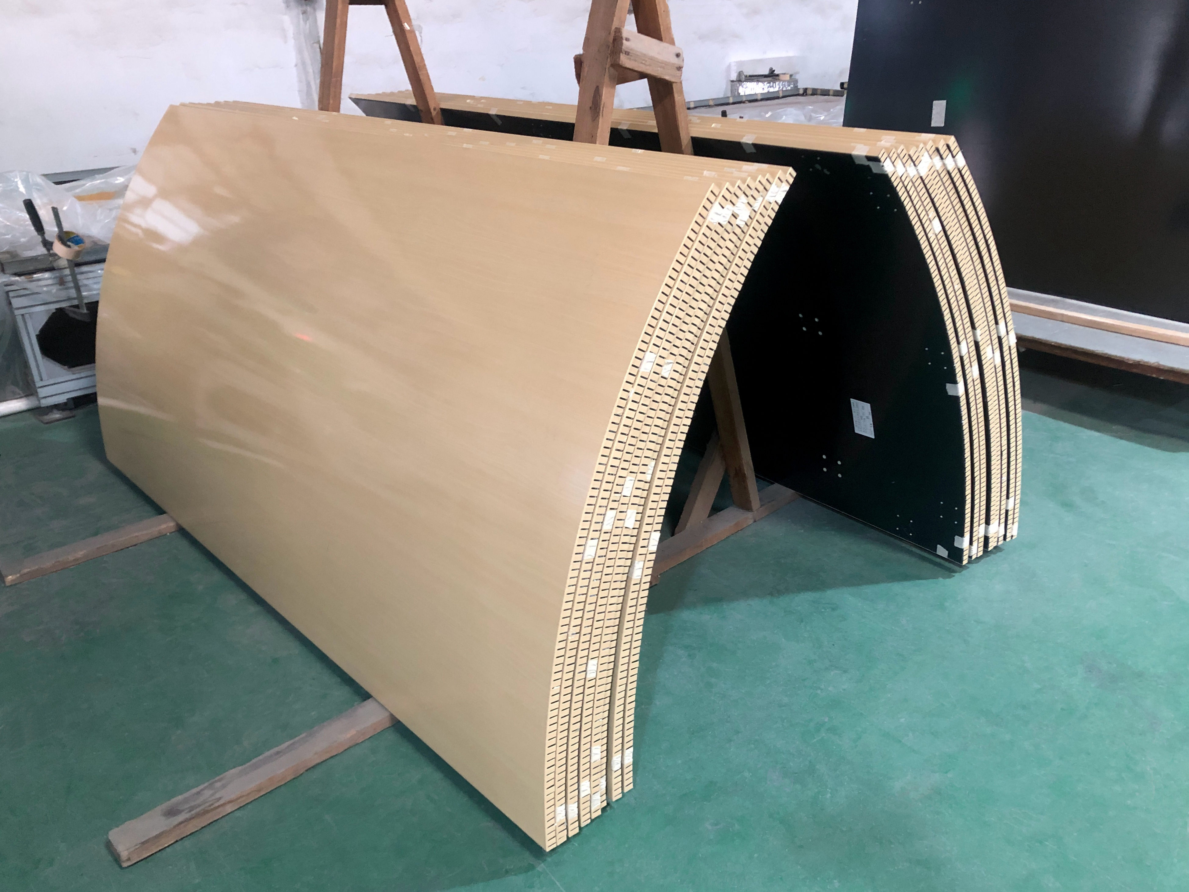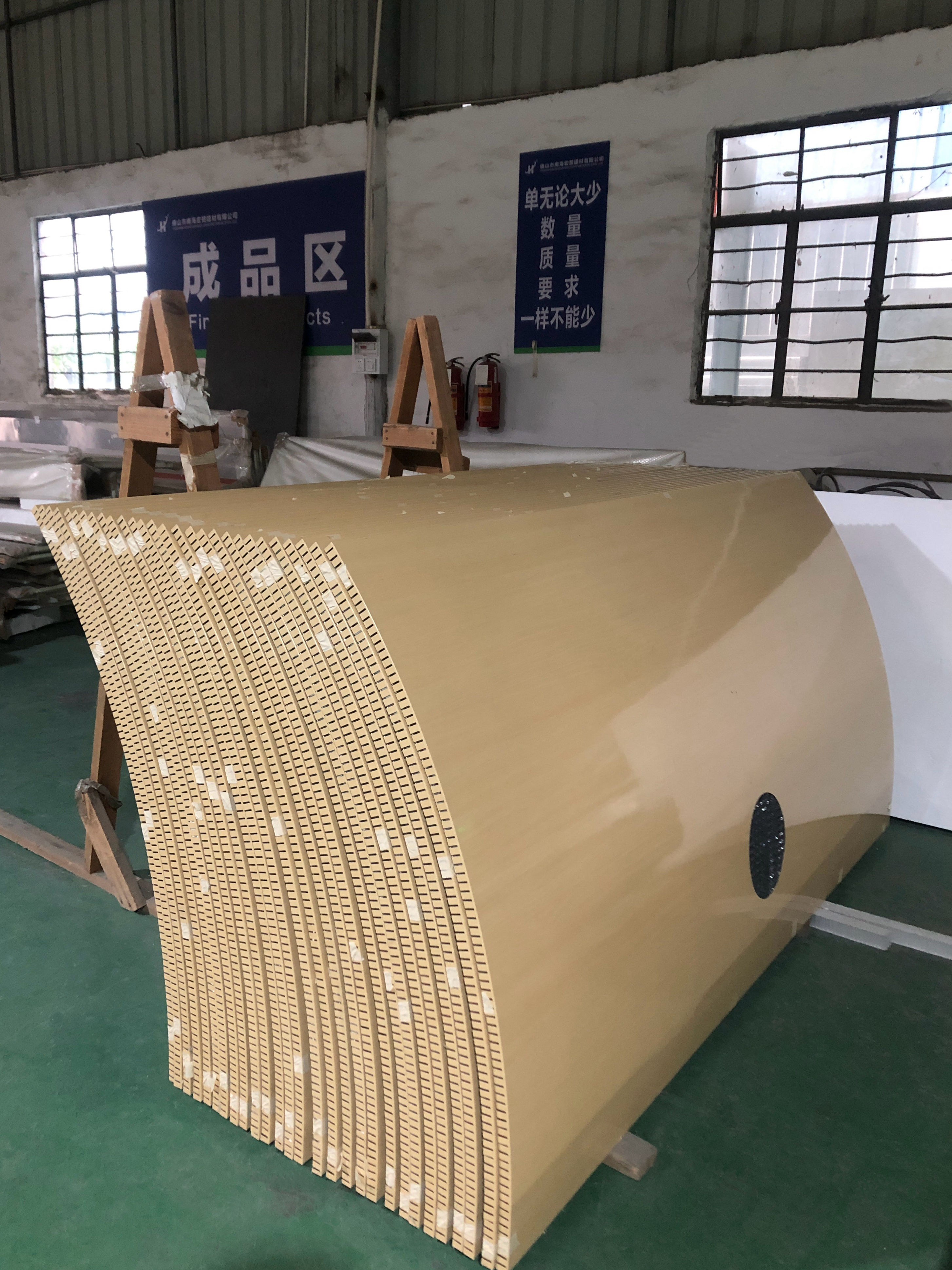 弧形木纹蜂窝板专业的模具设计,平整的板面,突出棱角与线条,清晰简洁,创造时尚个性化的视觉空间。