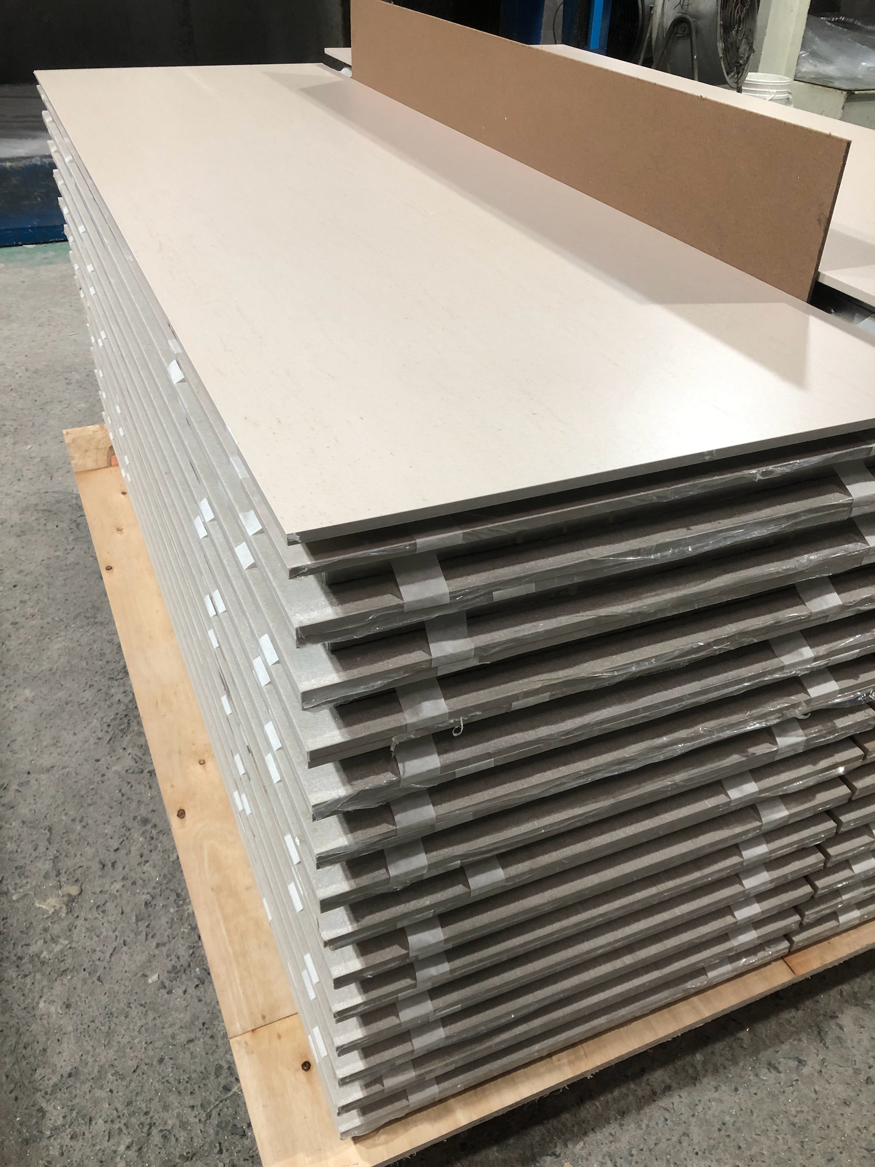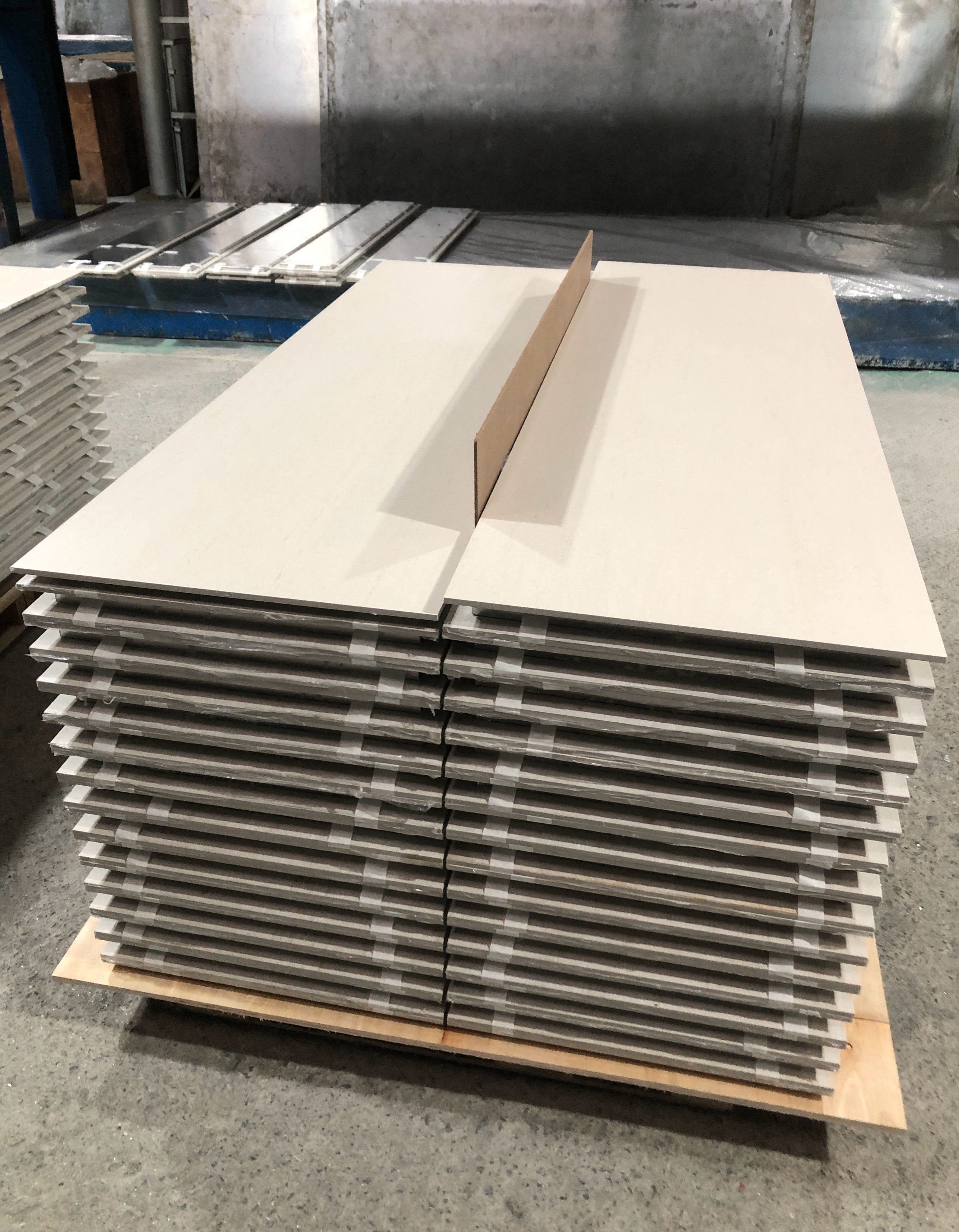 蜂窝陶瓷复合板是本公司利用法国航空复合技术将铝蜂窝与薄陶瓷复合生产的高科技含量产品。蜂窝陶瓷板由于饰面陶瓷板厚度的减薄,加上蜂窝板结构自身具有重量轻、强度高、刚度好等优点,使得蜂窝陶瓷板既具有陶瓷的表面效果,又具有一般陶瓷板不可能具有的性能。