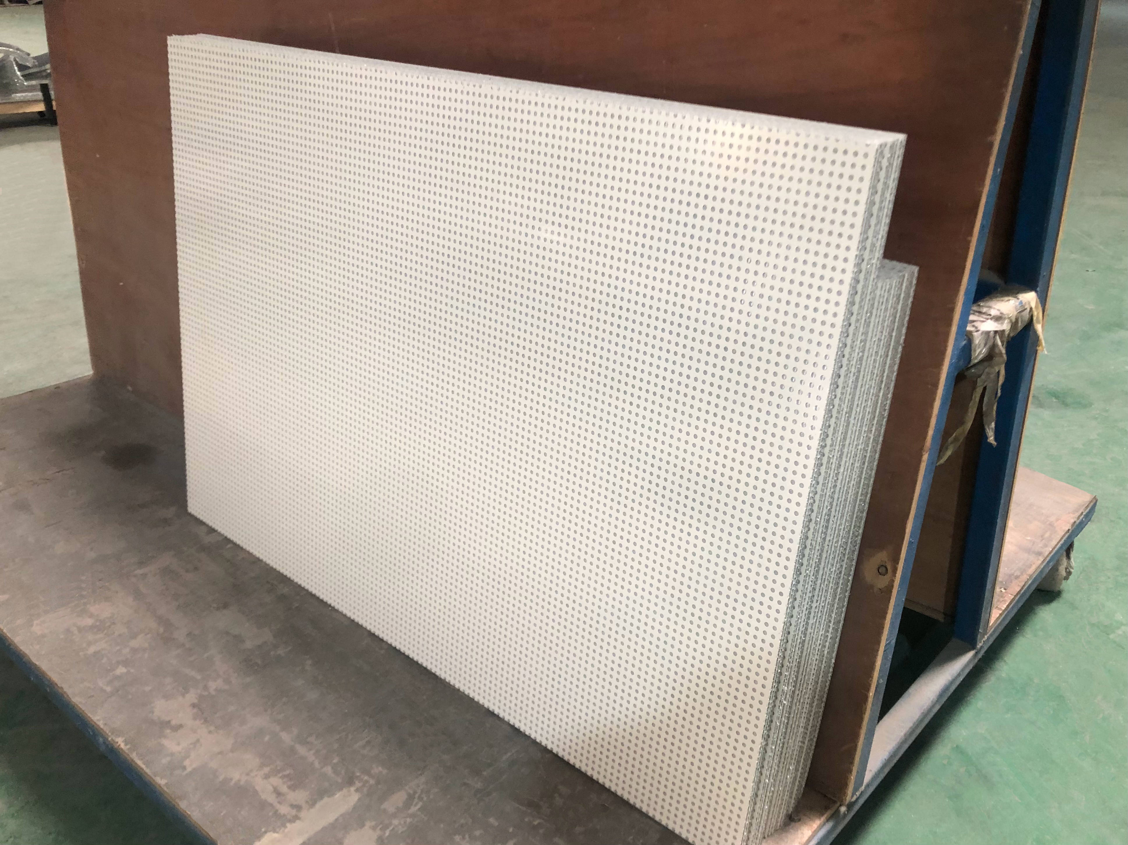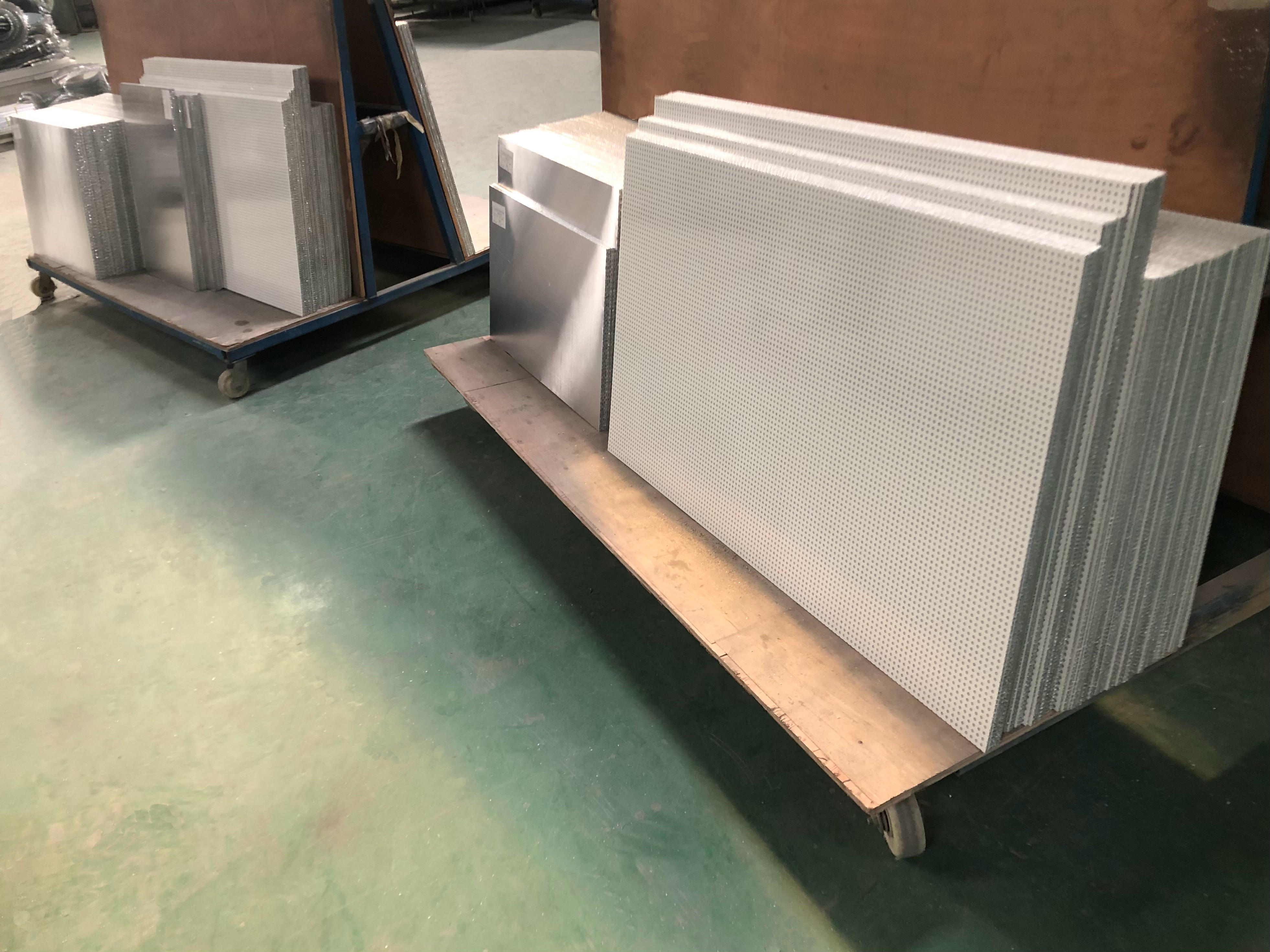 冲孔铝蜂窝板是在铝蜂窝板的表面按照一定规律冲出的小孔,不仅美观大方,而且内部暗藏吸音纸吸音效果非常好,适用于会议室、礼堂等多种场合。 蜂窝铝皮上有小孔,使板内气体可以自由流动;可滑动安装扣系统在热胀冷缩时不会引起结构变形,因此可以保证极高的平整度.