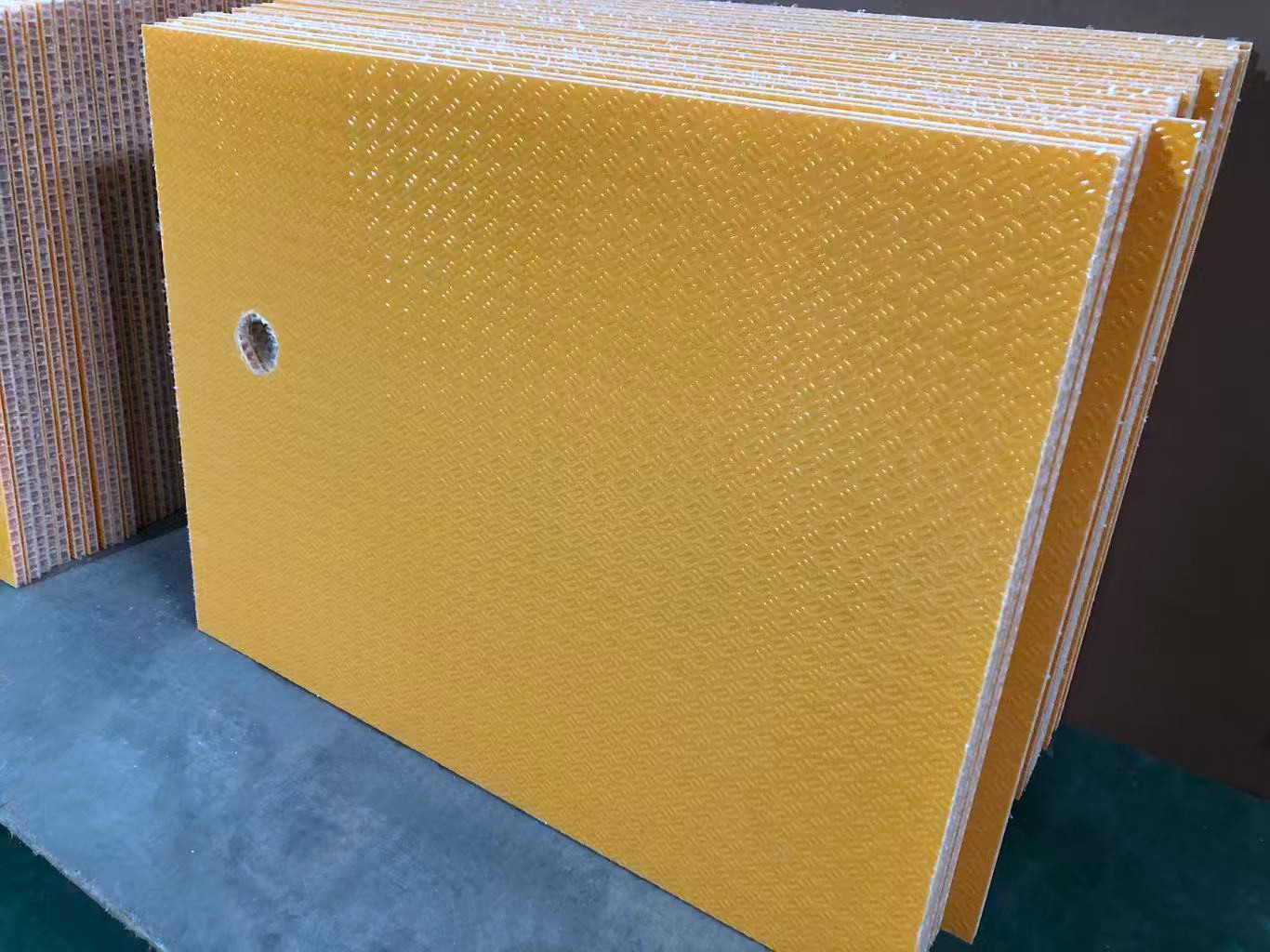 玻璃钢蜂窝板结合航空工业复合蜂窝板技术而开发的复合板产品系列,该产品采用复合蜂窝板结构,预制玻璃钢面板,高强玻璃纤维方格布与铝质蜂窝芯材经热压复合成型。由于方格布强度高,因此复合板抗冲击力和抗挠强度非常高。